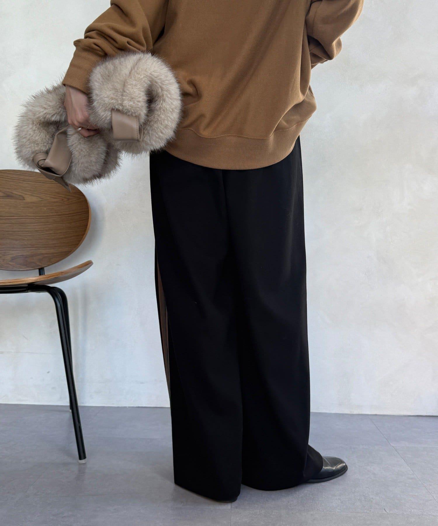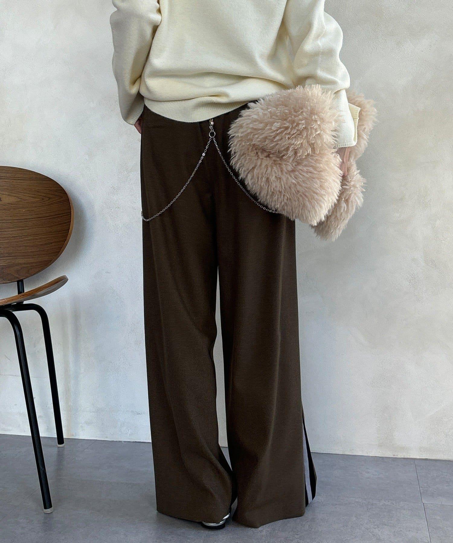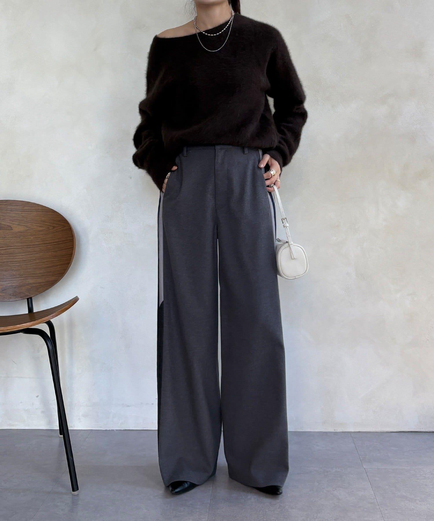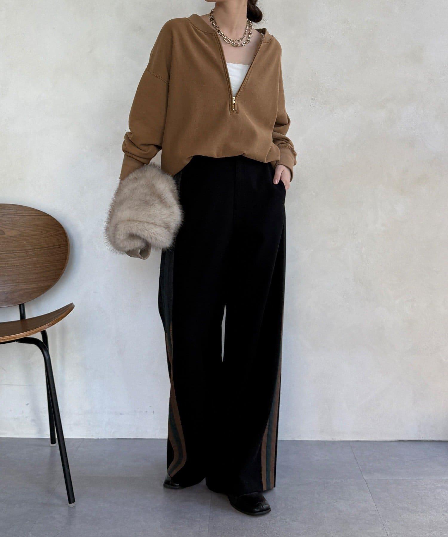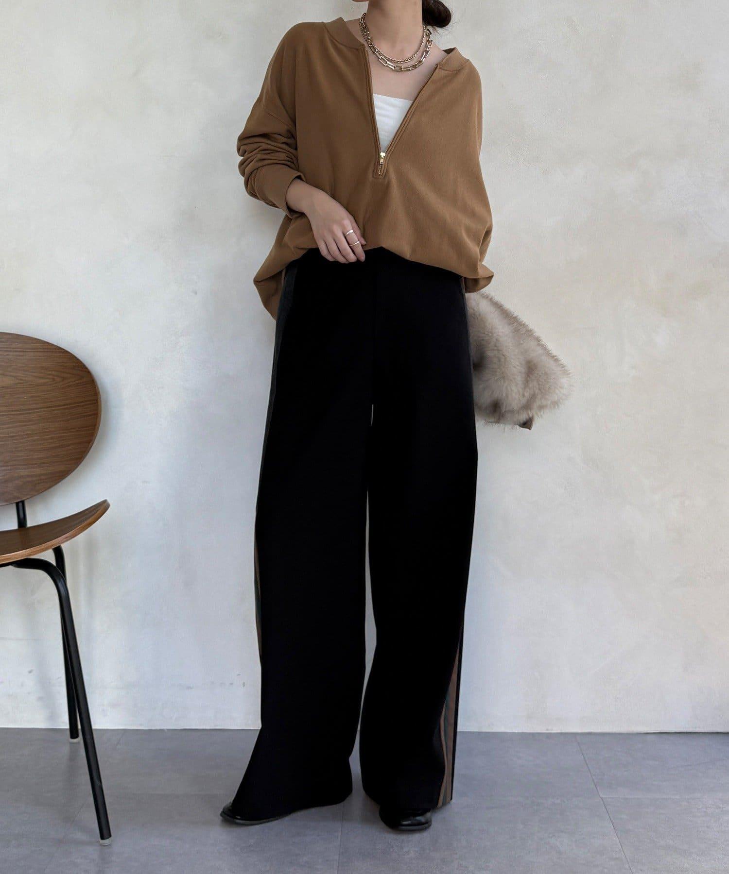 側邊條紋寬腿褲