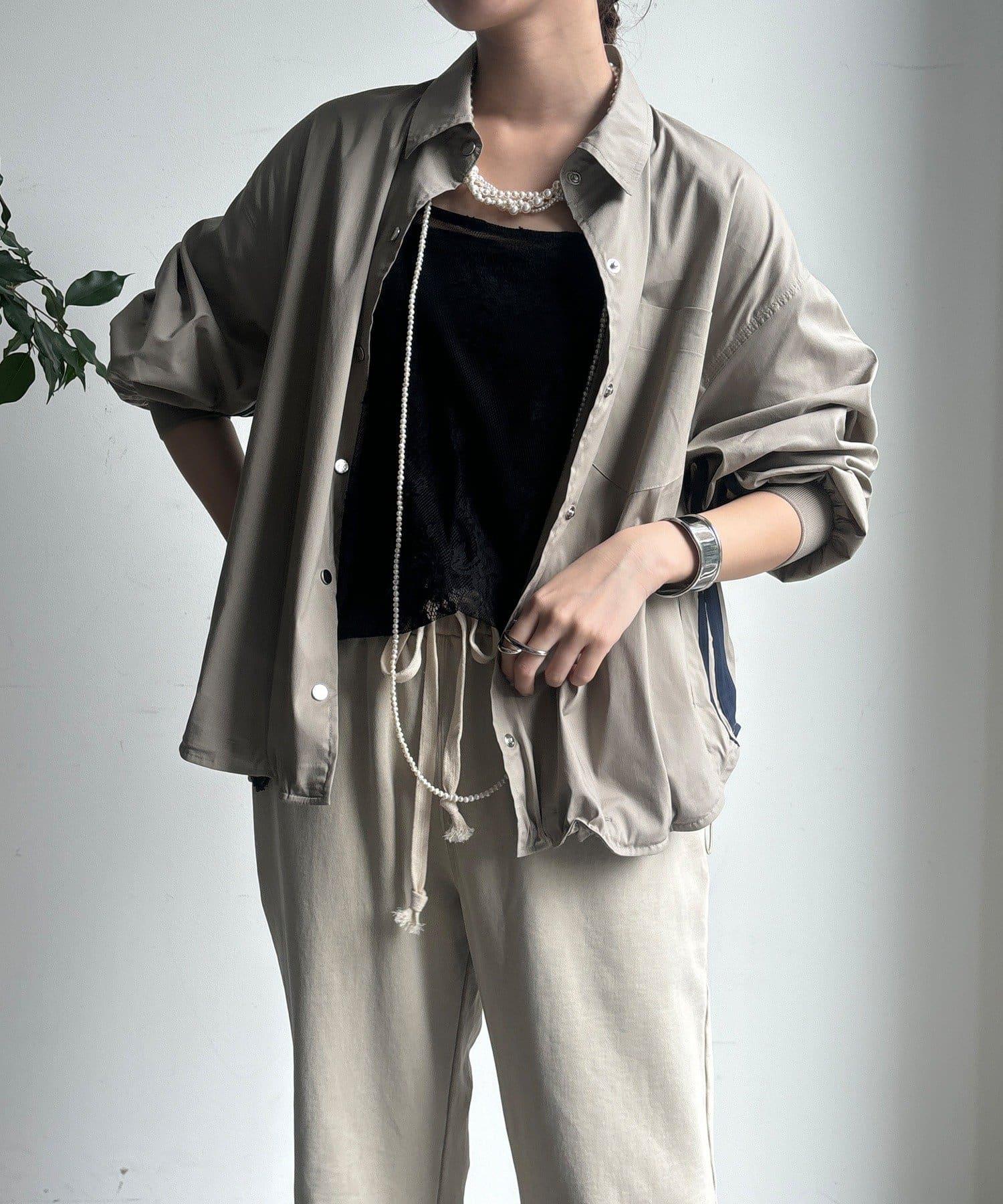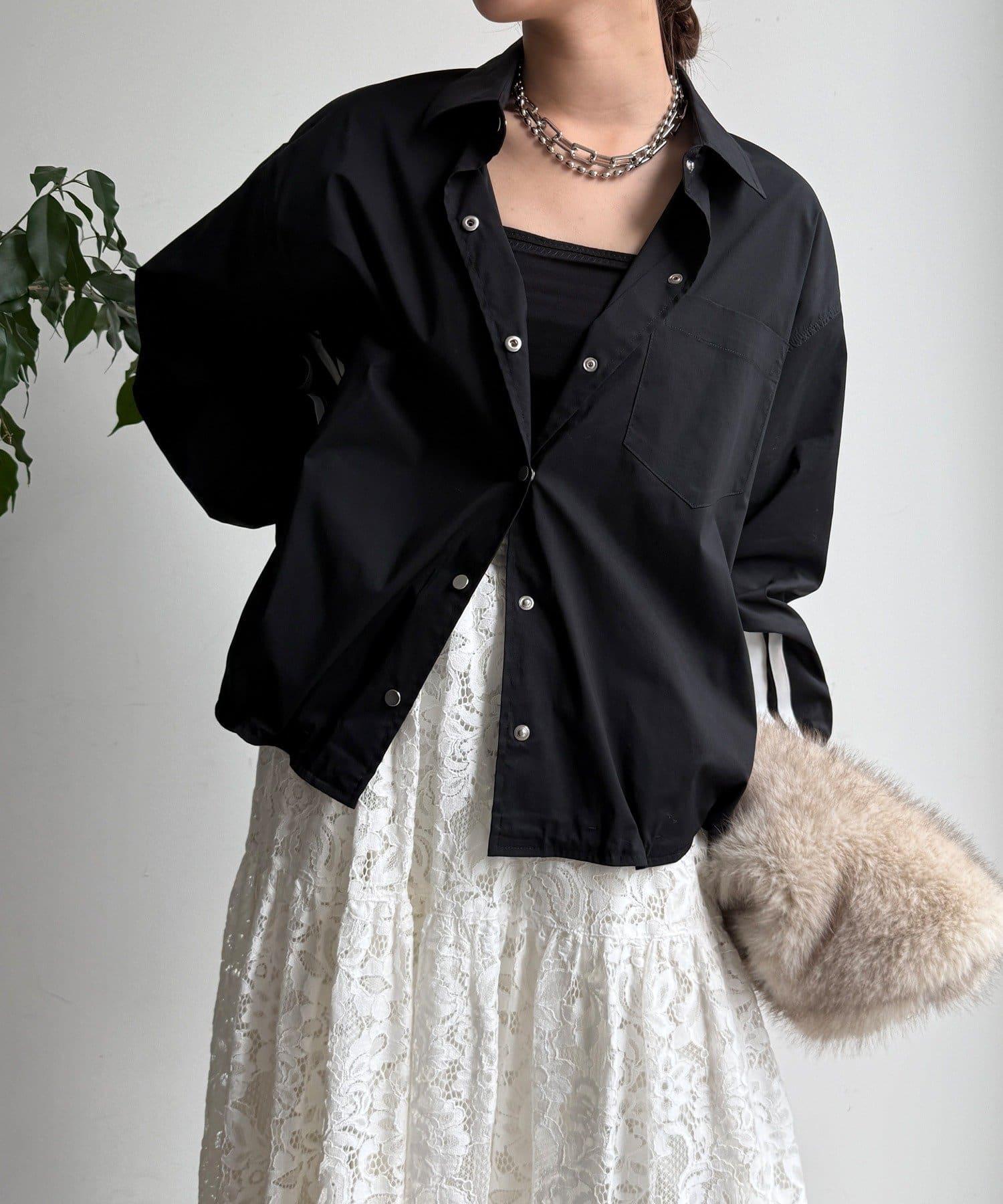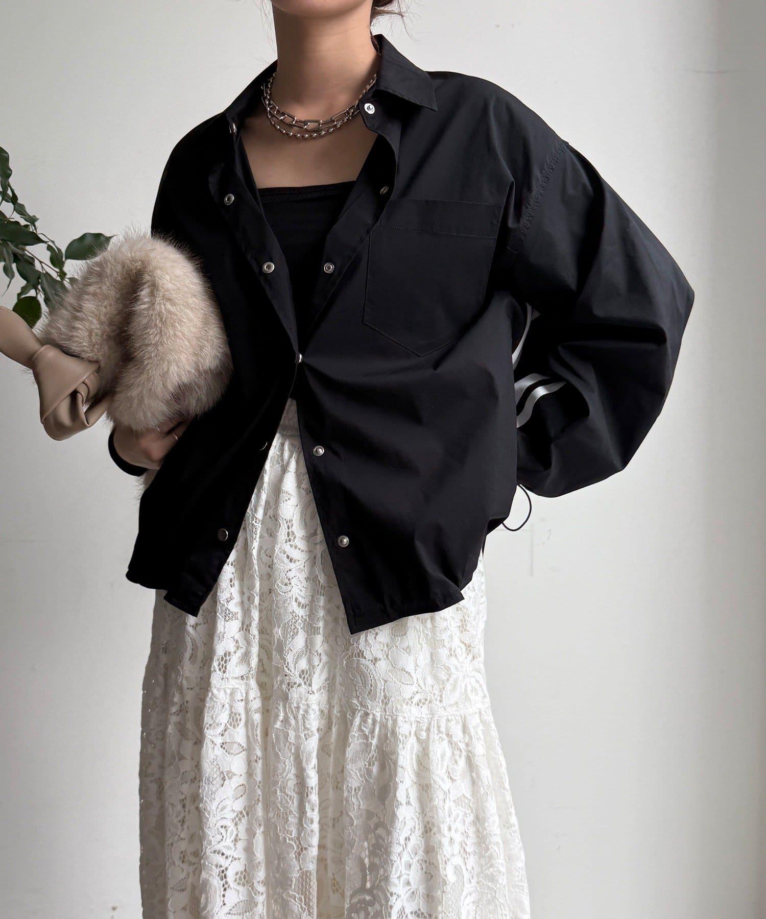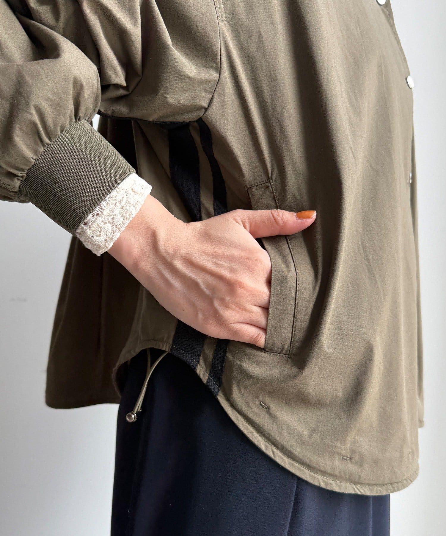 從兩側到袖子的線條是重點!下襬有抽繩,可以根據自己的喜好調整輪廓。