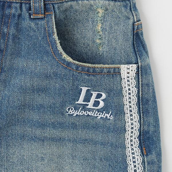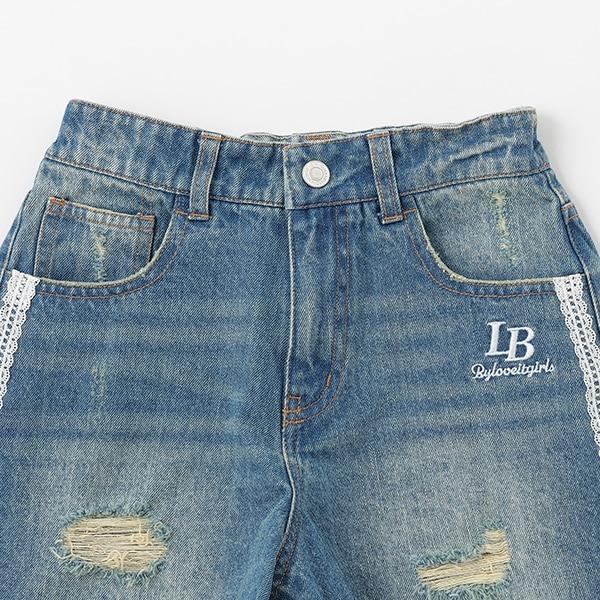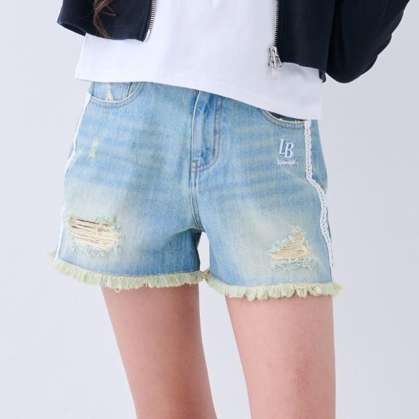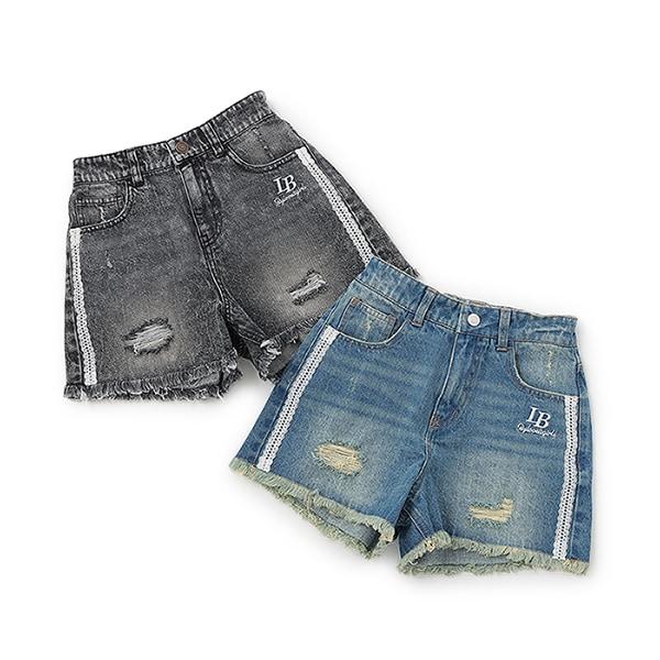 側邊蕾絲破洞短褲