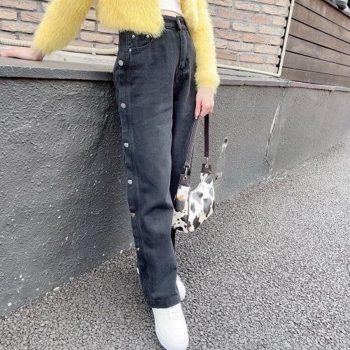 側邊鈕釦牛仔褲 黑色[特價](CB4475)