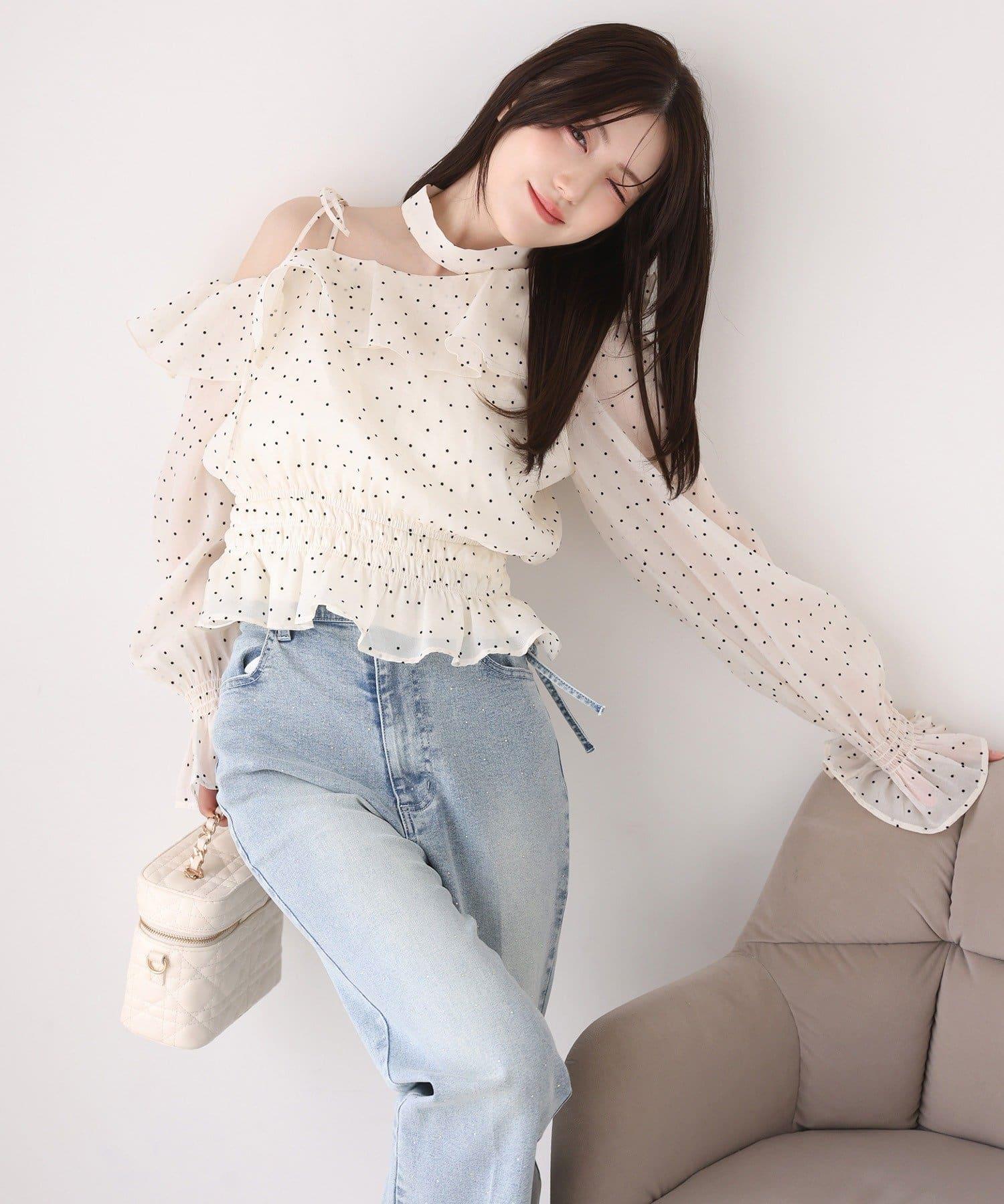 腰側開叉設計增加了寬鬆感,絲帶細節則增添了少女氣息。