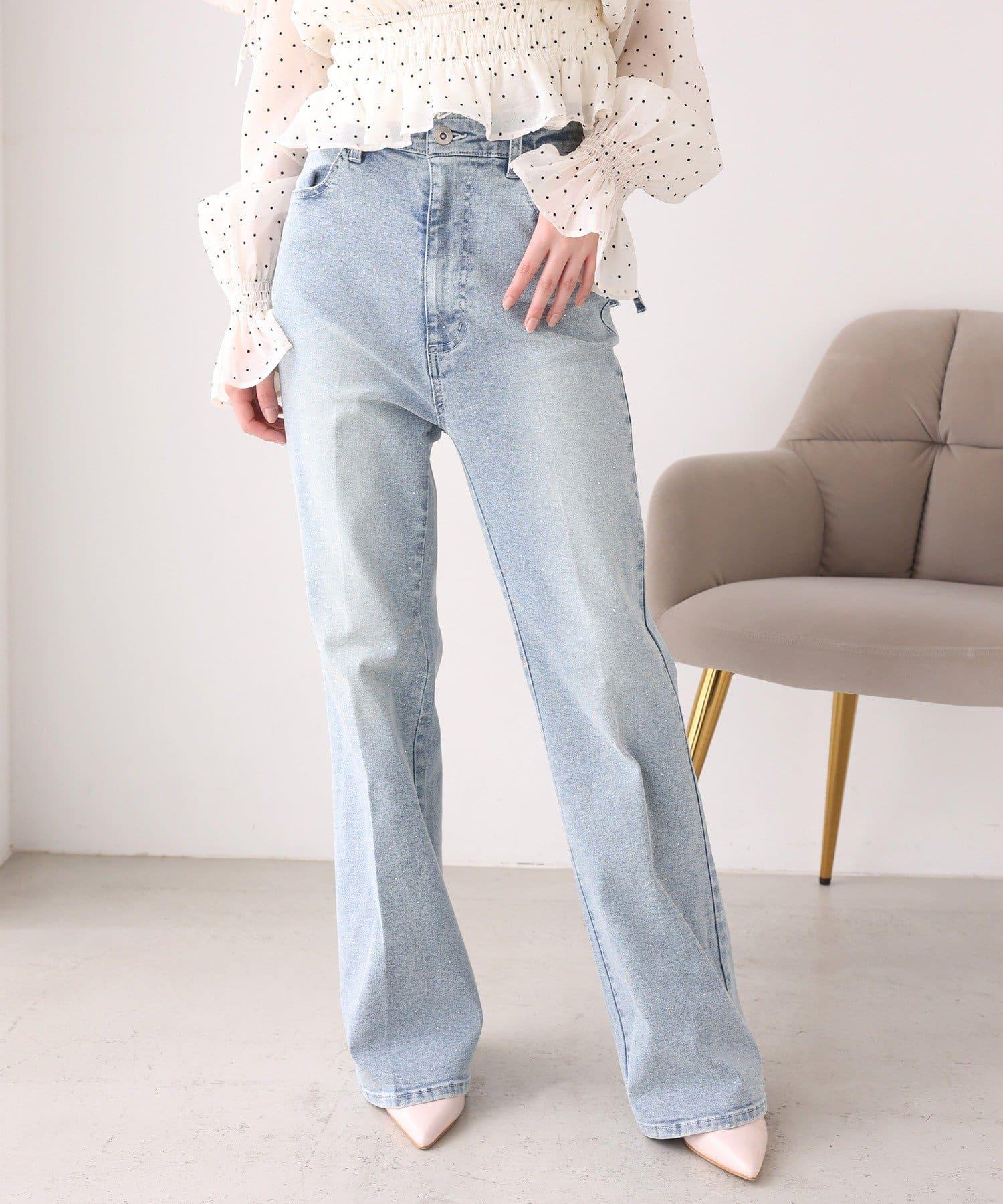 預約商品側邊鏤空蕾絲 喇叭版型 牛仔褲