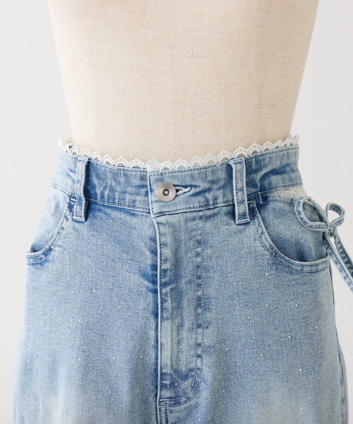 側邊鏤空蕾絲 喇叭版型 牛仔褲