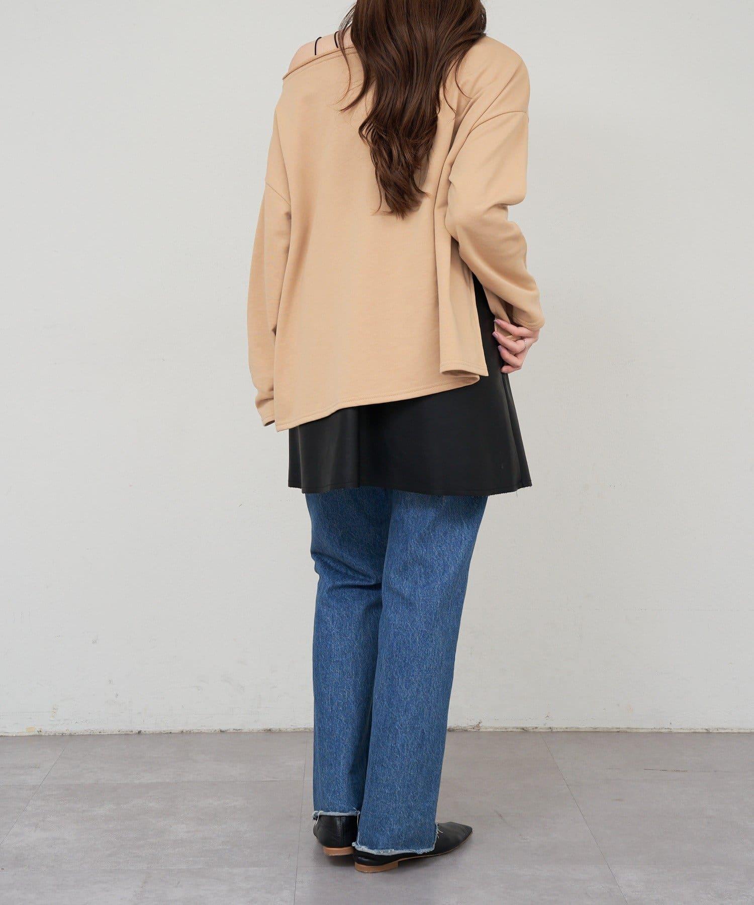 長度剛好在臀部以上,兩側的開衩設計給人一種輕鬆的感覺。