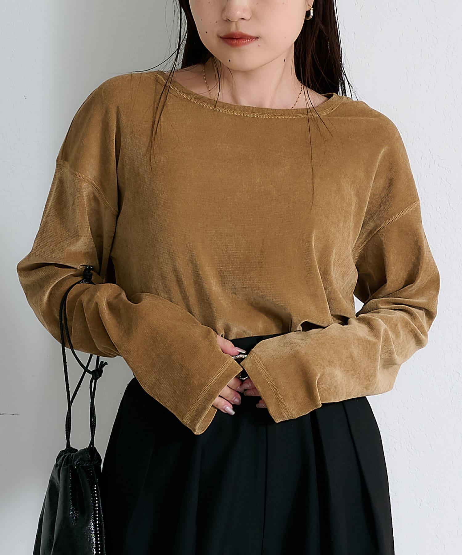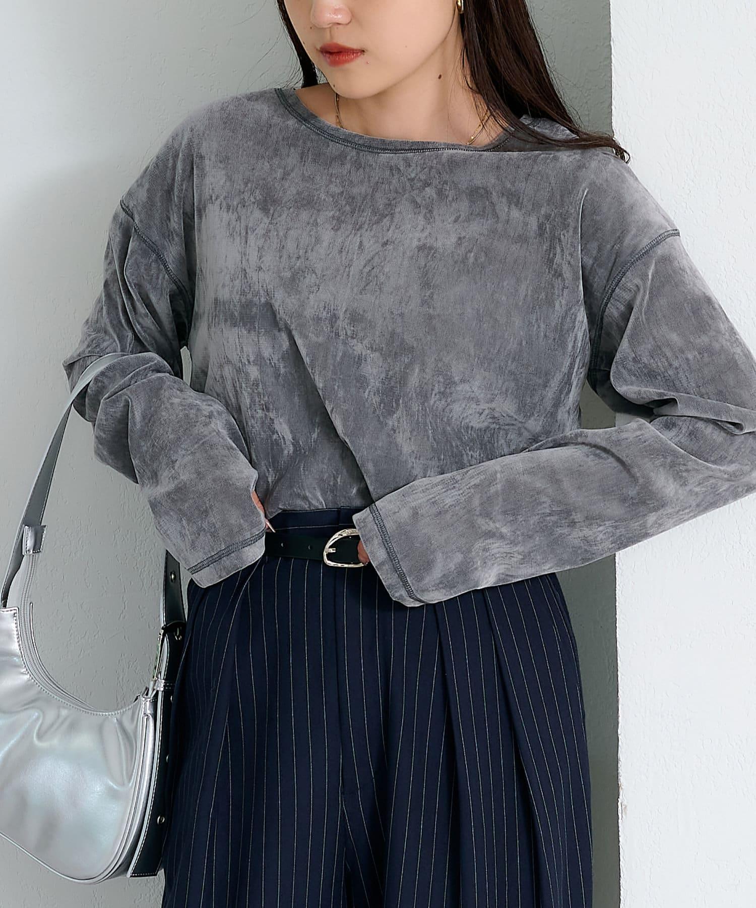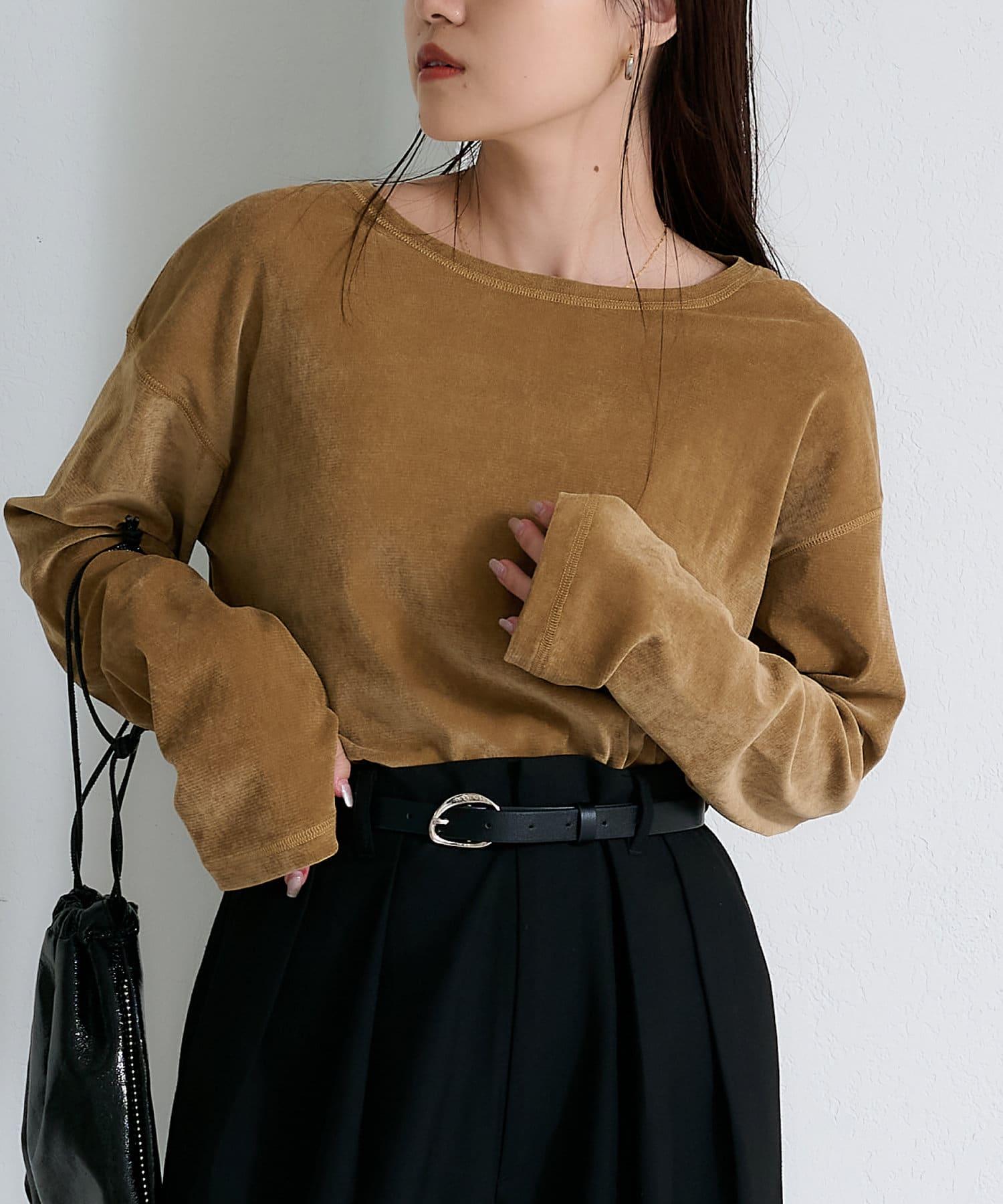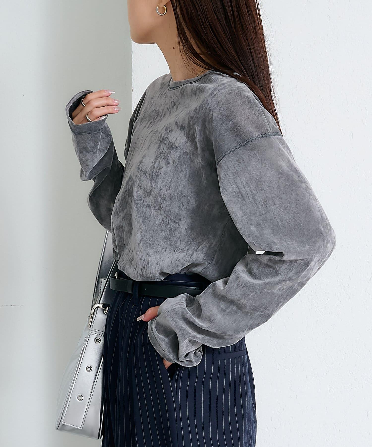 適度透明的網眼布具有植絨效果,穿著輕盈舒適,非常適合換季時穿著。