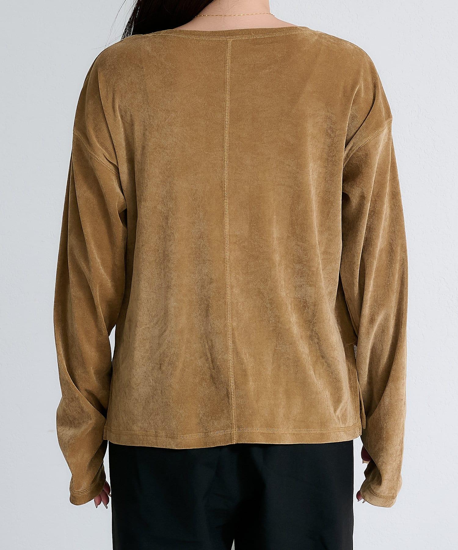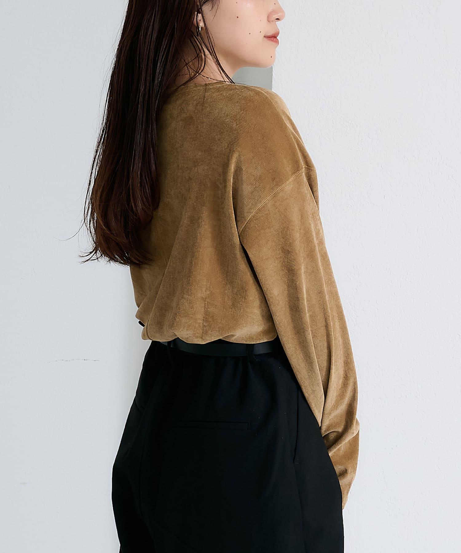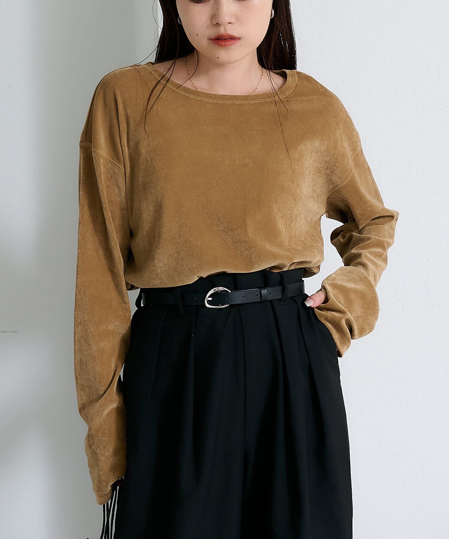 適度透明的網眼布具有植絨效果,穿著輕盈舒適,非常適合換季時穿著。