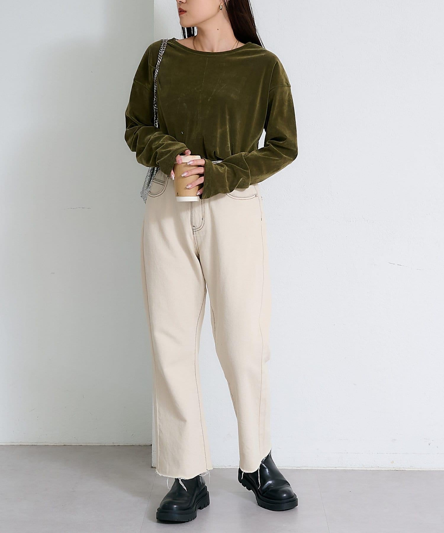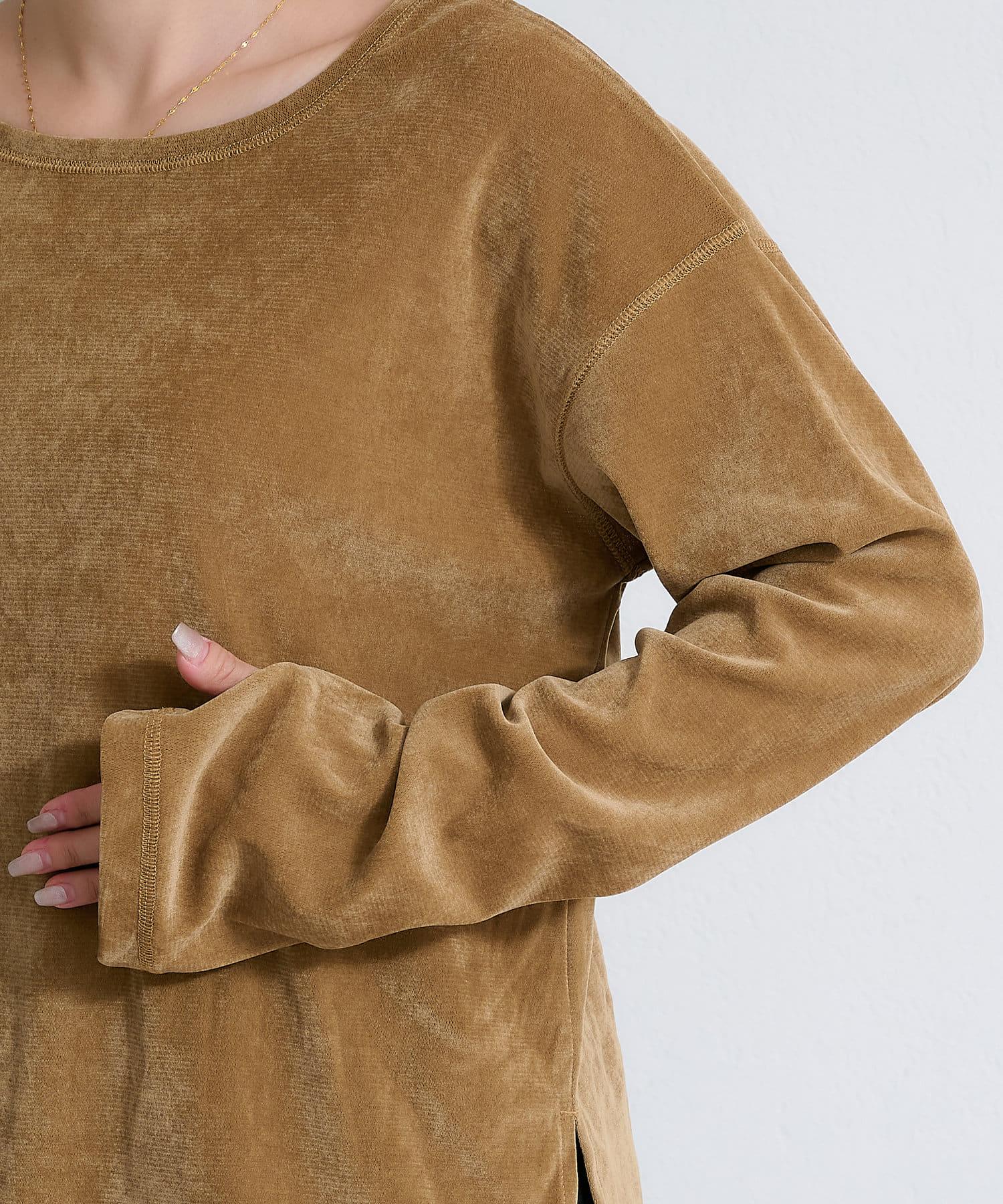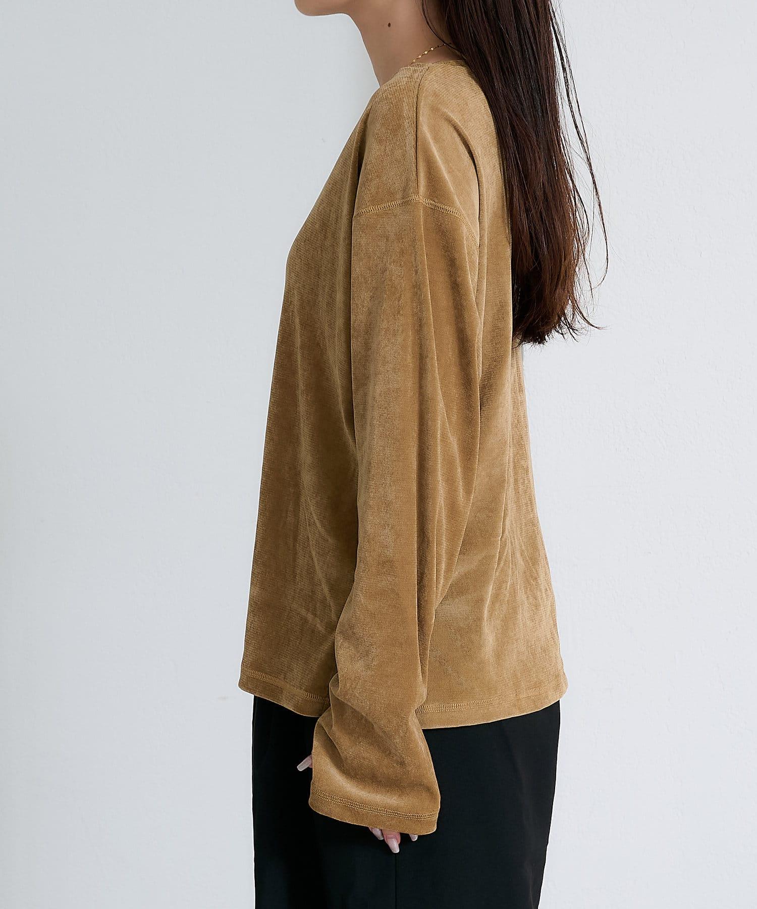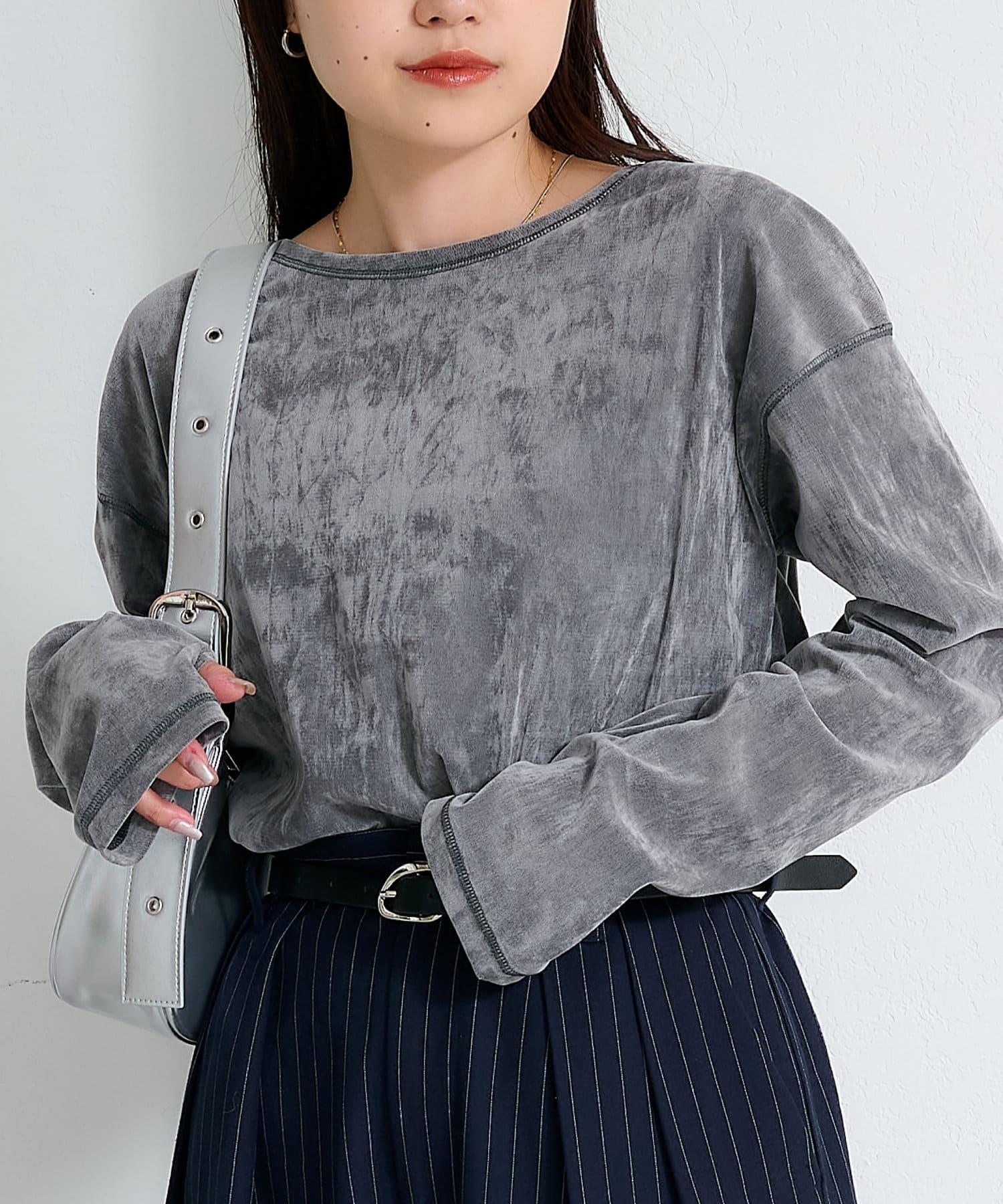 適度透明的網眼布具有植絨效果,穿著輕盈舒適,非常適合換季時穿著。