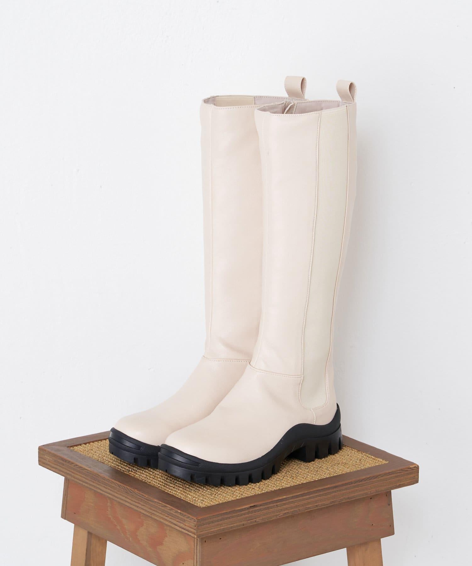 厚底營造出時尚美腿效果。側面拉鍊讓您穿脫無壓力。