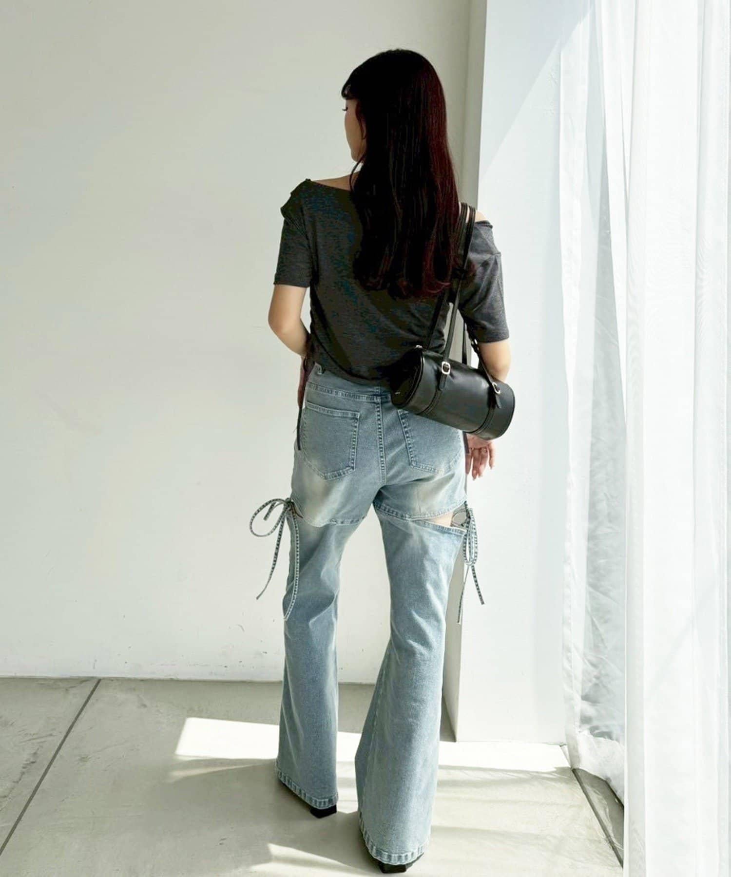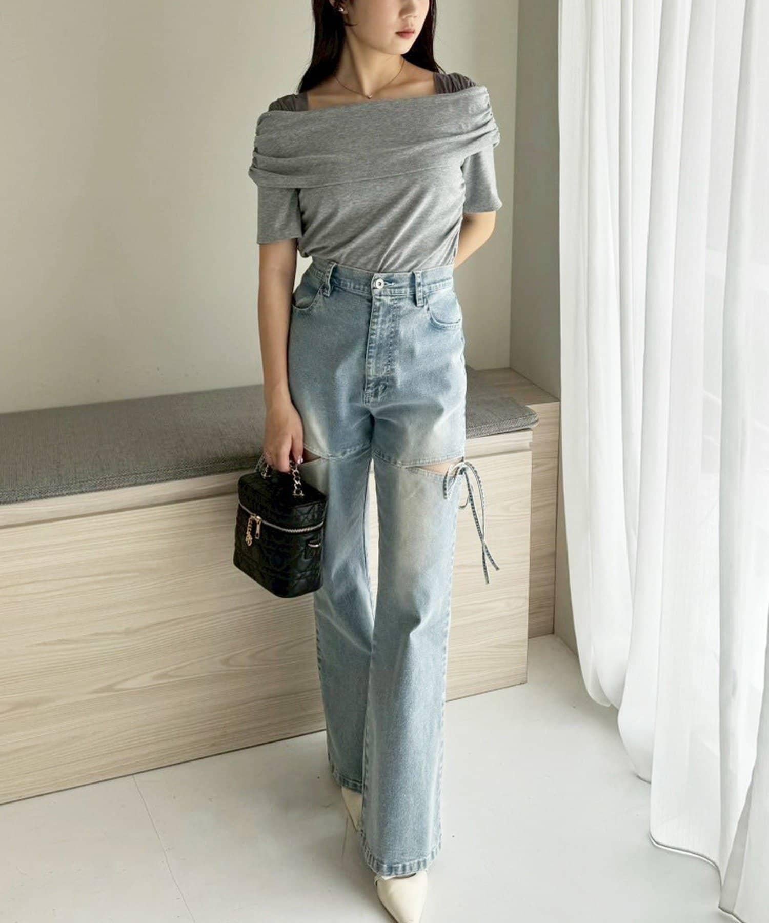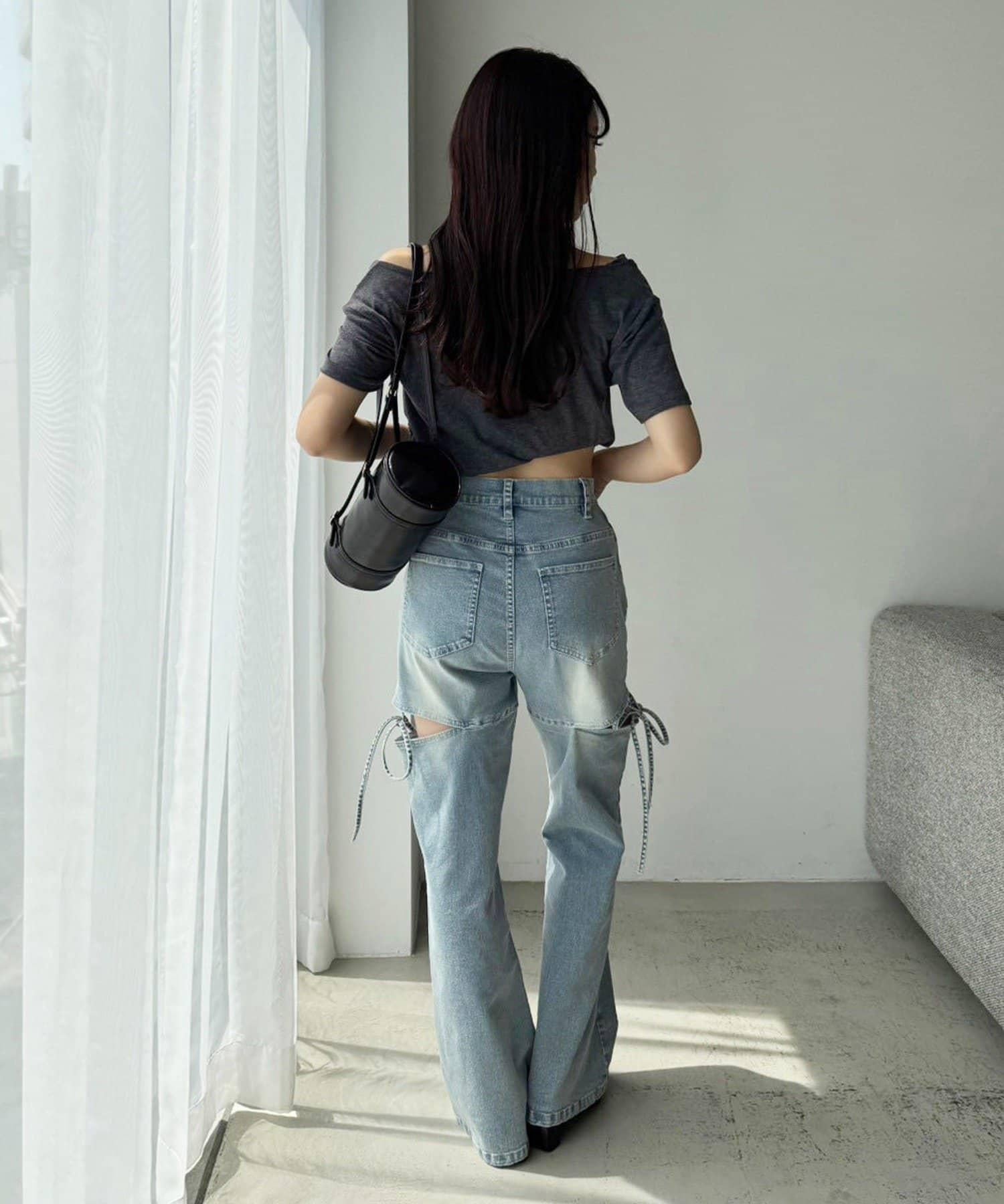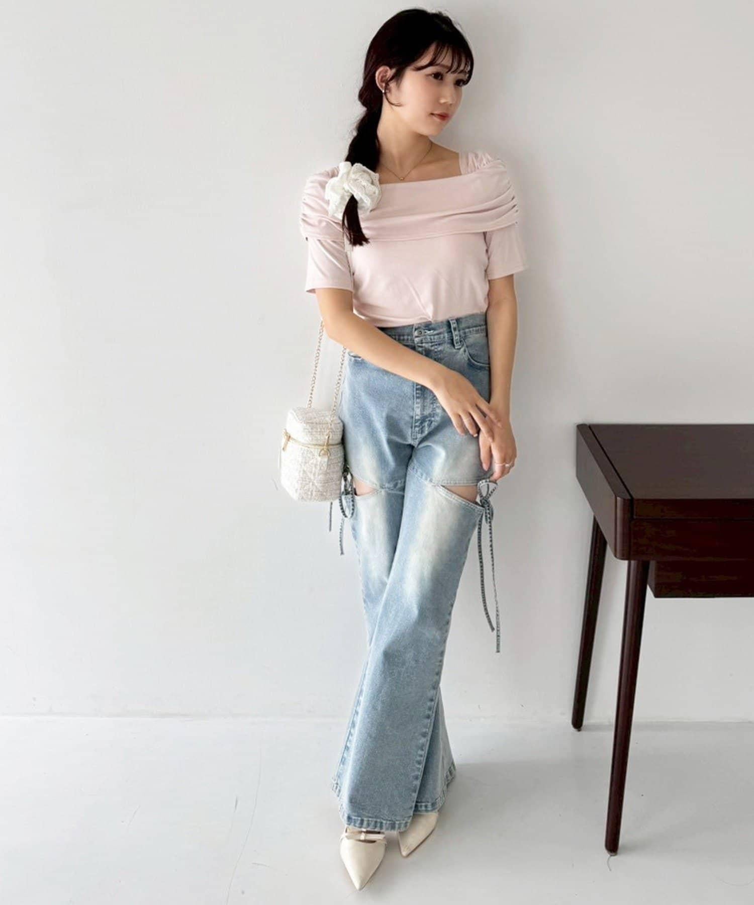 側開設計增添了寬鬆感,絲帶細節則增添了少女氣息。