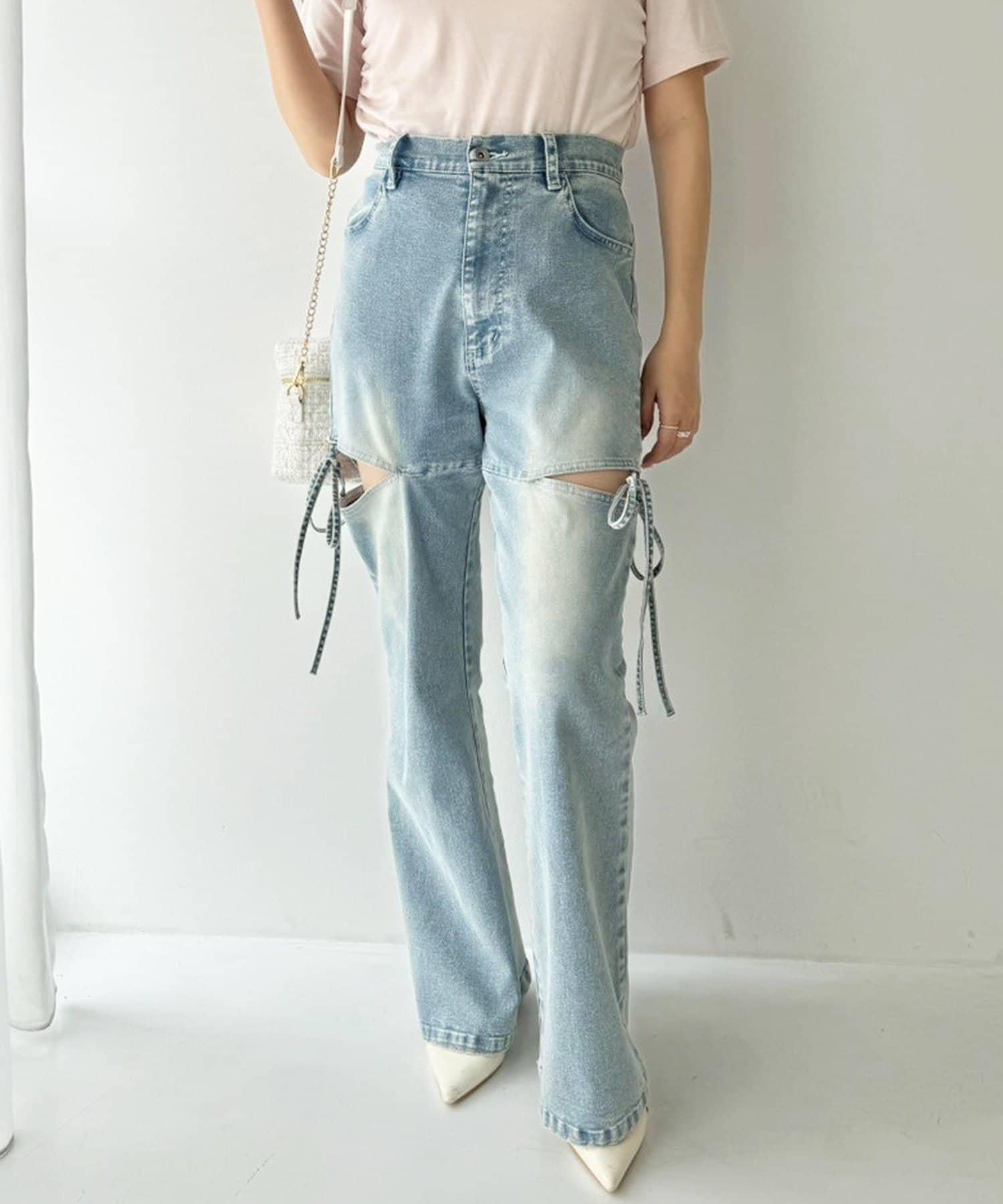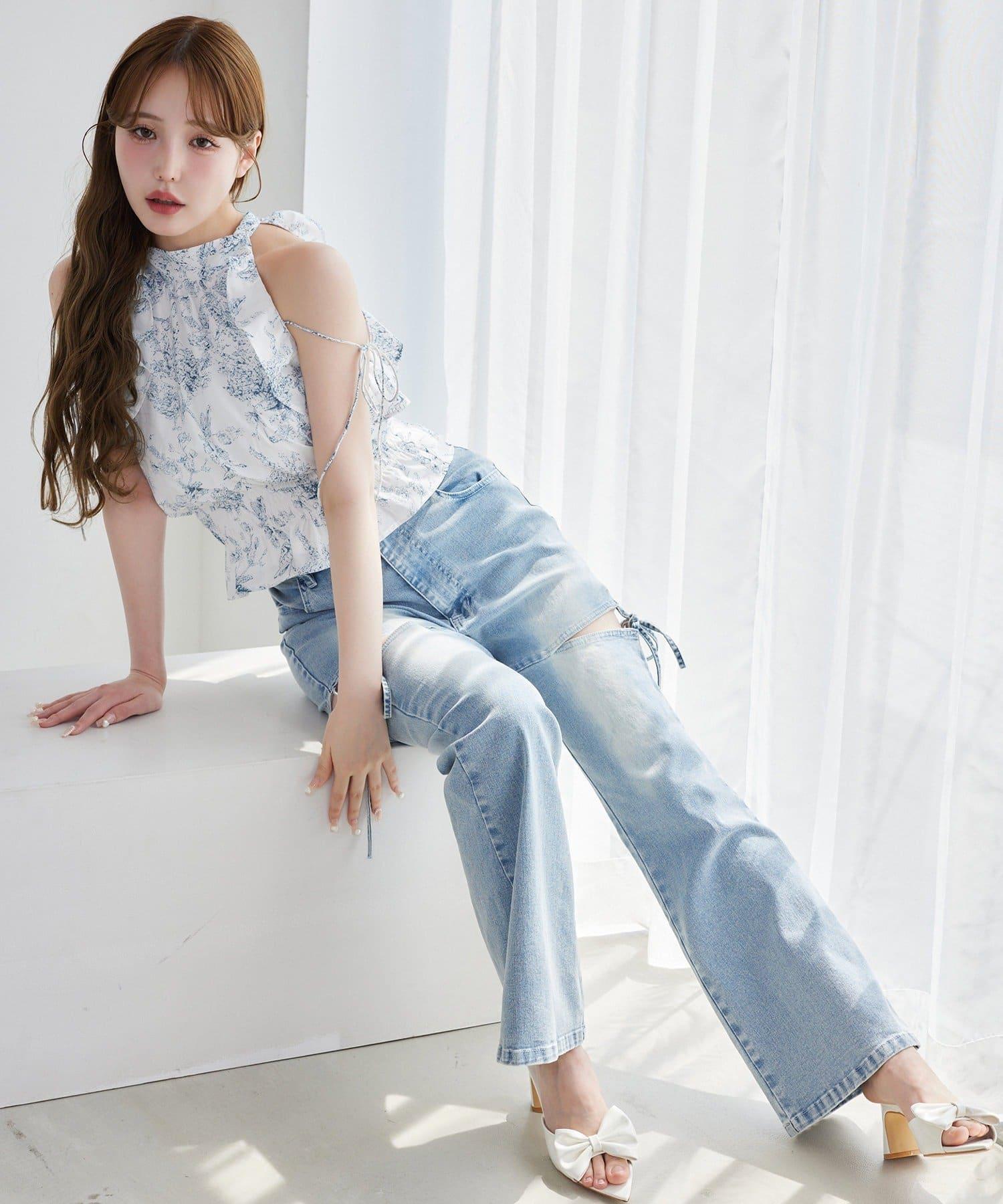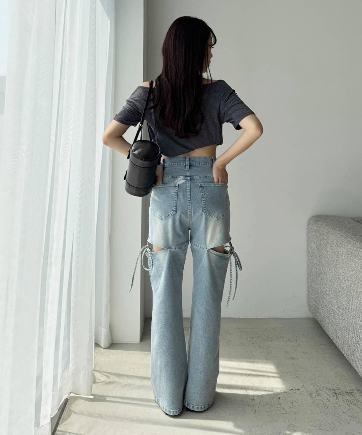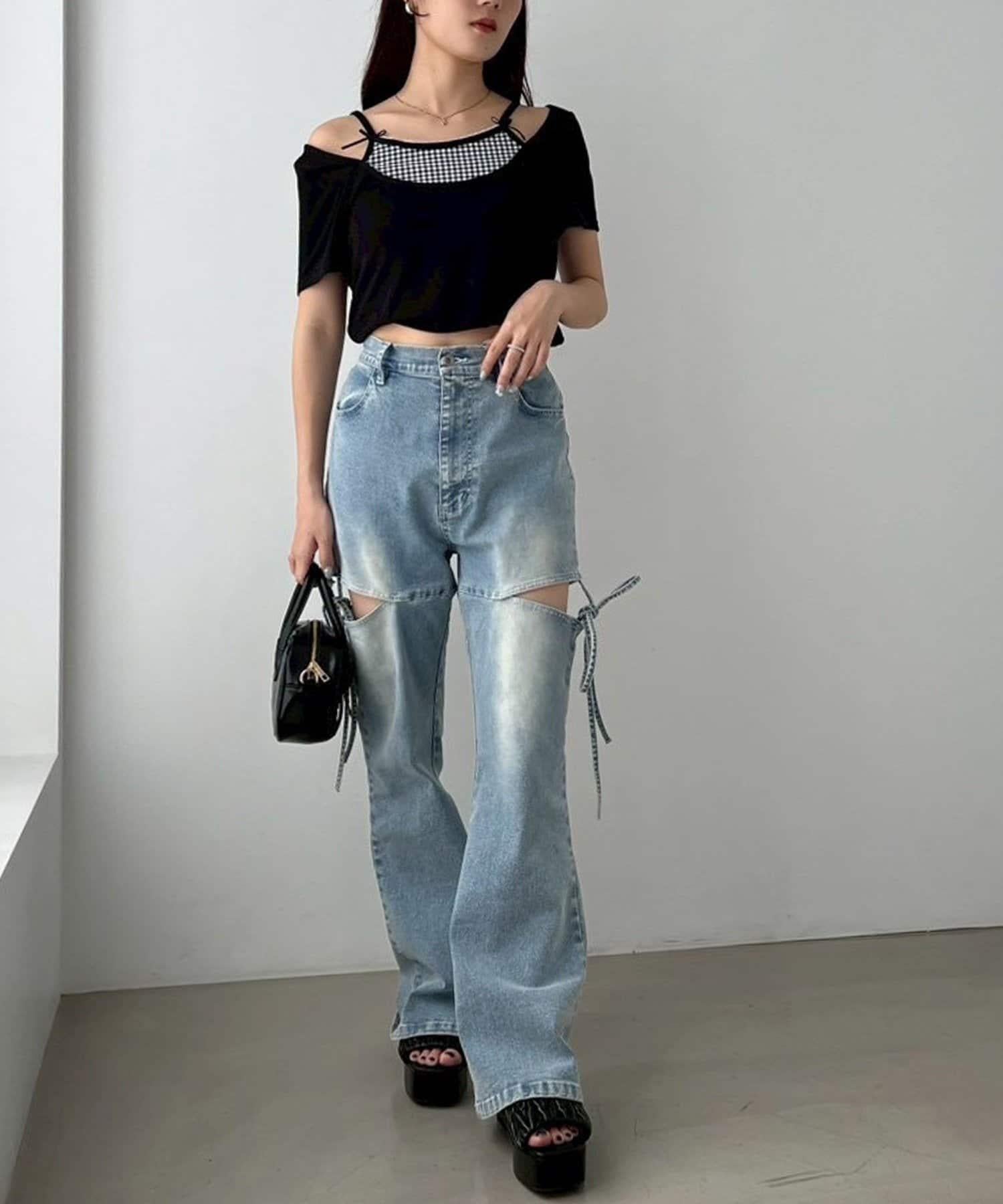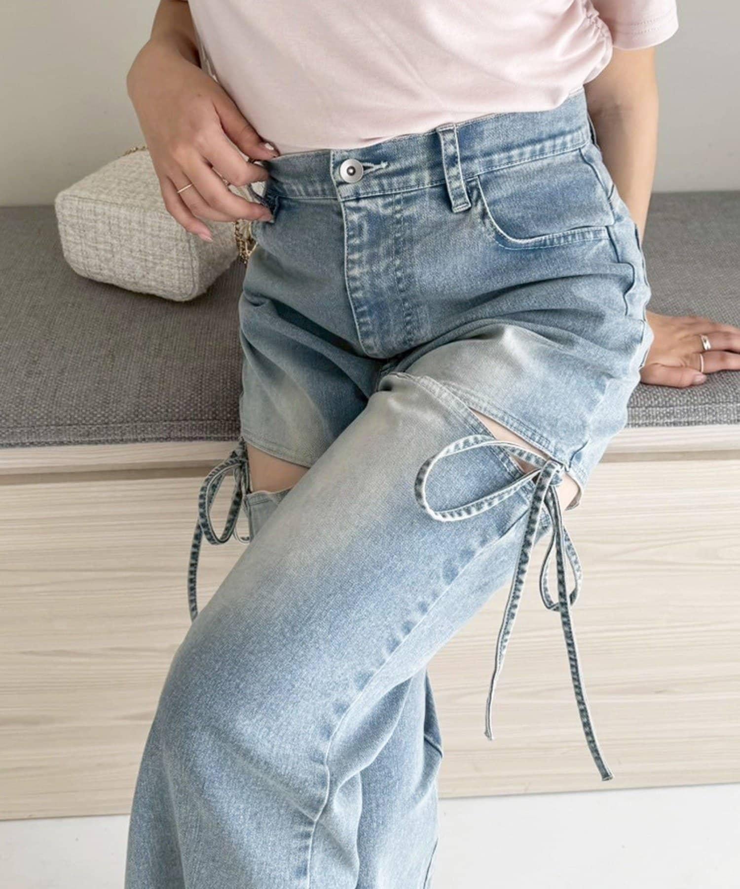 側開設計增添了寬鬆感,絲帶細節則增添了少女氣息。