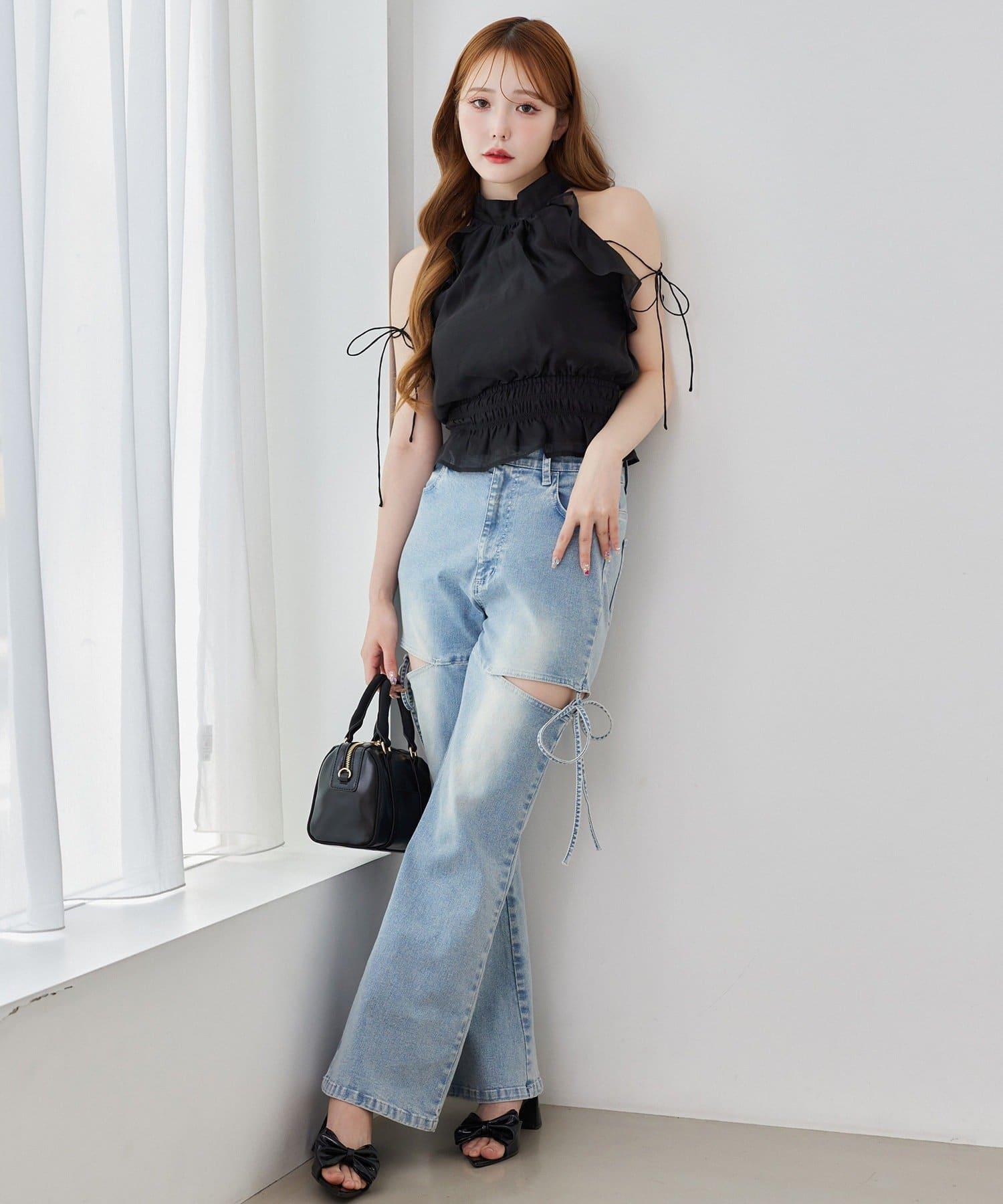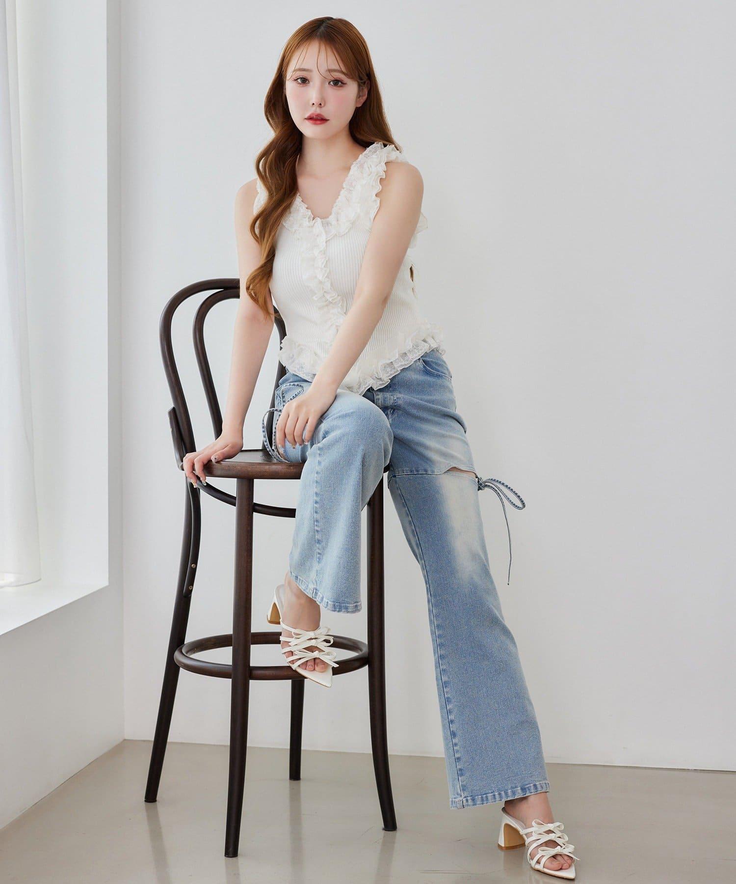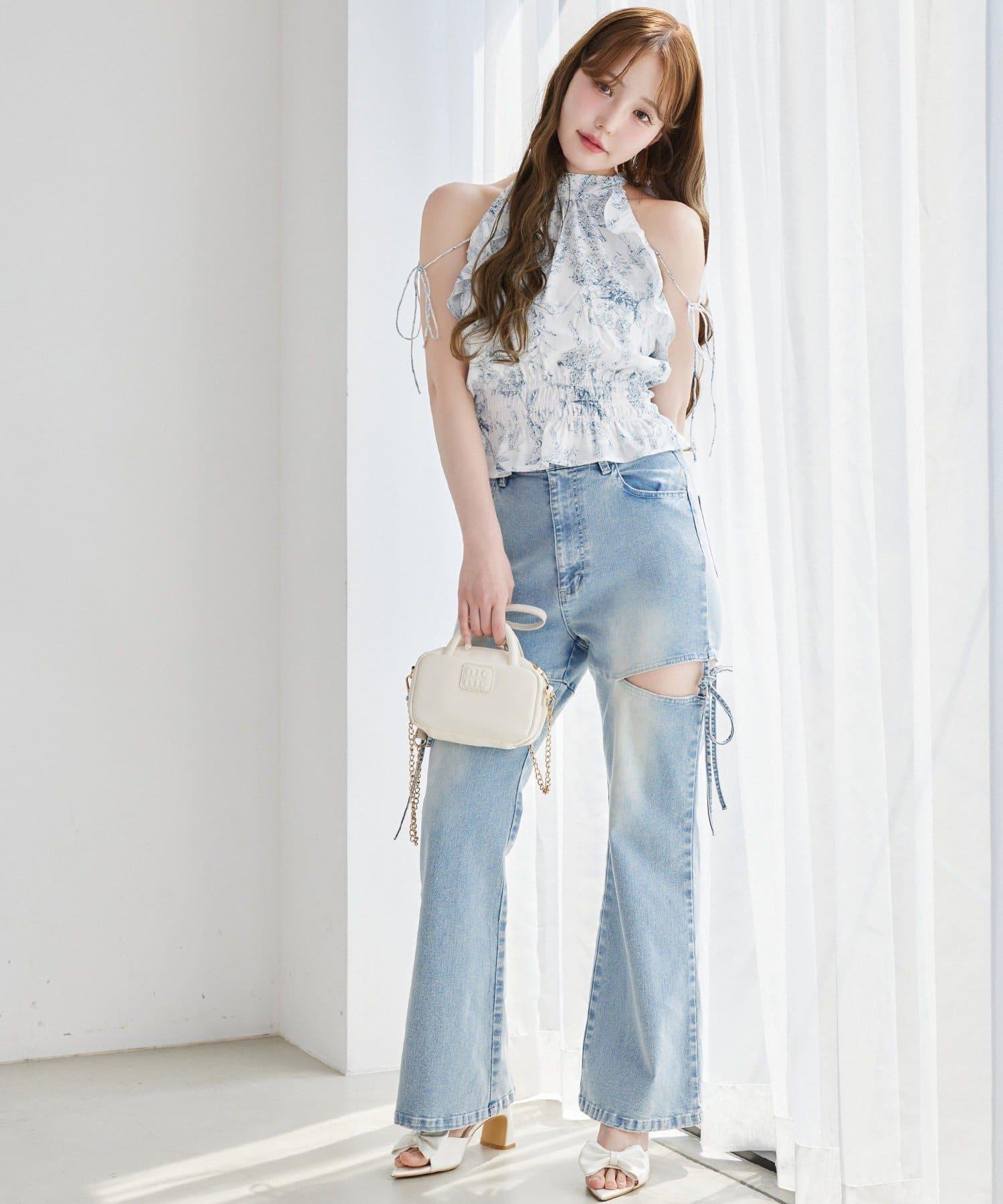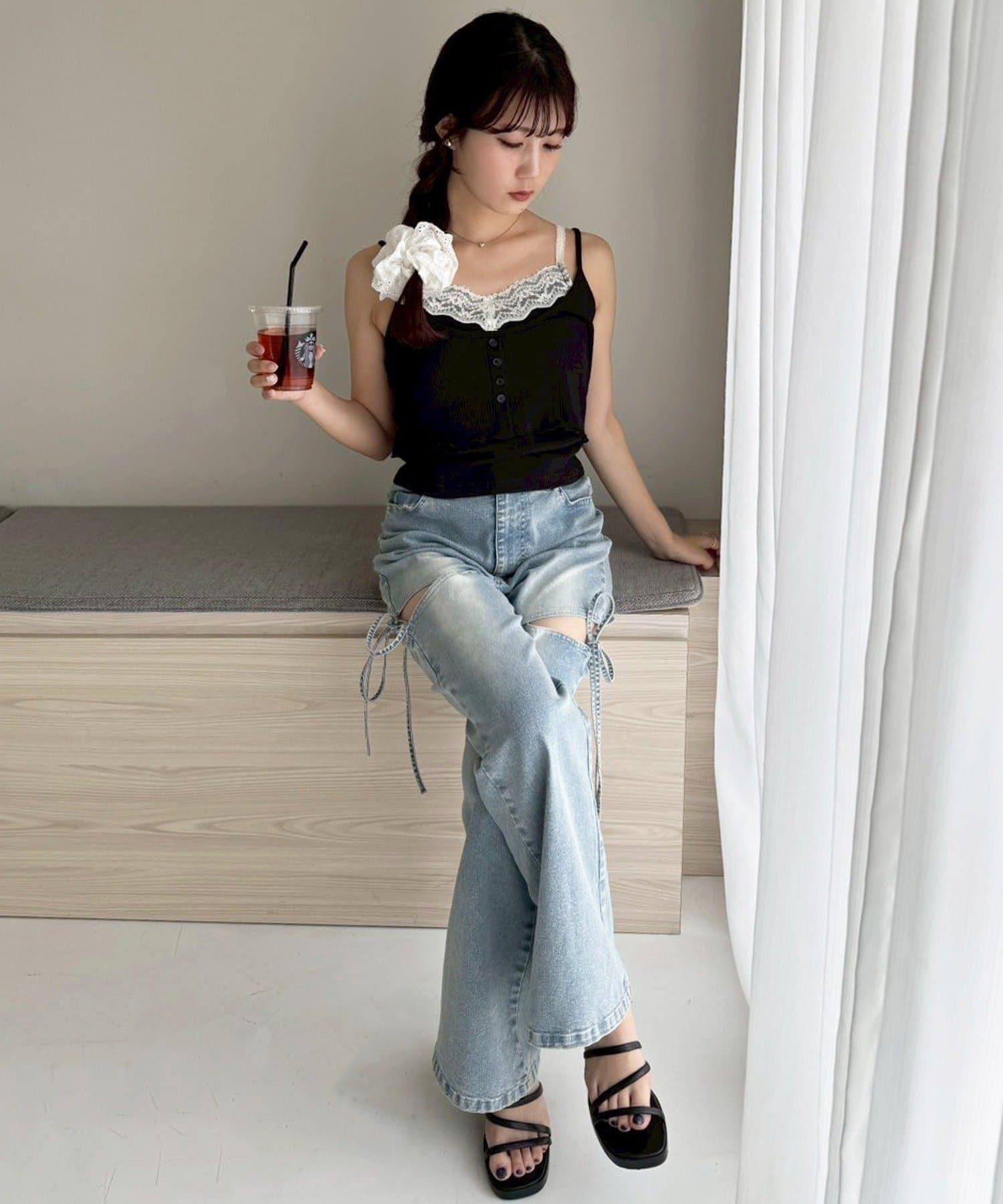 側開設計增添了寬鬆感,絲帶細節則增添了少女氣息。