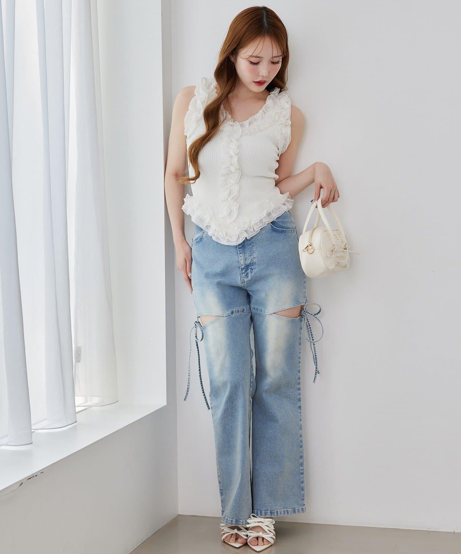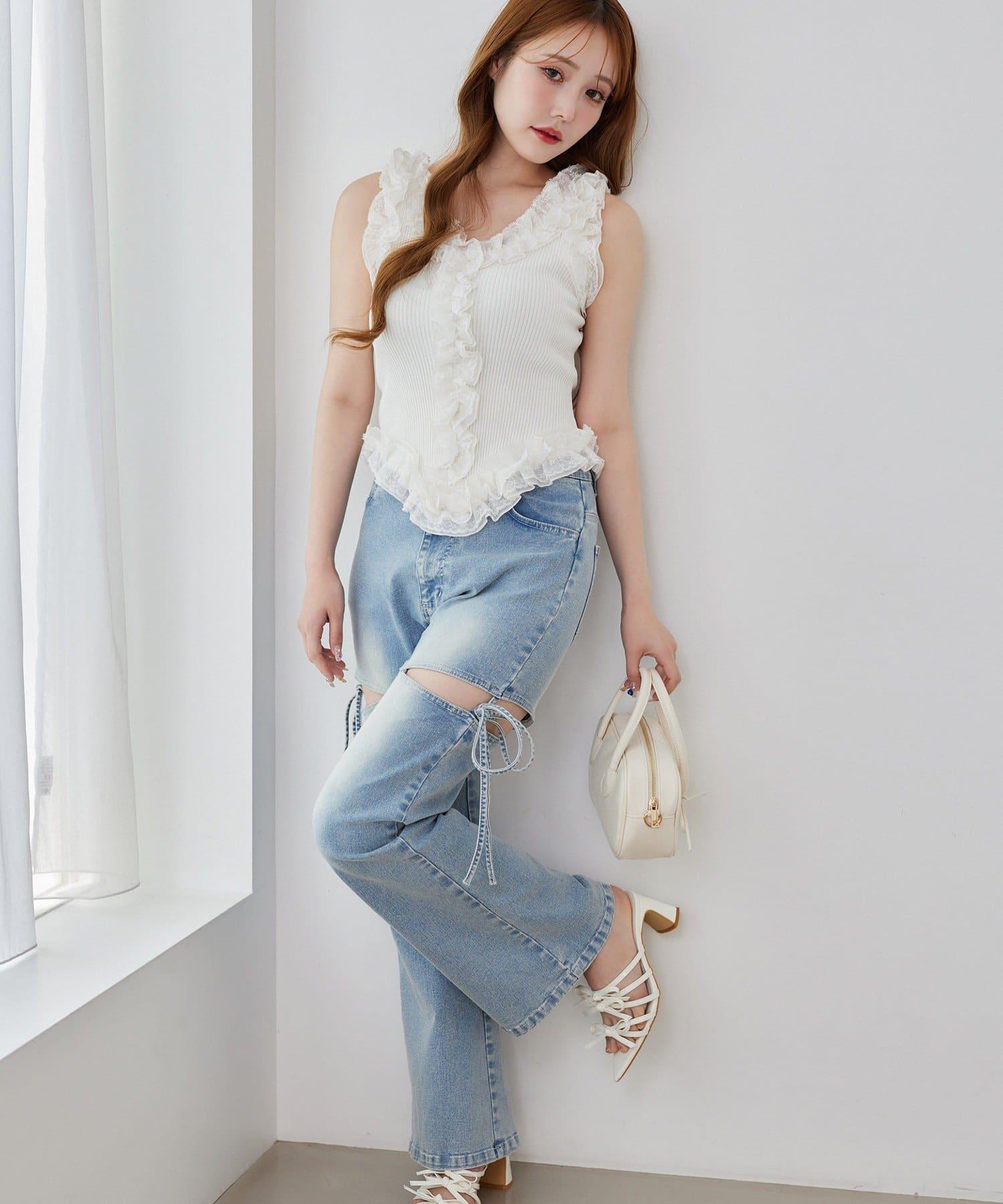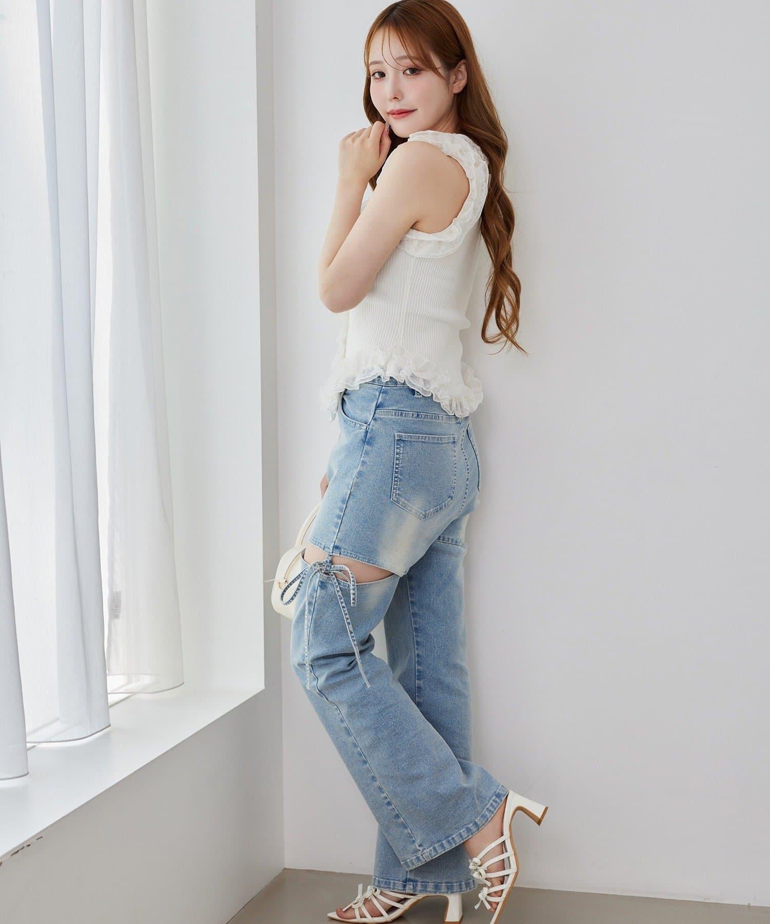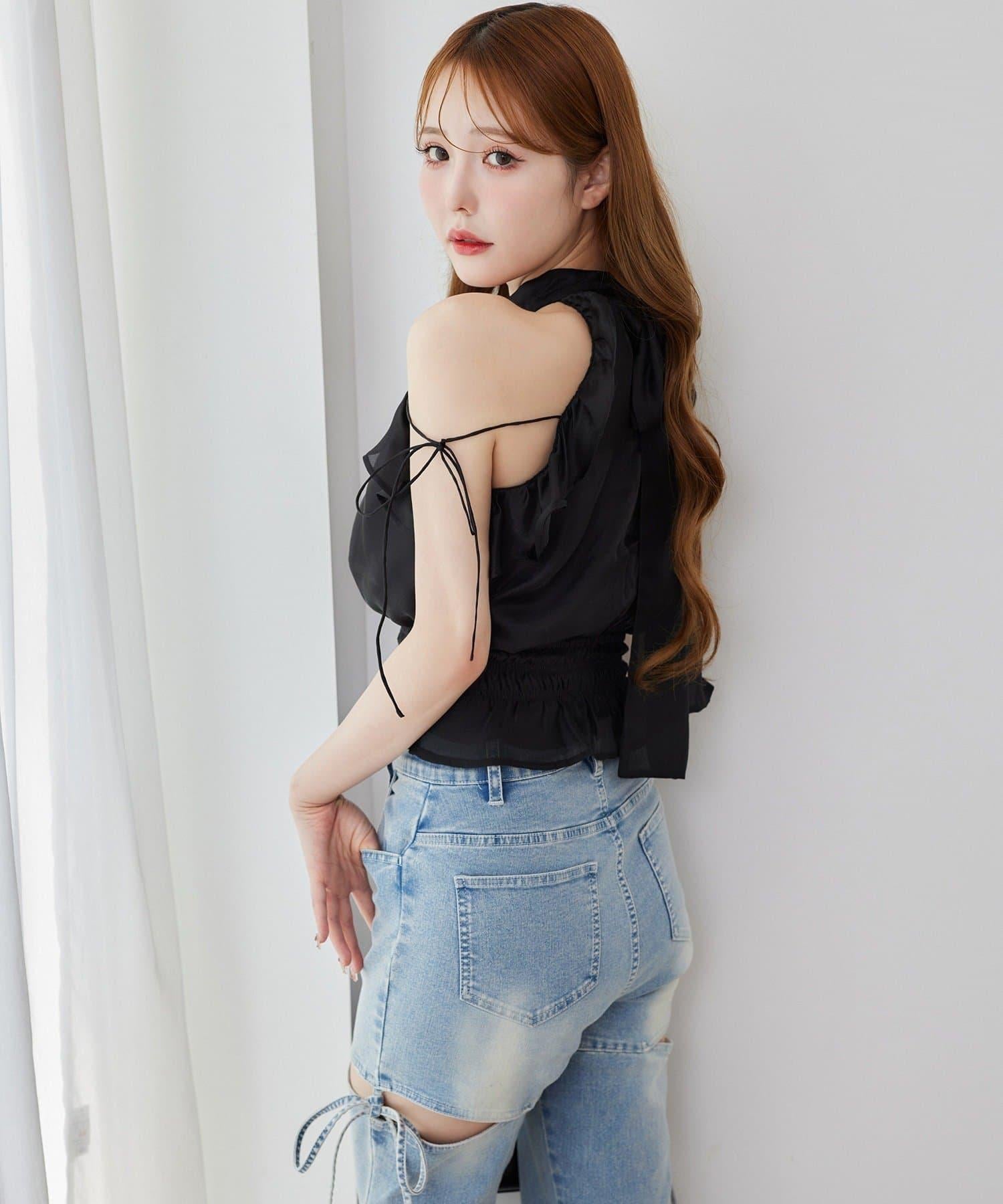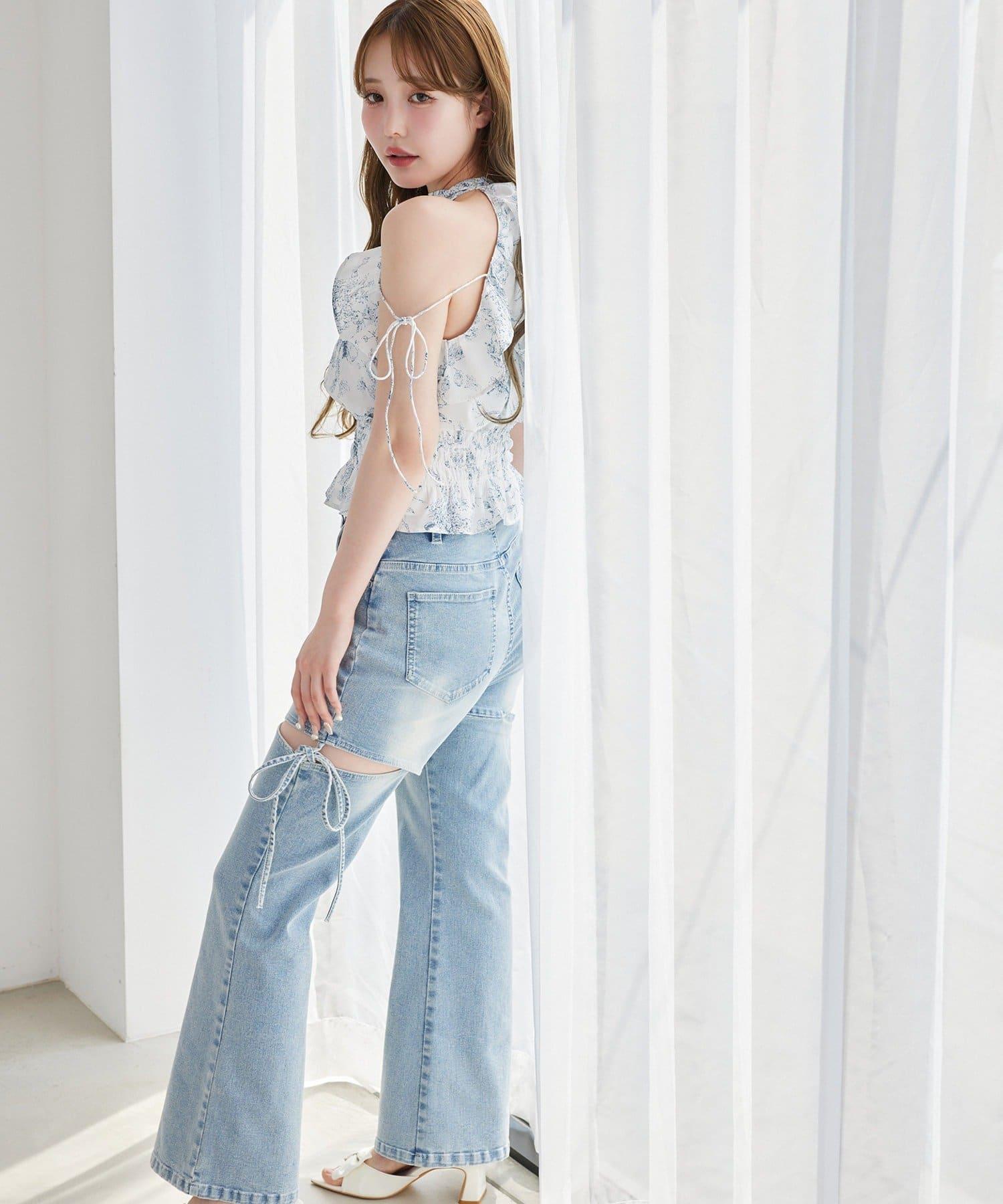 側開設計增添了寬鬆感,絲帶細節則增添了少女氣息。