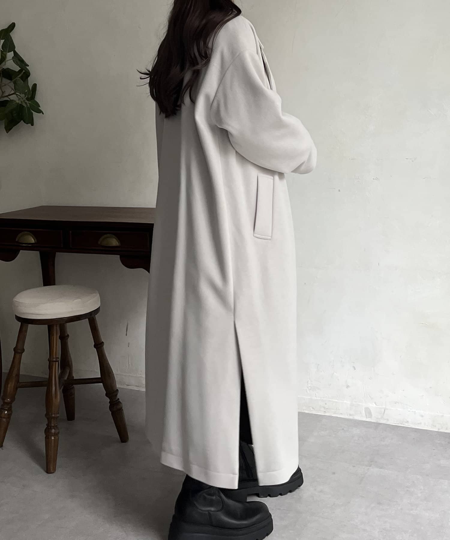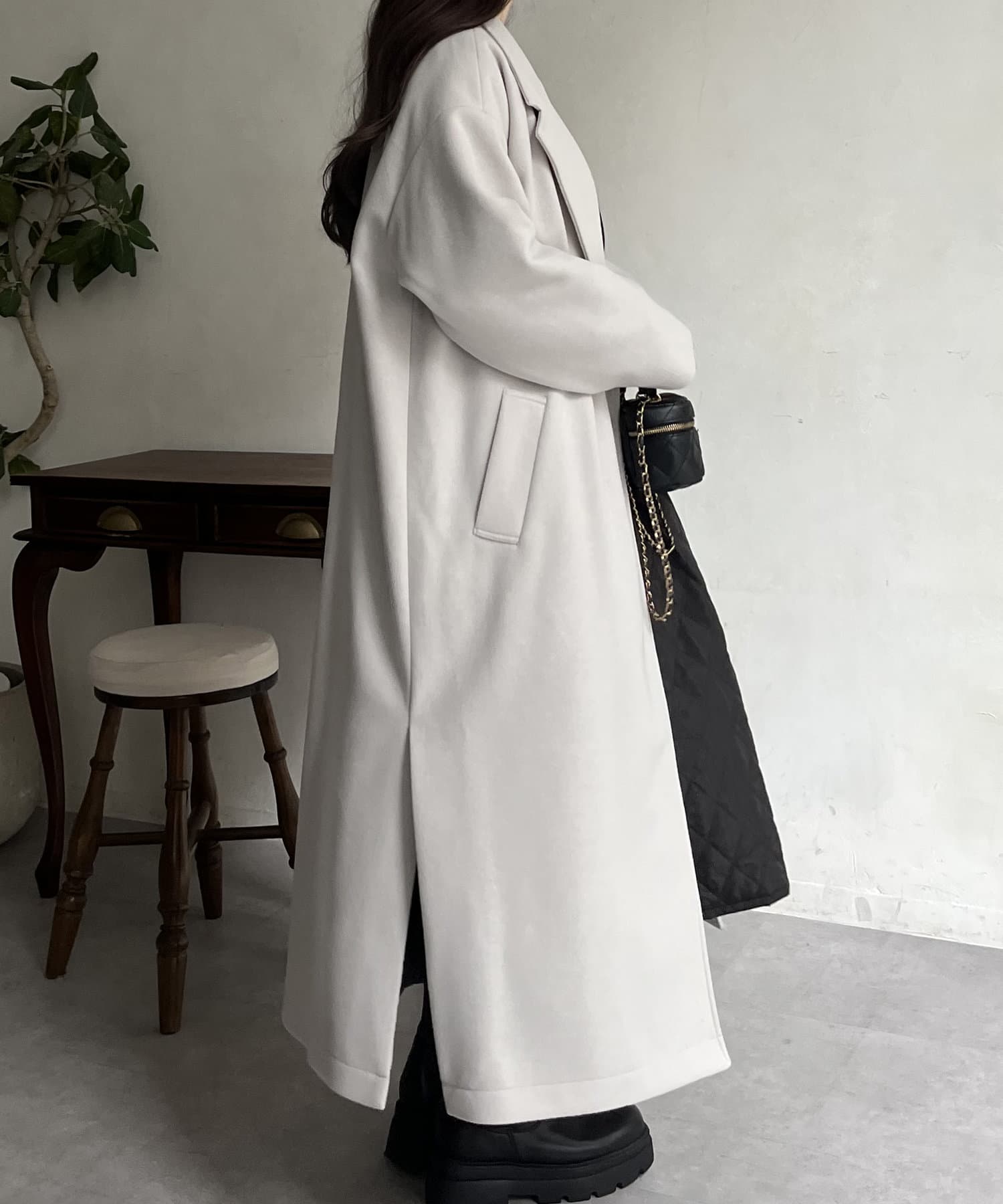 側開衩長款大衣