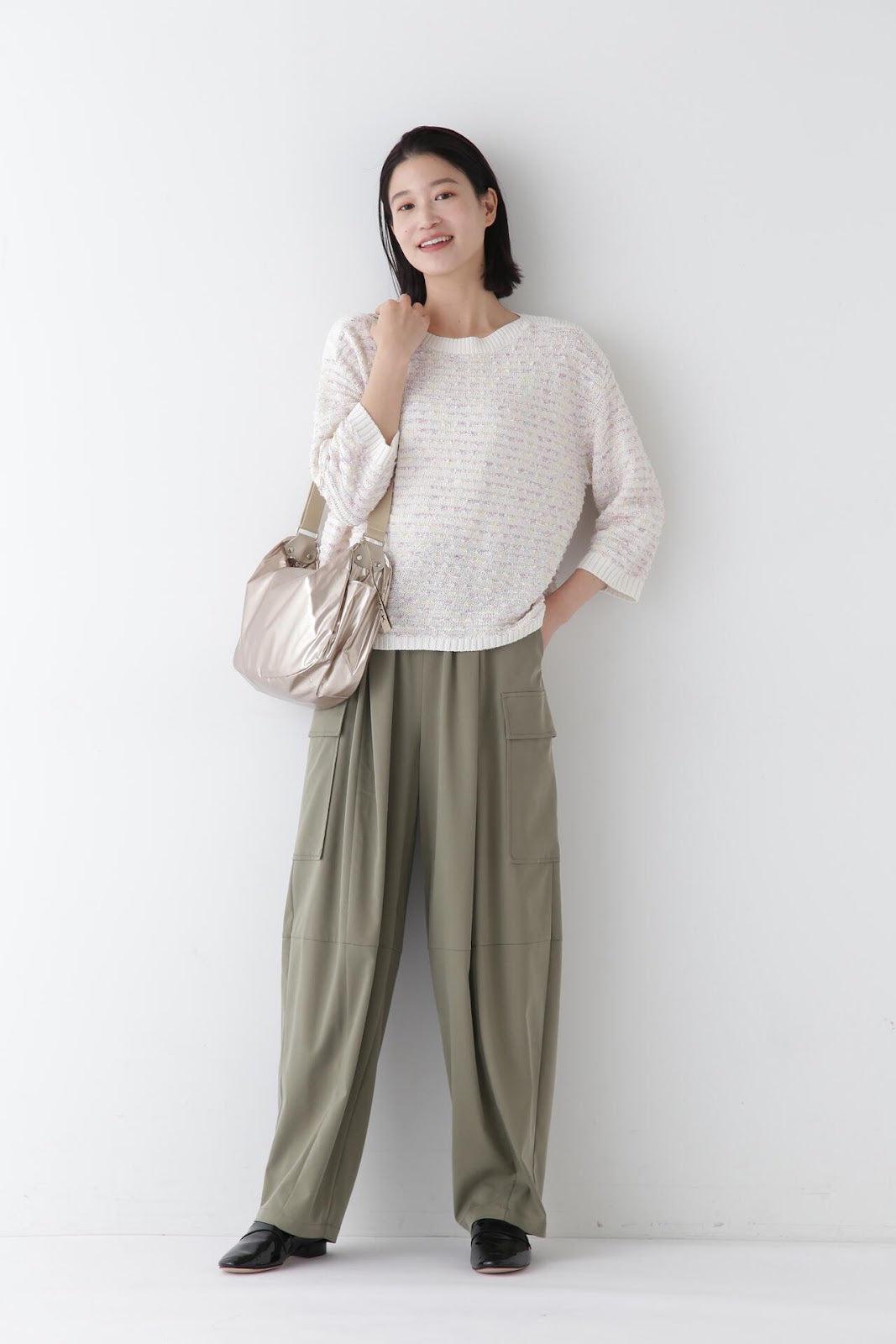成人緞面輕鬆長褲,打造粗獷而優雅的造型 [設計要點] 這款新長褲採用桶形輪廓,並帶有貨物細節。面料寬鬆,是一款可以輕鬆穿出休閒感的成熟單品。面料具有復古的皺褶質感和纖維質感。面料的觸感也非常舒適。建議搭配】由於面料手感寬鬆,建議搭配略帶破舊感的上衣,穿出粗獷的感覺。也可以搭配襯衫或夾克,讓造型更加精緻。