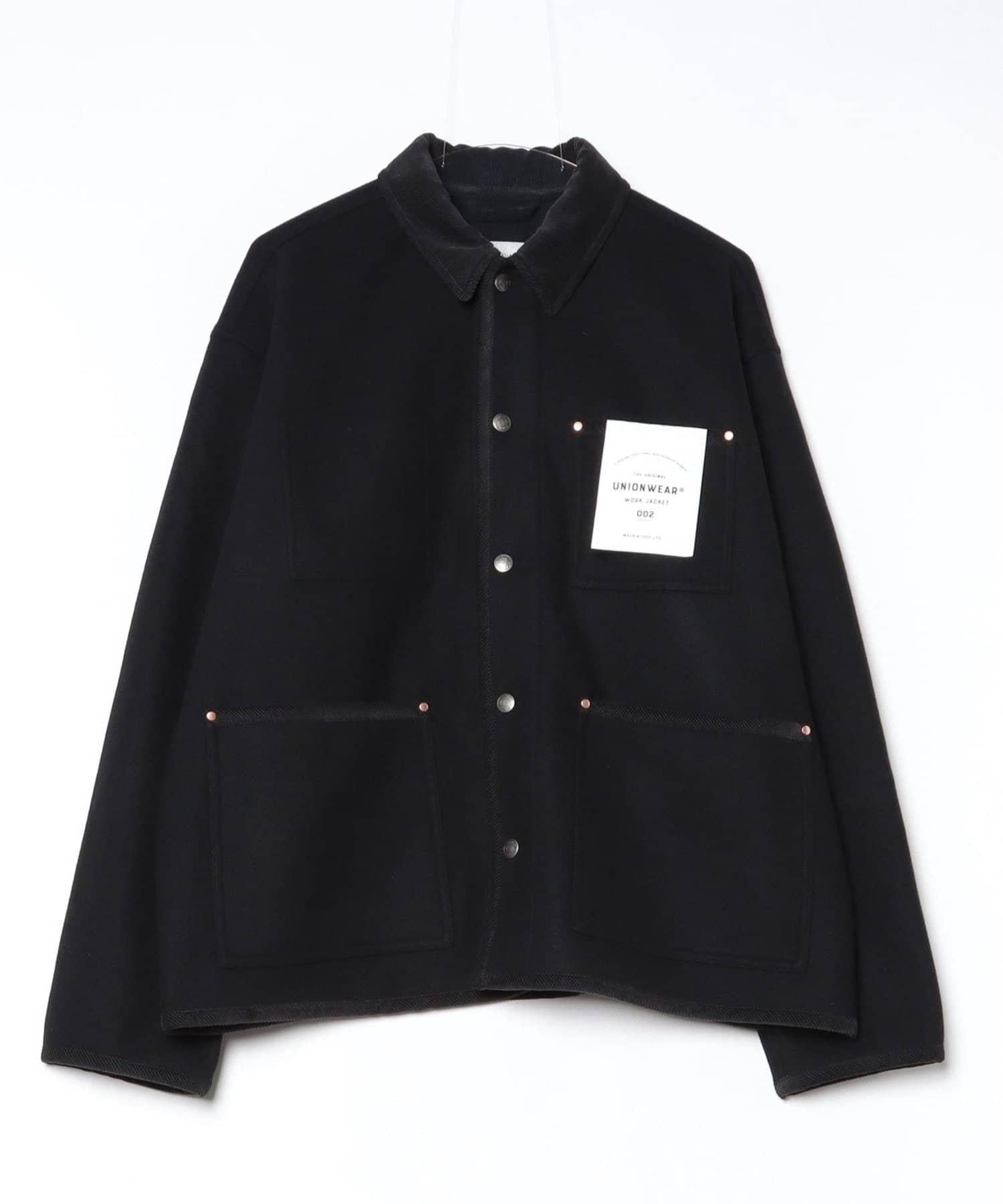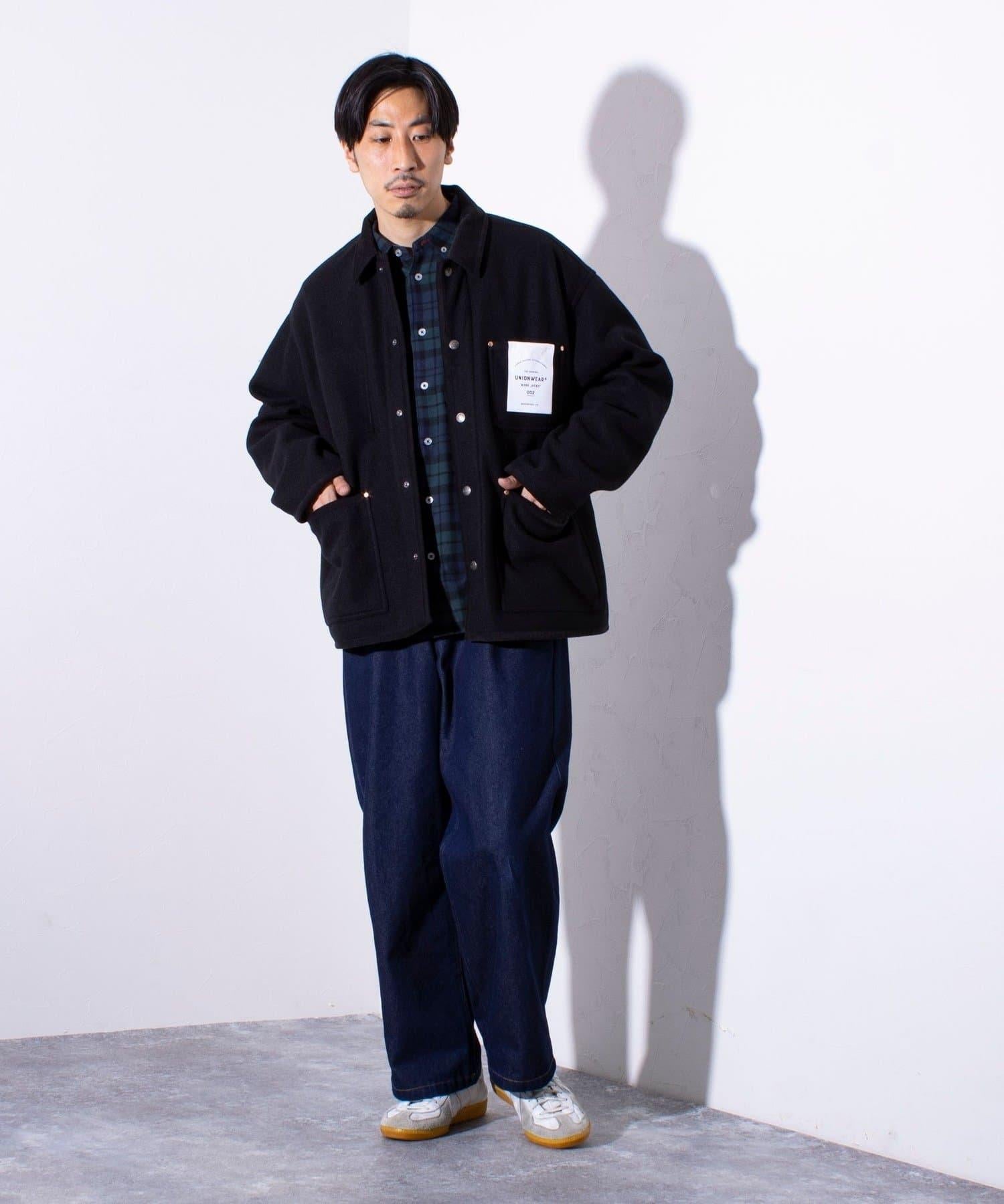 這款工作夾克 002 是一款連體服夾克,肩部下垂,剪裁整潔而方正。