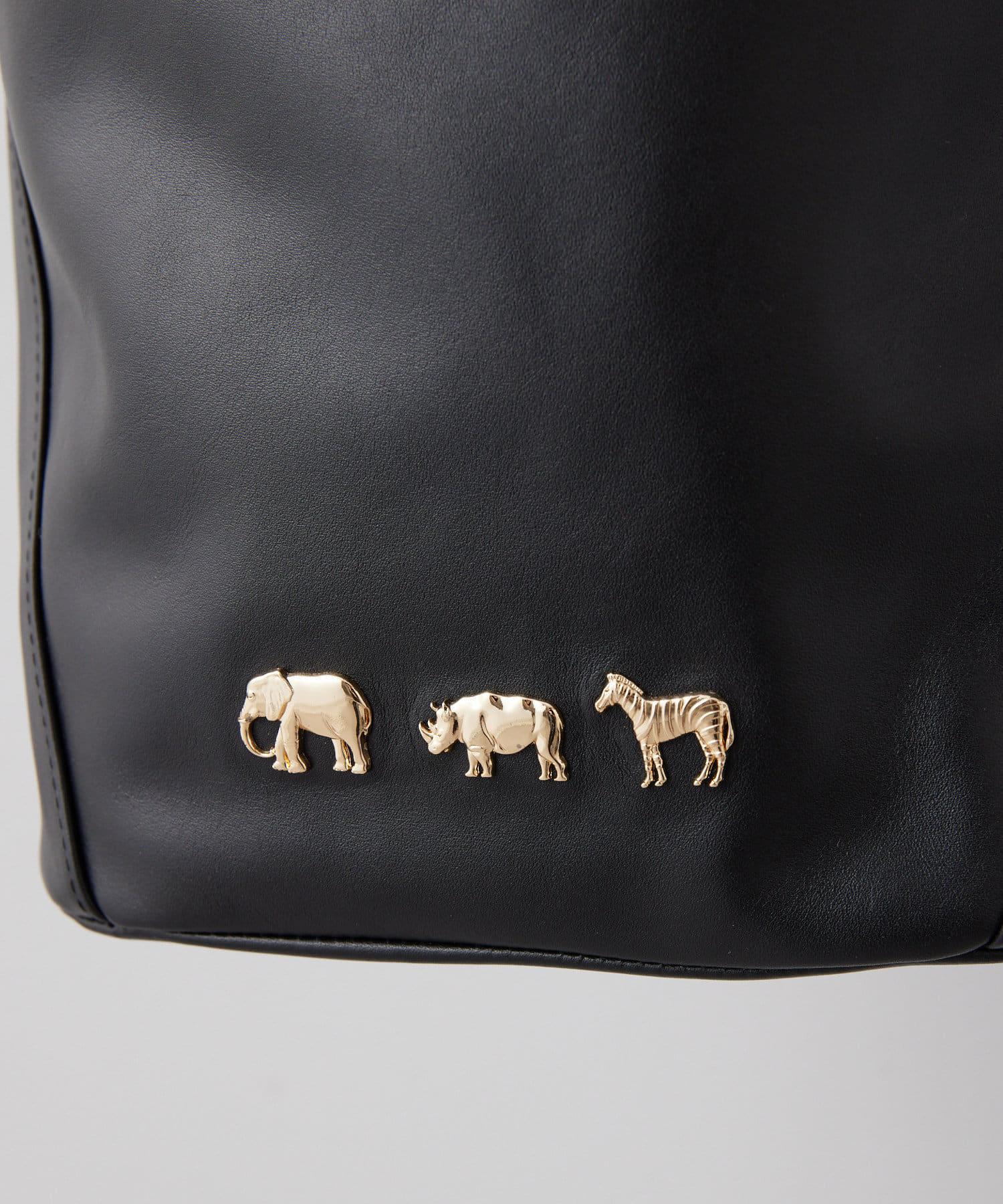 大象、犀牛和斑馬依次排列。 單手柄包飾有金屬部件。