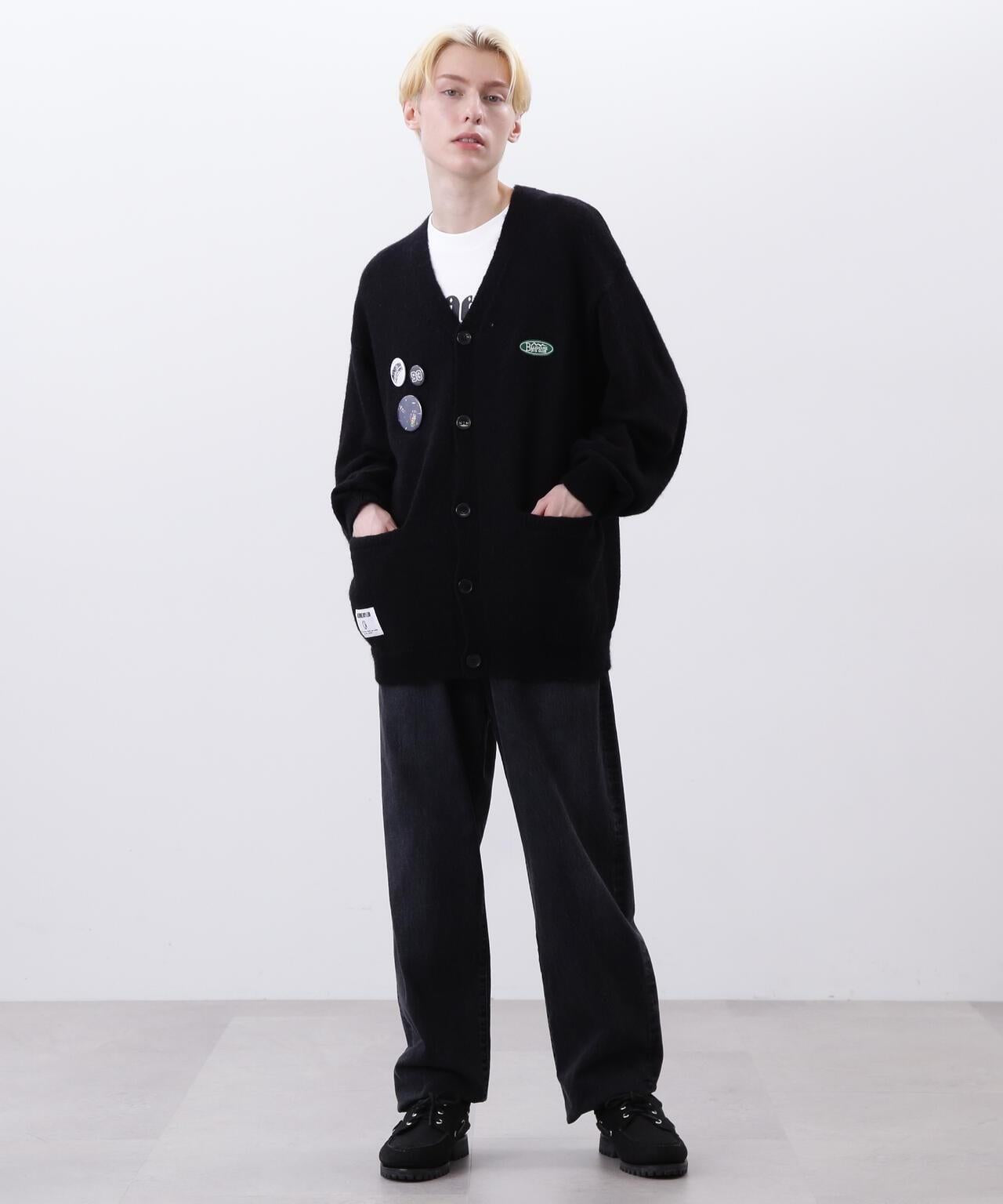 ×由 BILLIONAIRE BOYS CLUB/BBC 開發的原創馬海毛混紡針織開衫(MOHAIR CARDIGAN WITH BADGE/BBC)。正面繡有 BBC 設計的 MANASTASH 標誌。正面繡有以 BBC 風格排列的原版 MANASTASH 標誌,並附有四個為此次合作設計的徽章。BILLIONAIRE BOYS CLUB / 億萬富翁俱樂部] 億萬富翁俱樂部由 "法瑞爾-威廉姆斯 "創立。