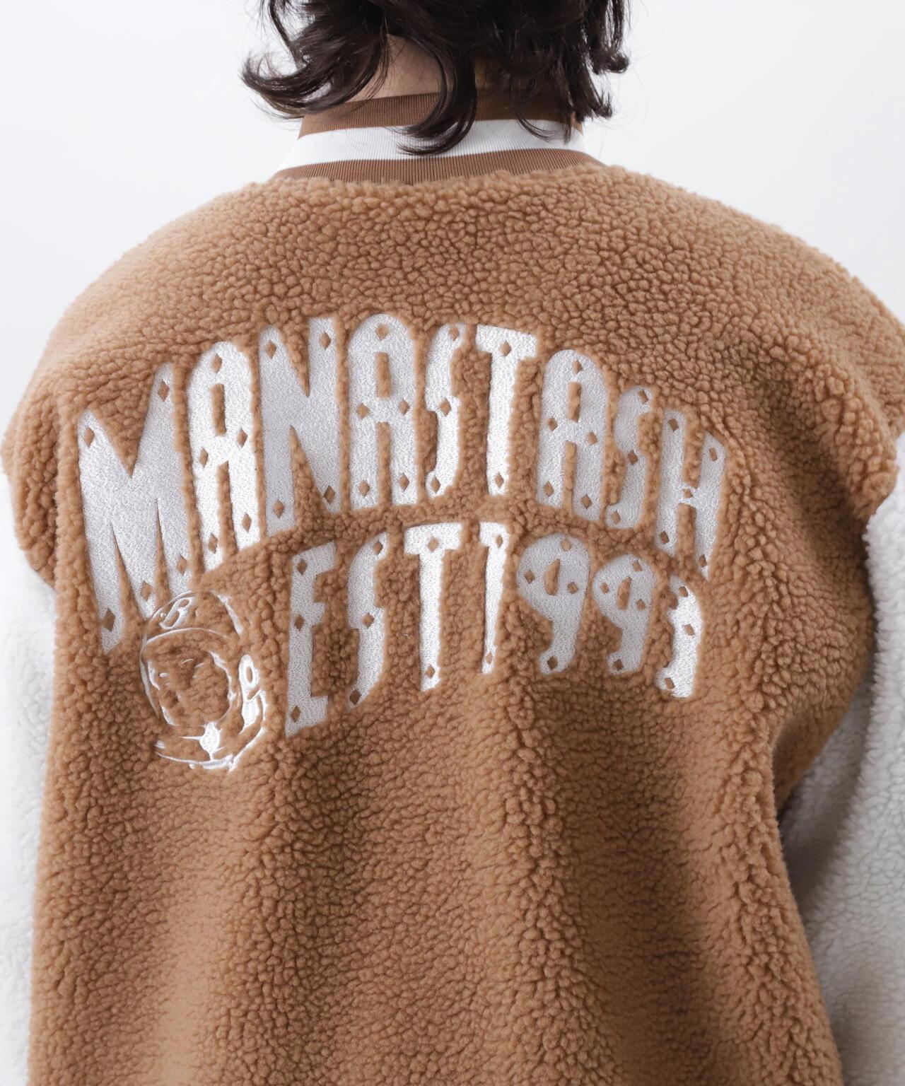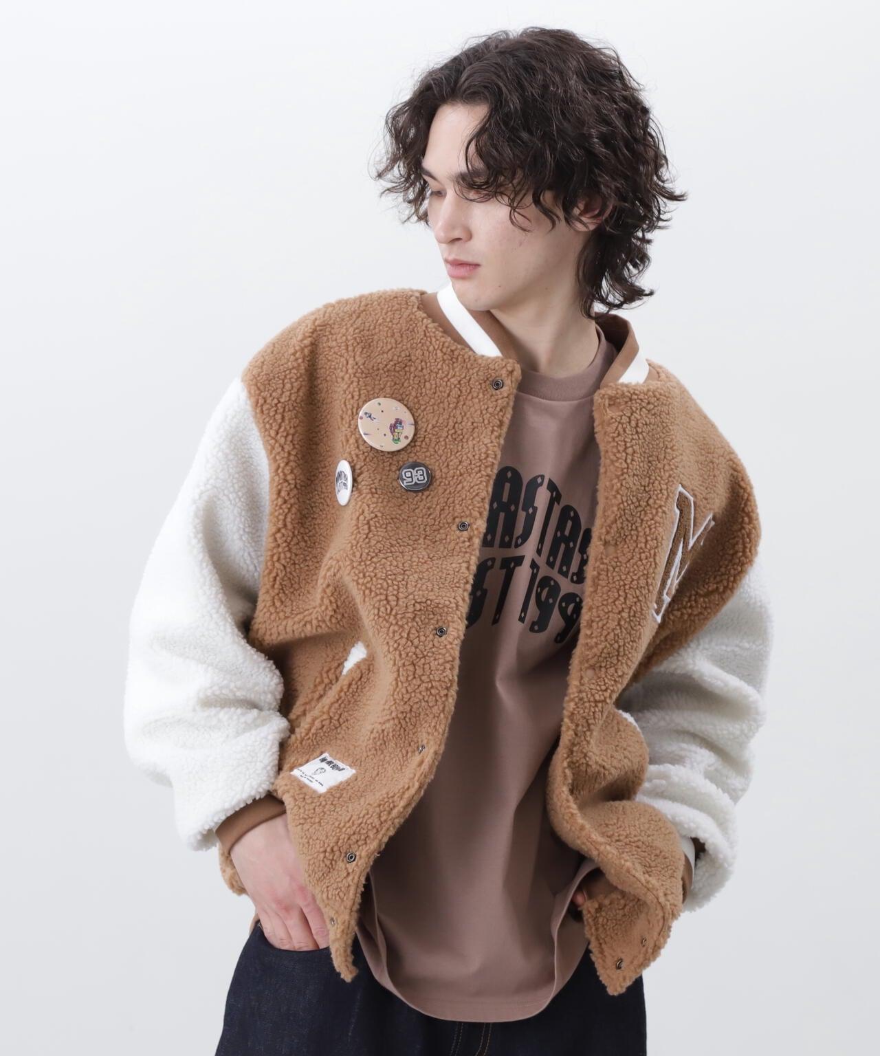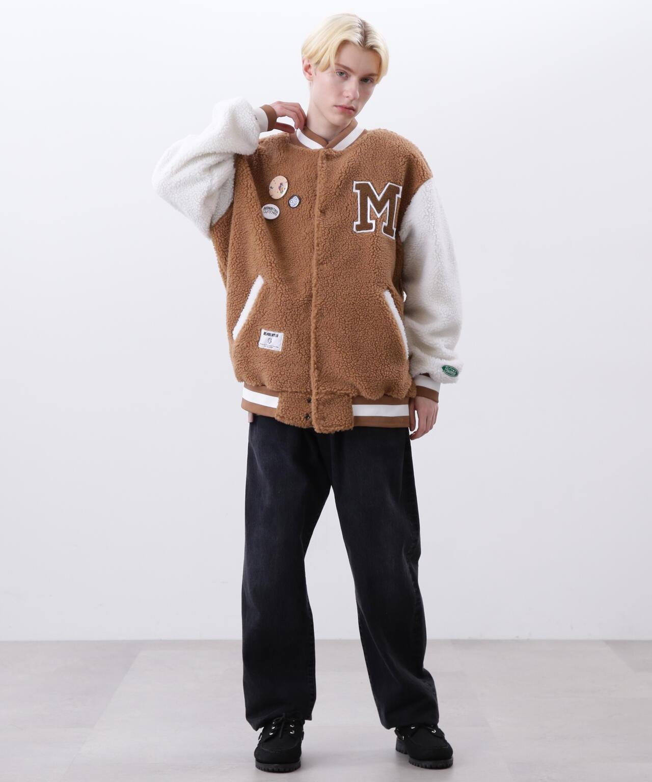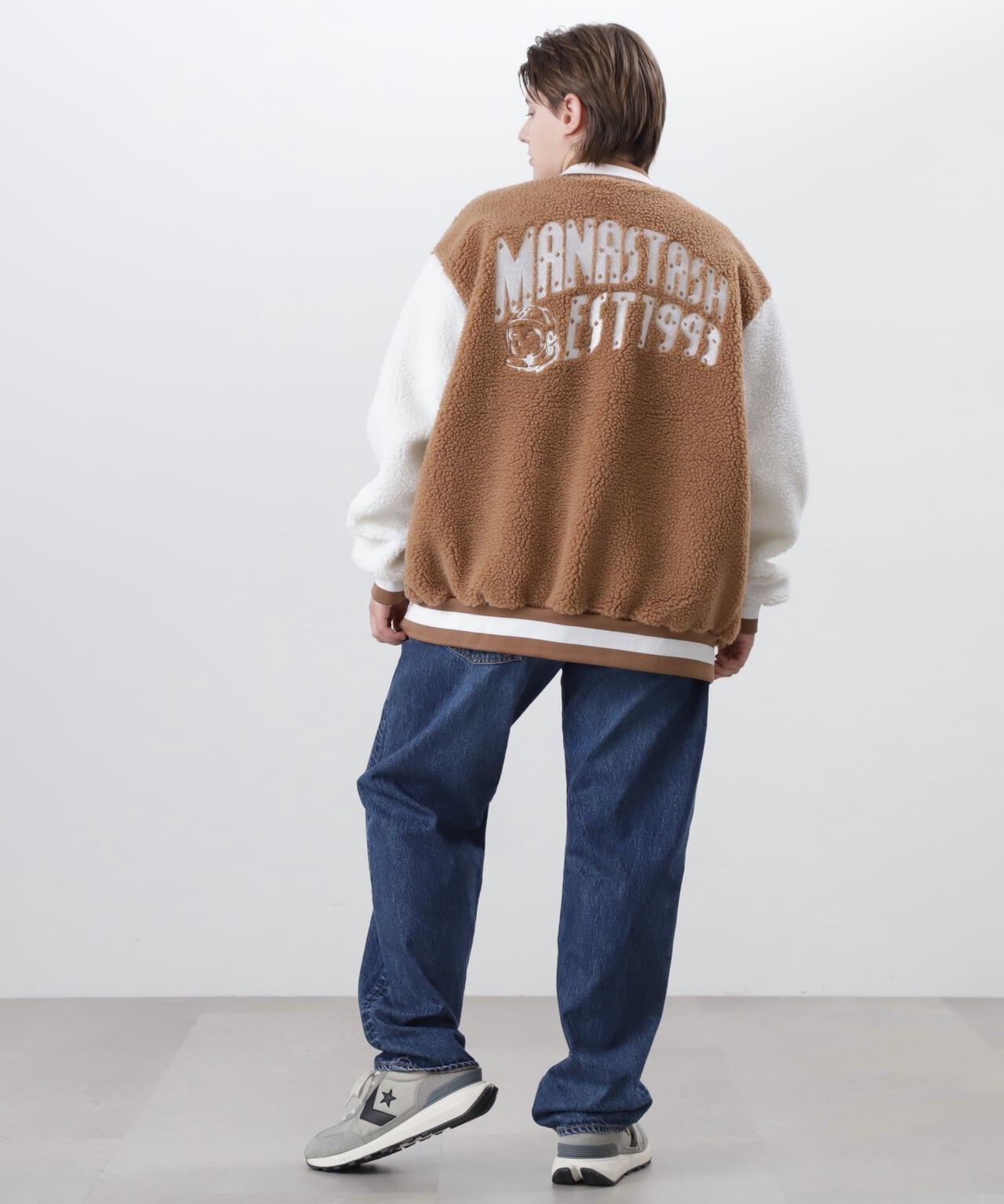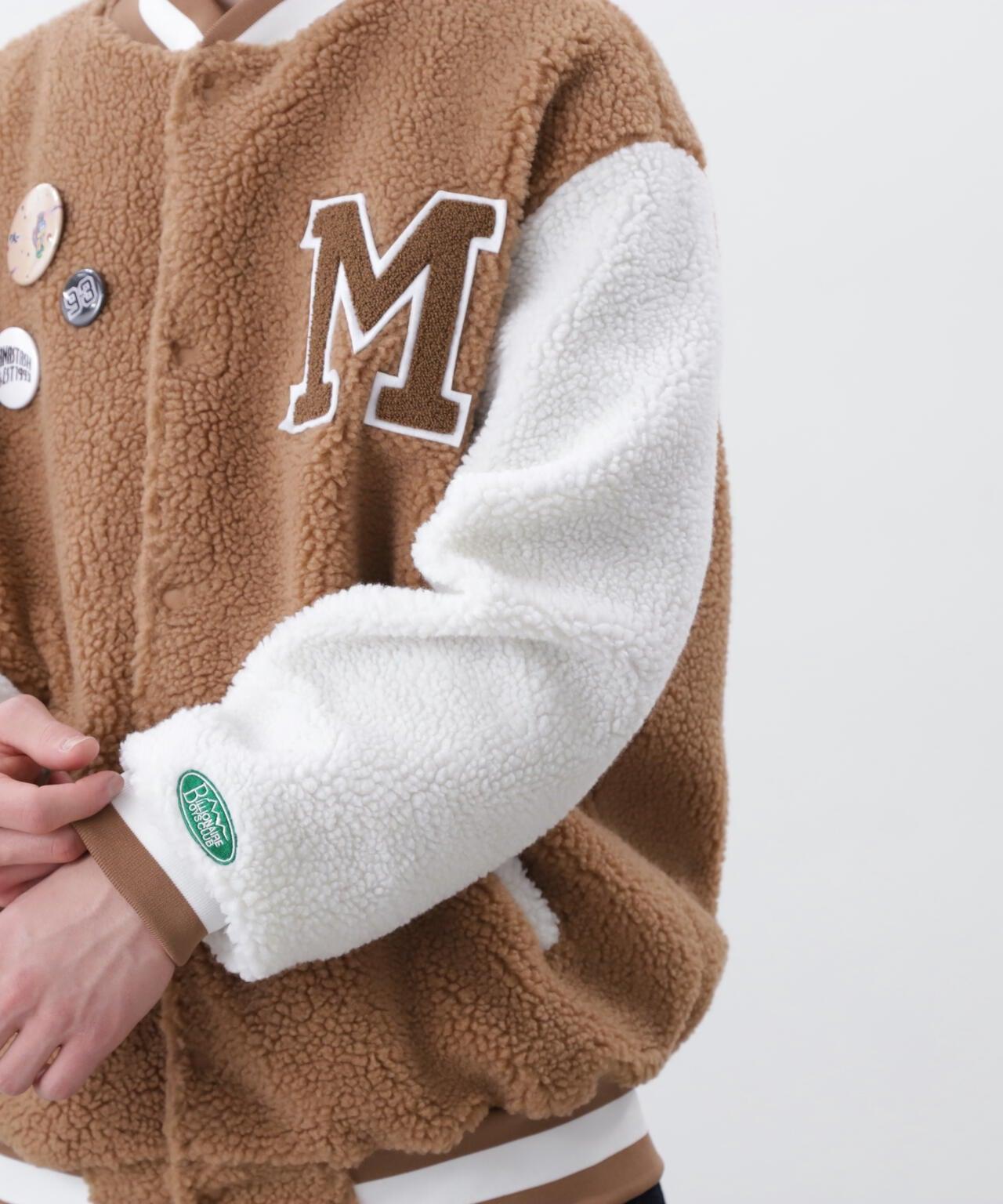 ×The VARSITY JACKET WITH BADG 是 BBC 標準校服夾克的特別款,採用蟒蛇皮材質。正面的徽章為特殊規格,黑色徽章上有一個 B,米色徽章上有一個 M。背面是一個從 BBC 的 OG 徽標到 MANASTASH 排列的大徽標,左袖上是一個從 MANASTASH 原始徽標到 BBC 徽標排列的刺繡徽標。此外,還附有四個為此次合作設計的徽章,可以自由拆卸和佩戴、