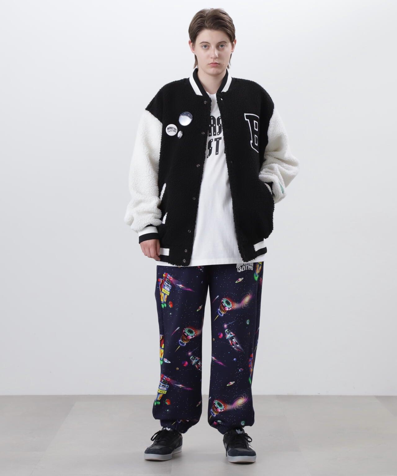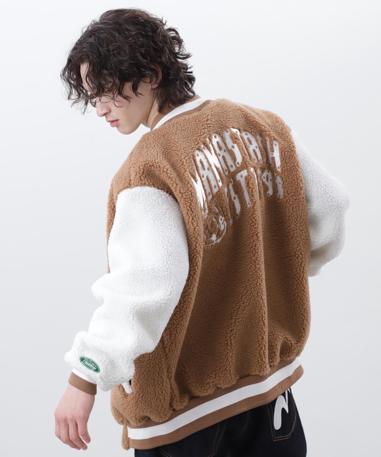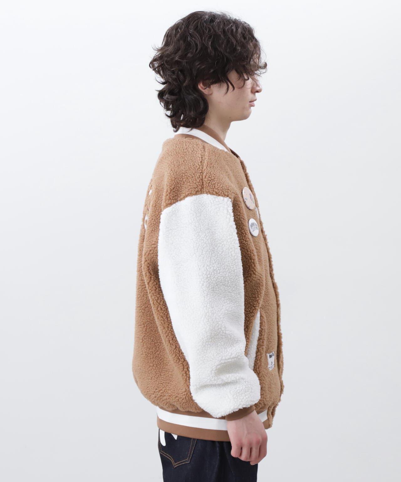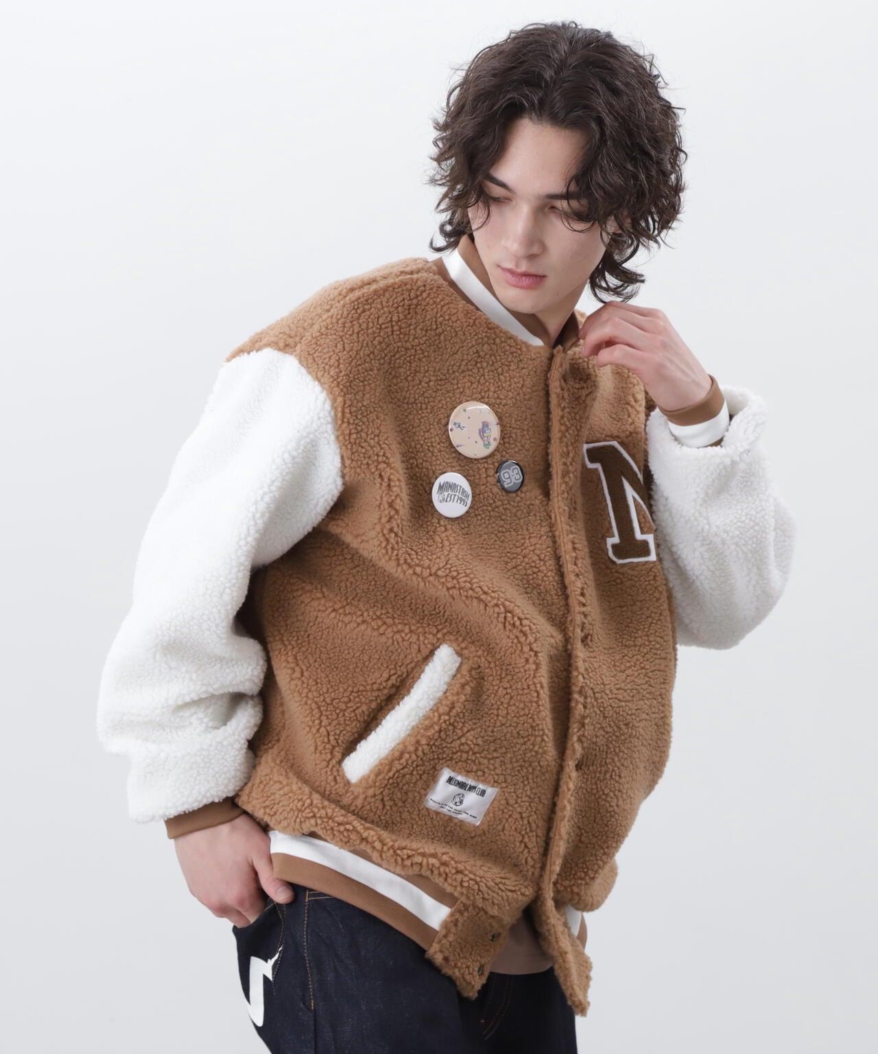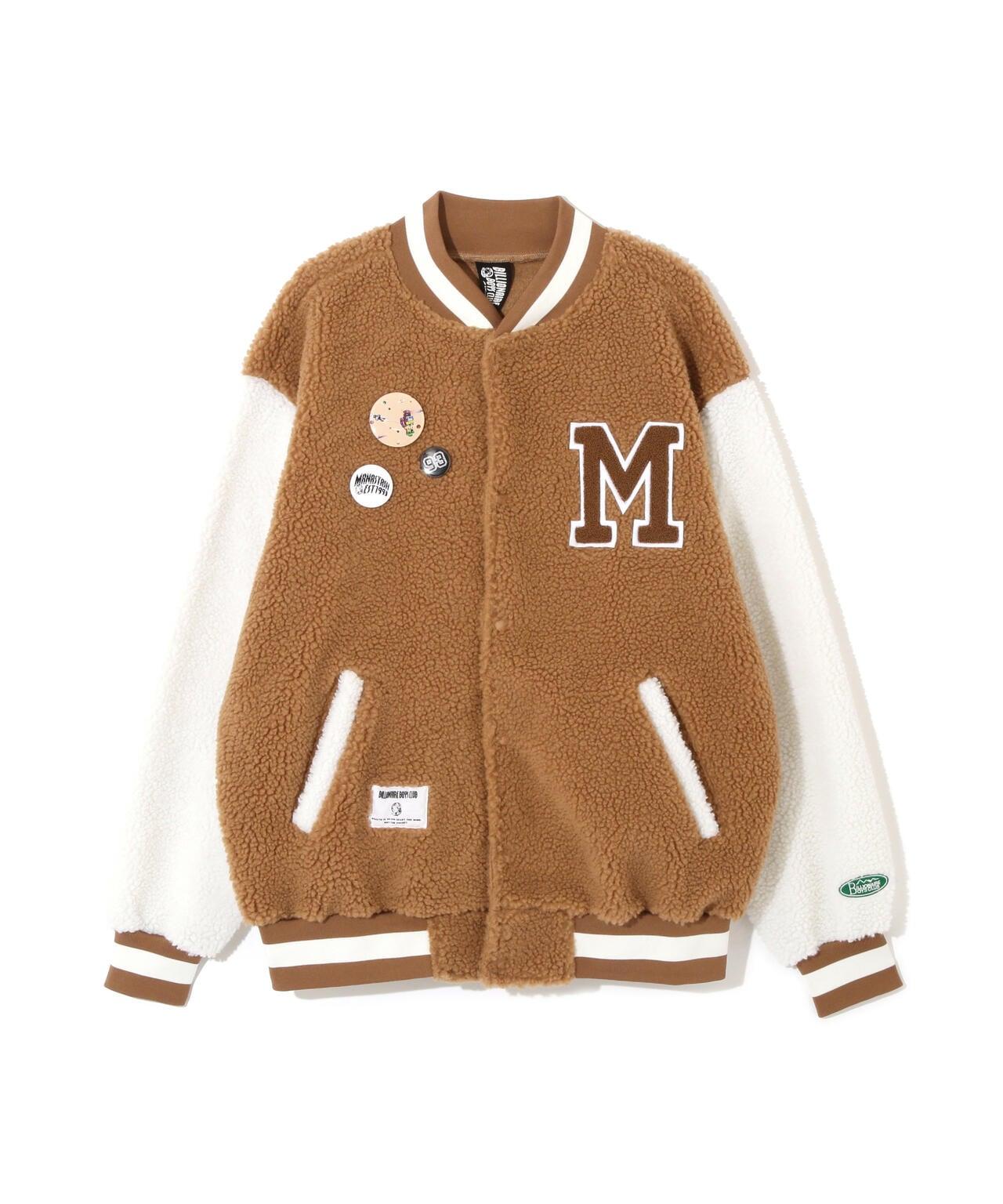 ×The VARSITY JACKET WITH BADG 是 BBC 標準校服夾克的特別款,採用蟒蛇皮材質。正面的徽章為特殊規格,黑色徽章上有一個 B,米色徽章上有一個 M。背面是一個從 BBC 的 OG 徽標到 MANASTASH 排列的大徽標,左袖上是一個從 MANASTASH 原始徽標到 BBC 徽標排列的刺繡徽標。此外,還附有四個為此次合作設計的徽章,可以自由拆卸和佩戴、