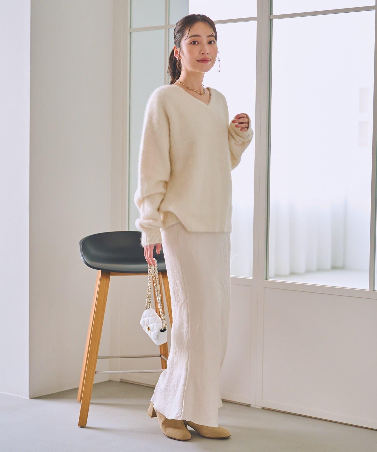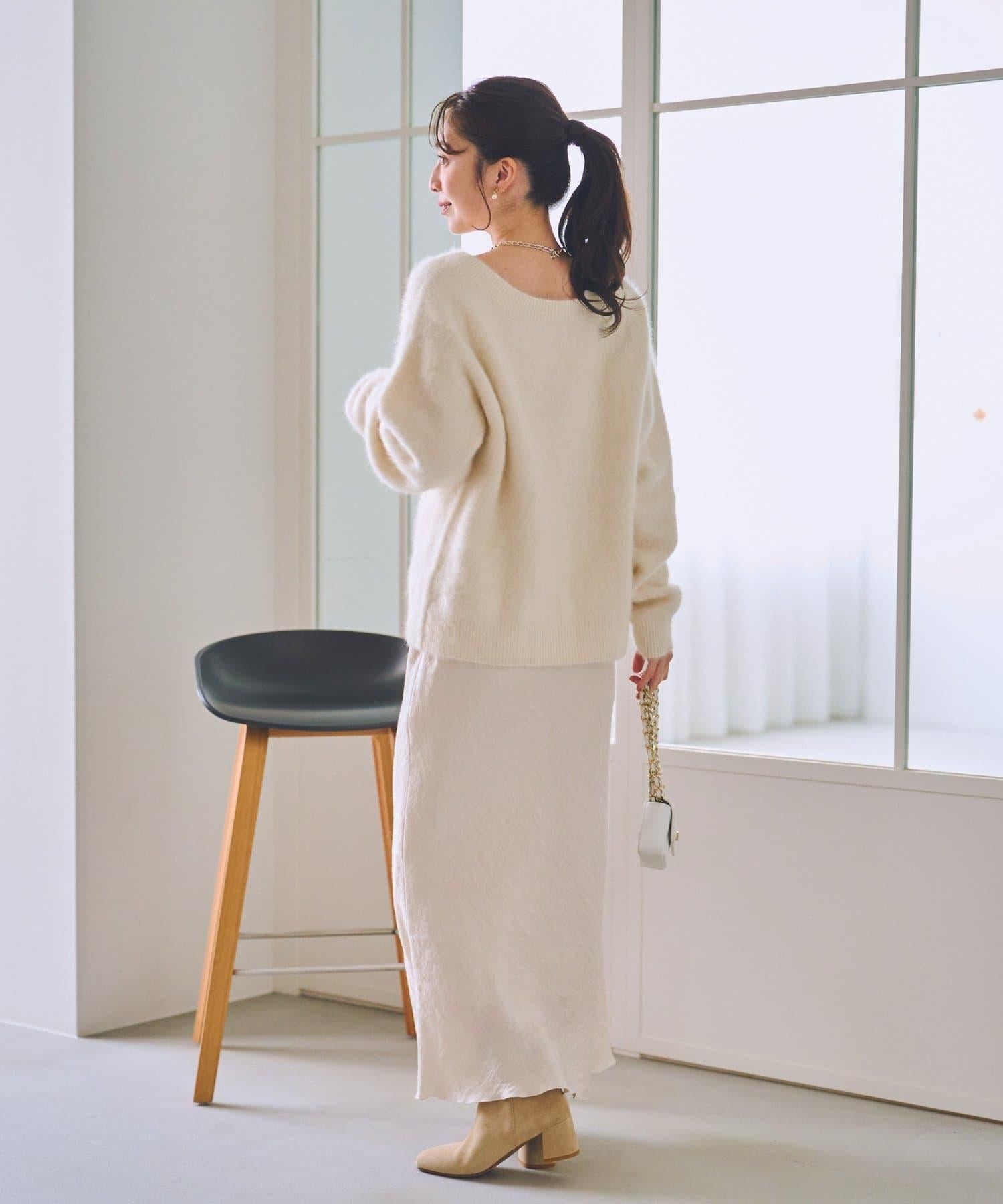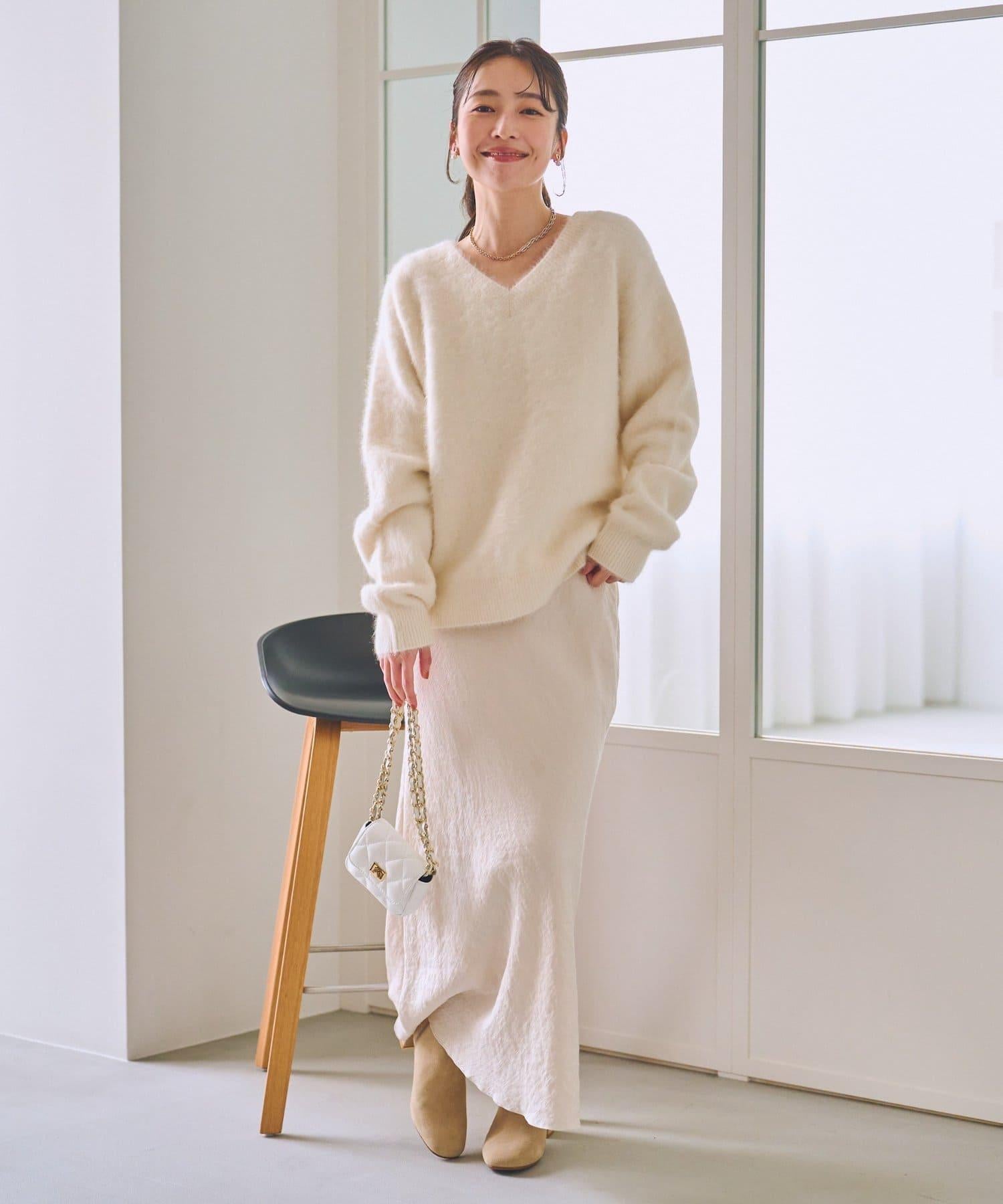 建議與亮面裙裝等具有材質特點的下裝搭配,因為蓬鬆的材質非常顯眼。