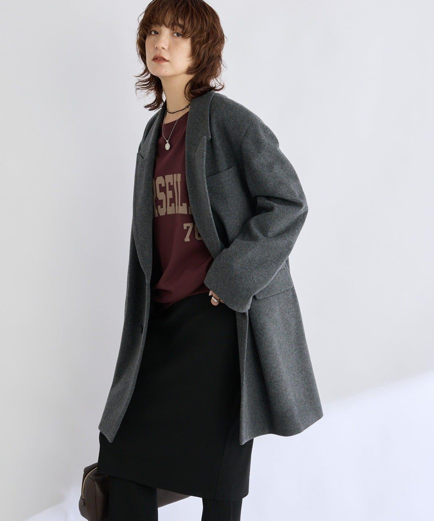 預約商品【優雅幹練】羊毛海狸呢西裝領大衣