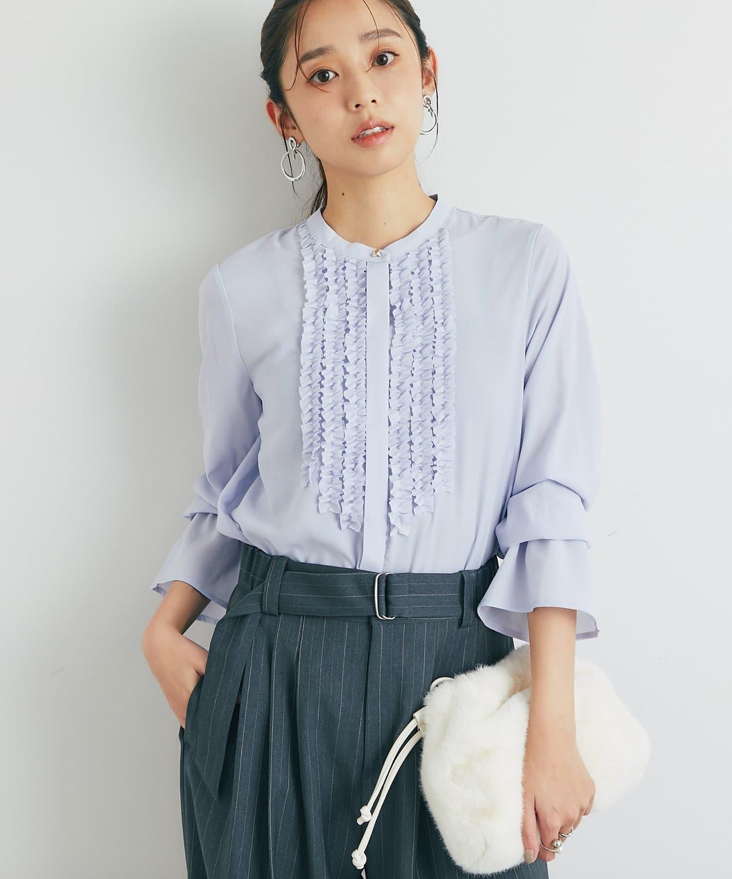 這款上衣有精緻的流蘇,使臉部看起來更加華麗,給人一種優雅的印象,同時又給人一種微妙的個性。