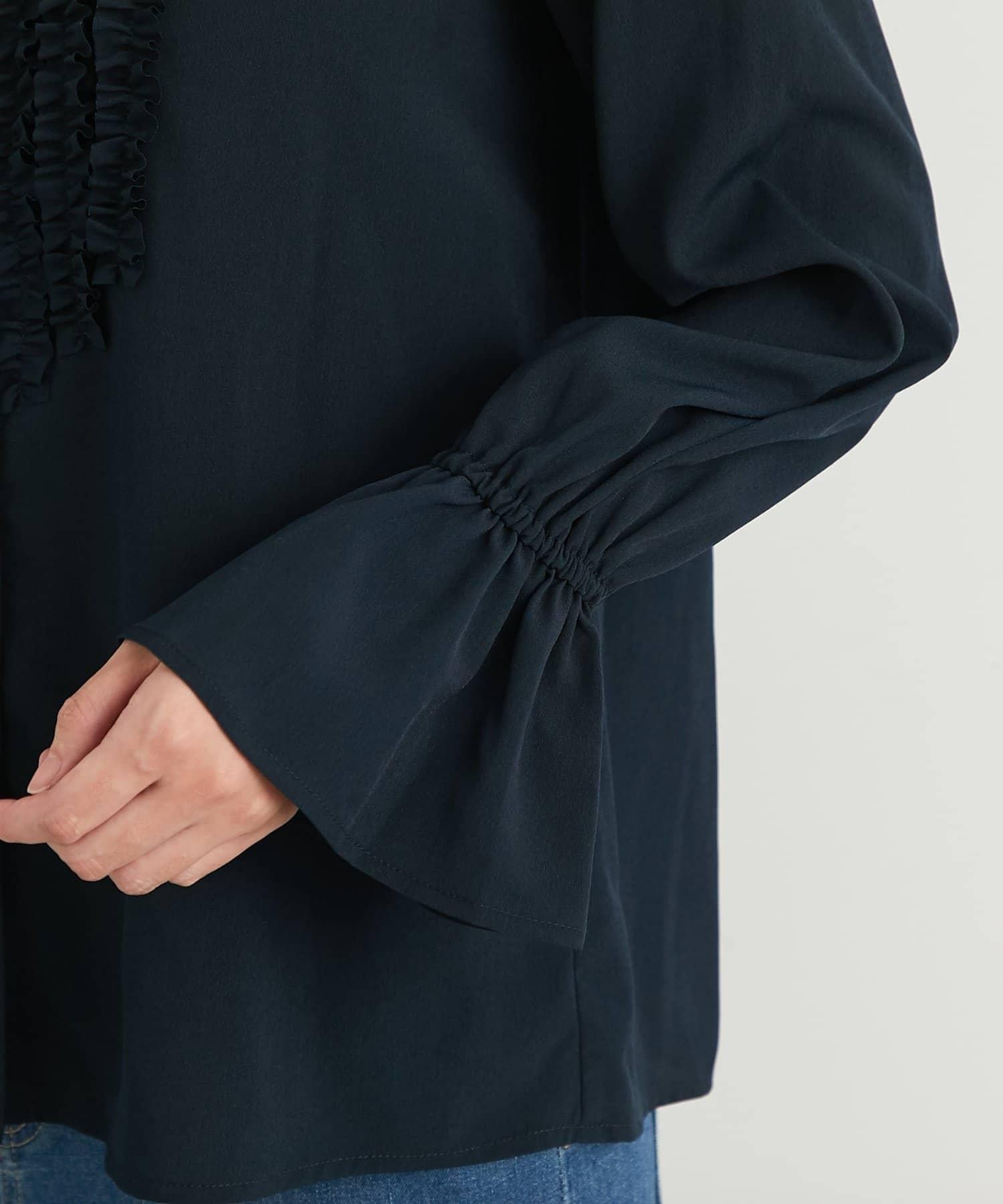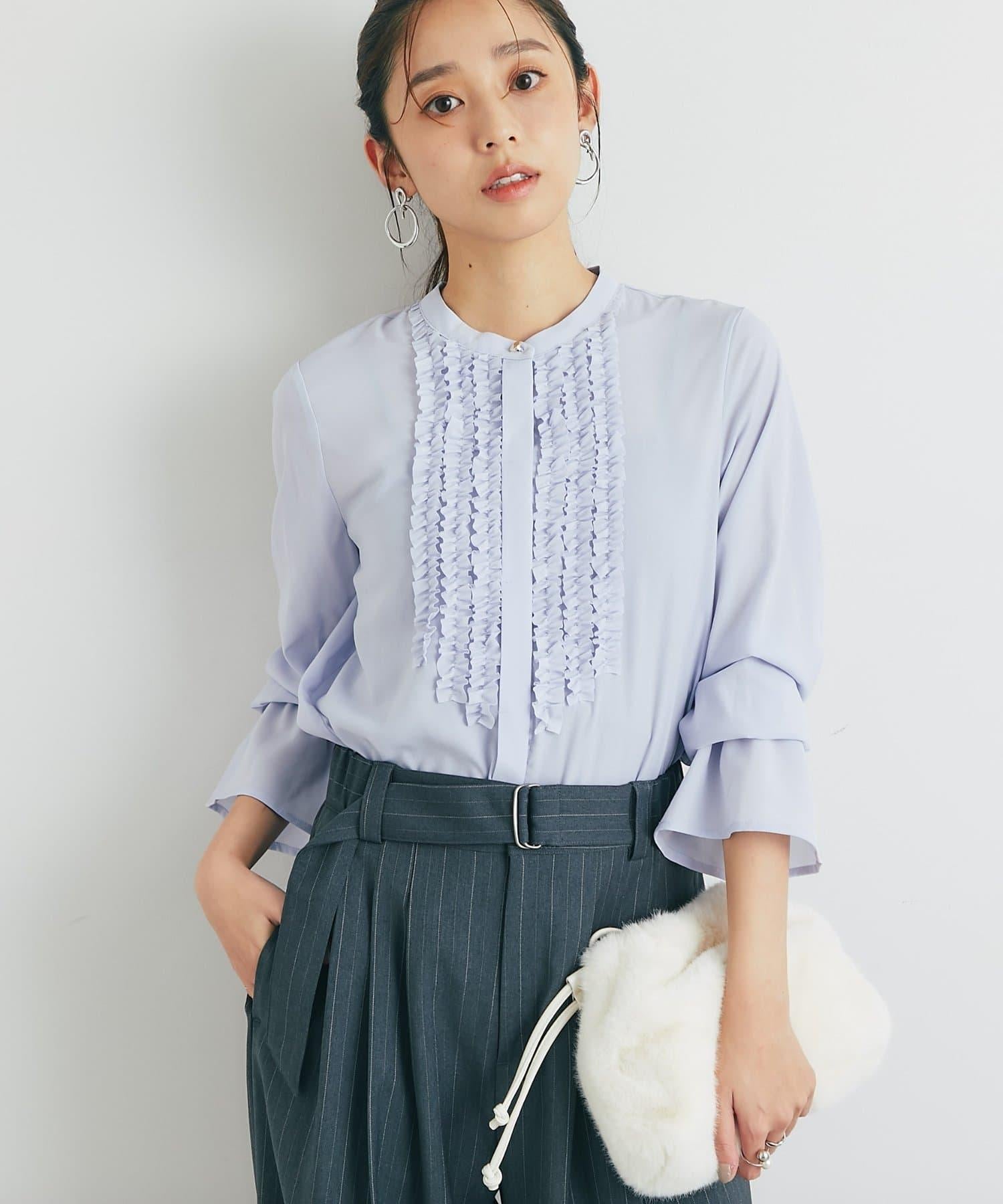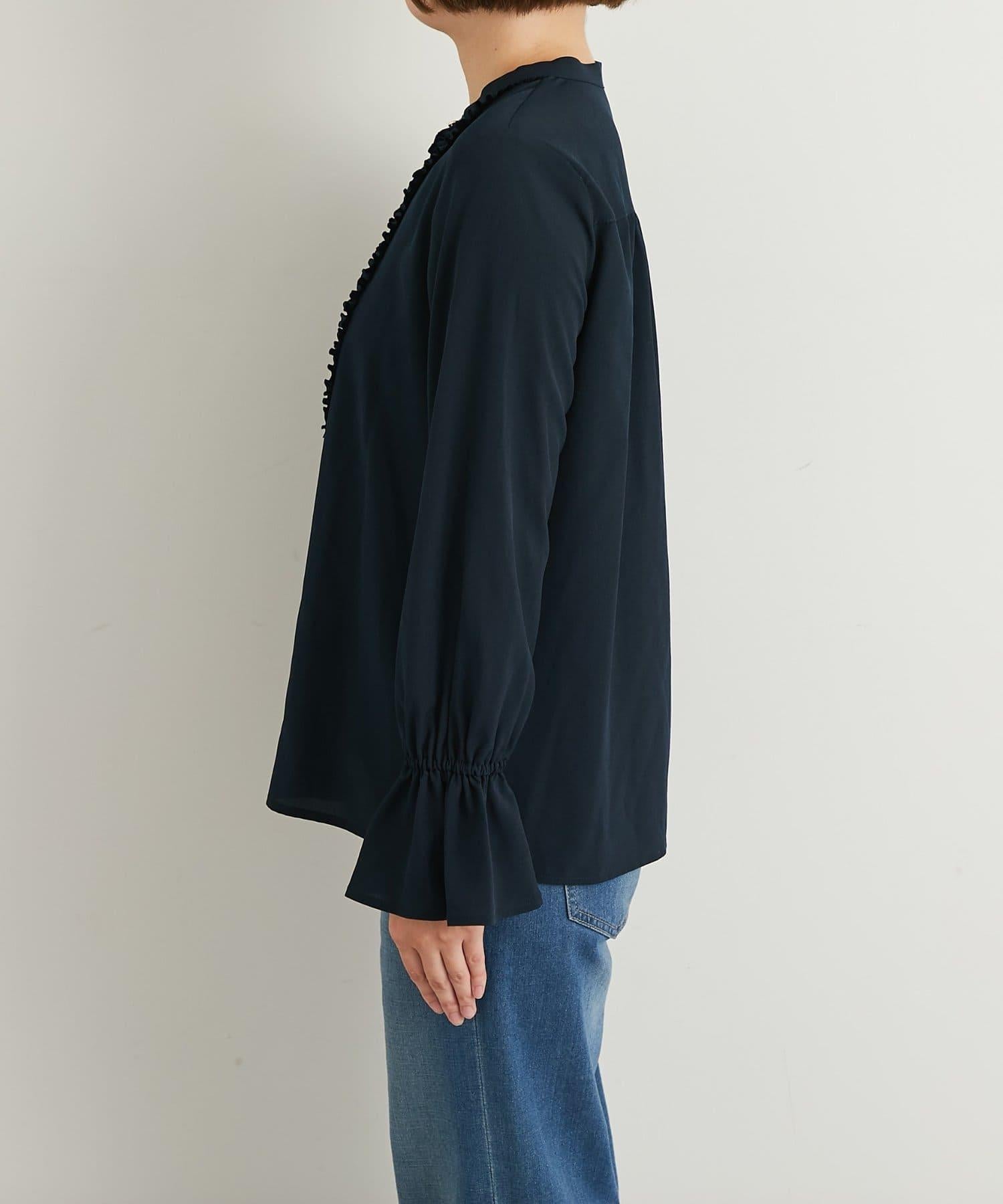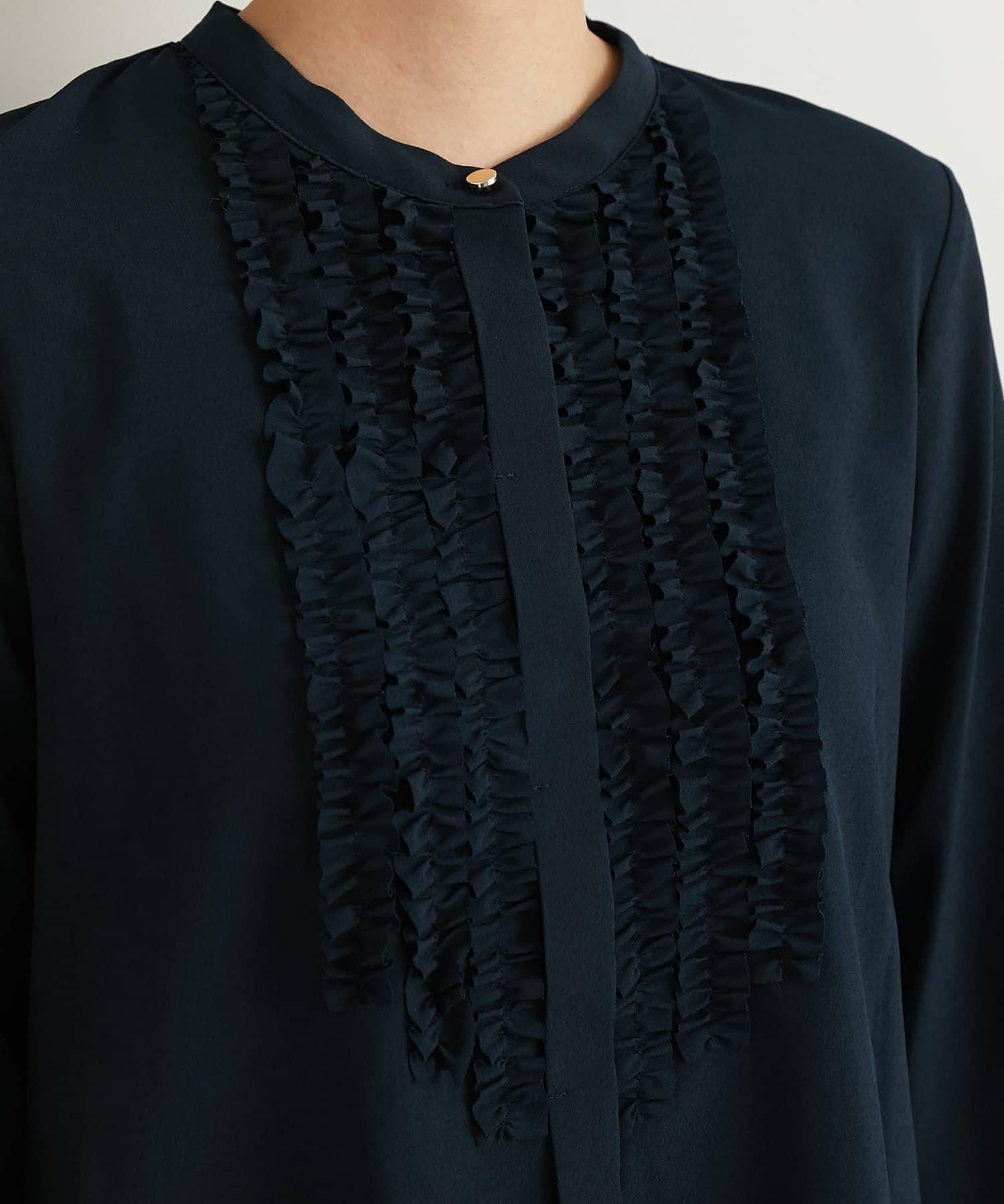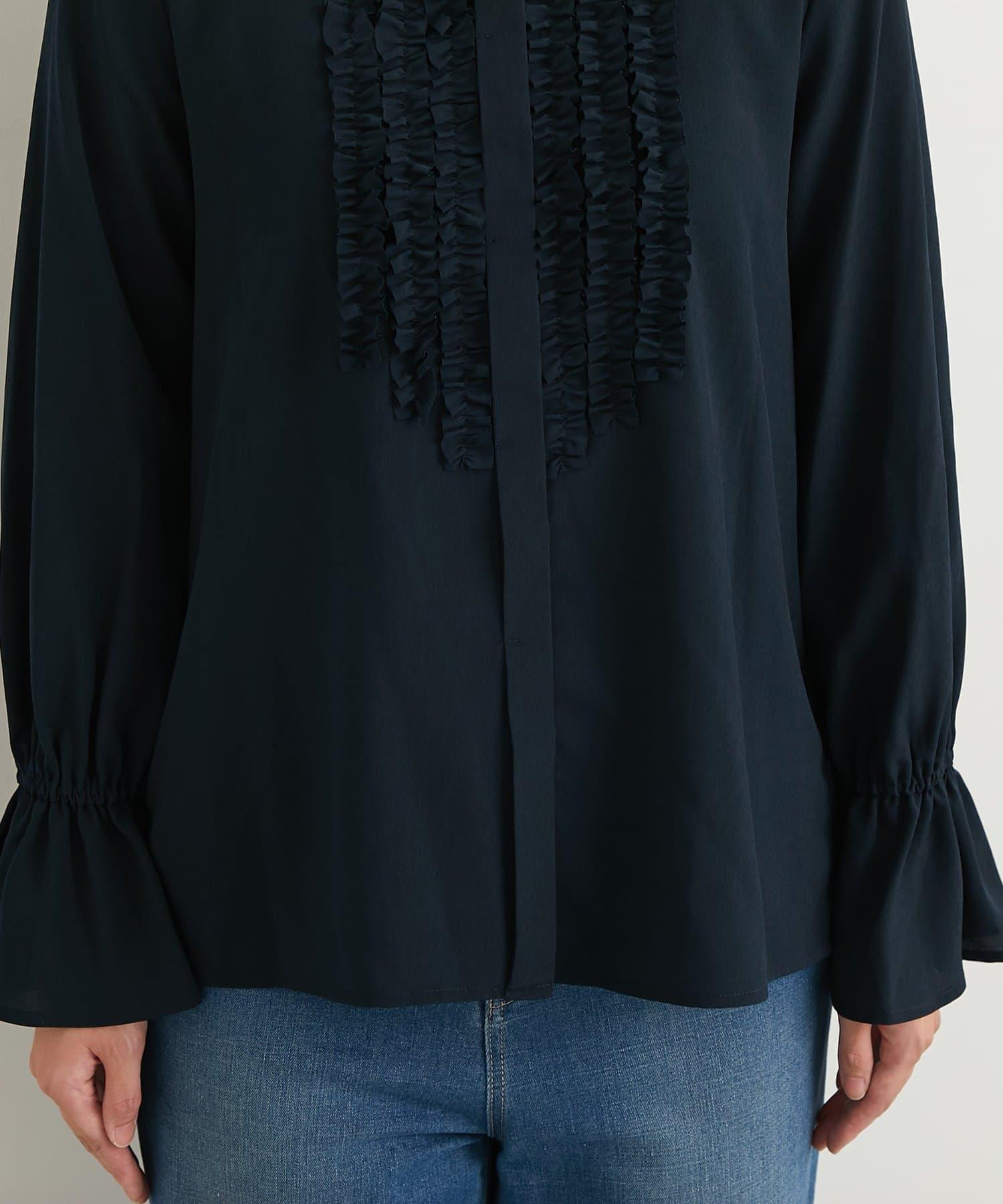 優雅氣質前襟荷葉邊雪紡襯衫