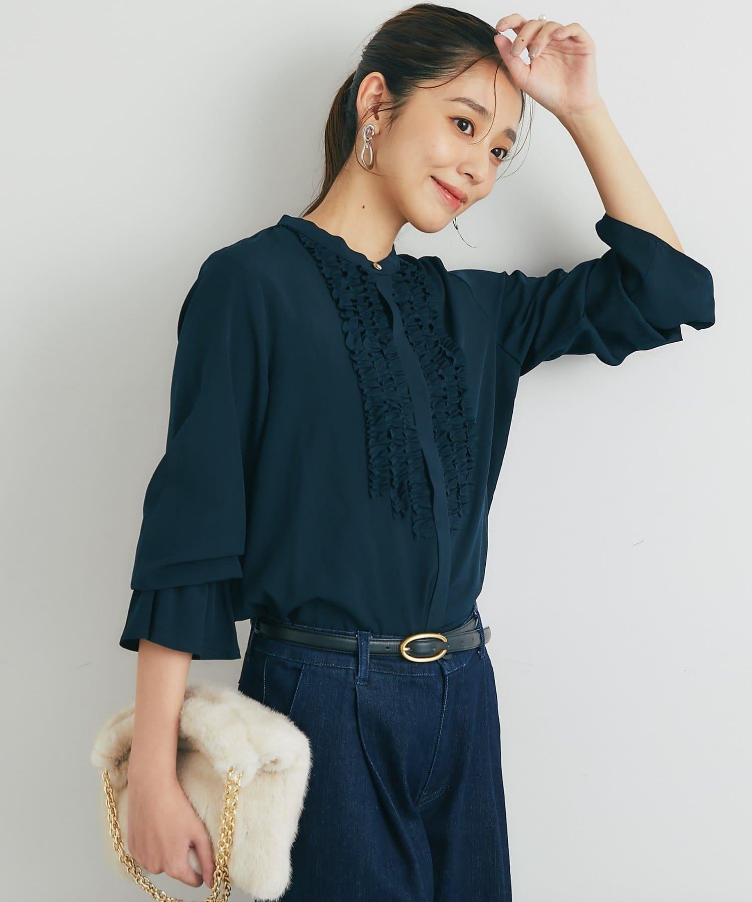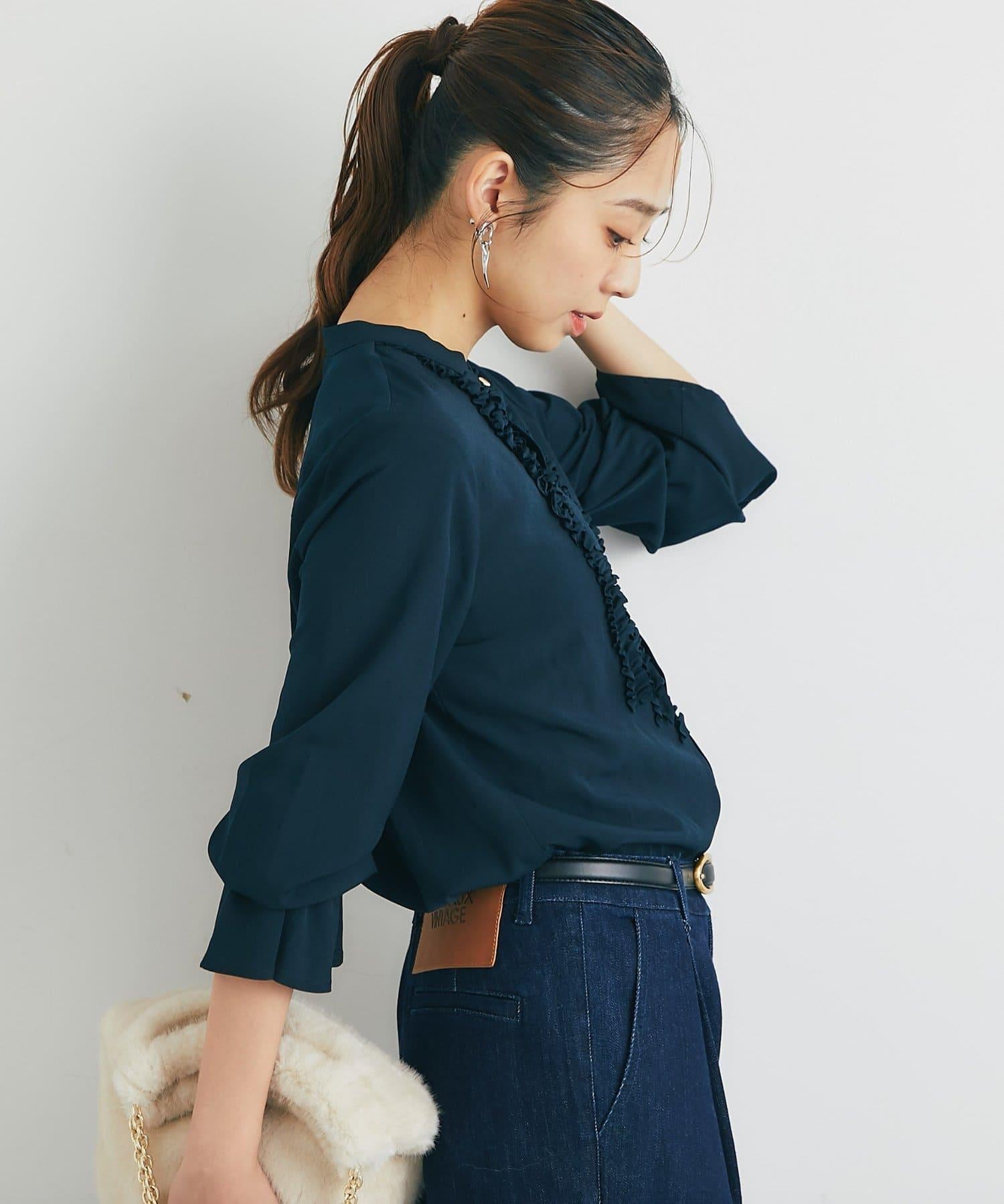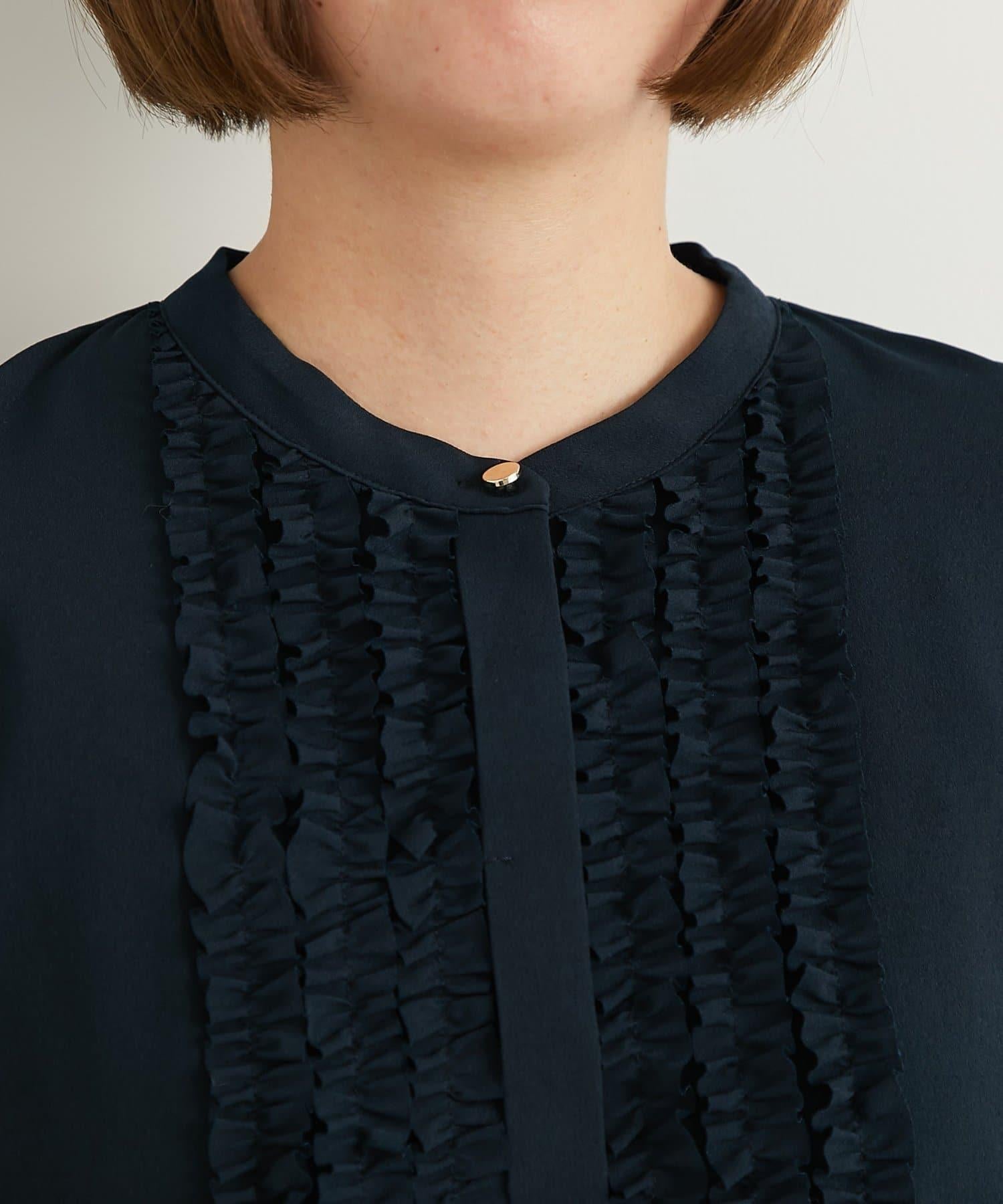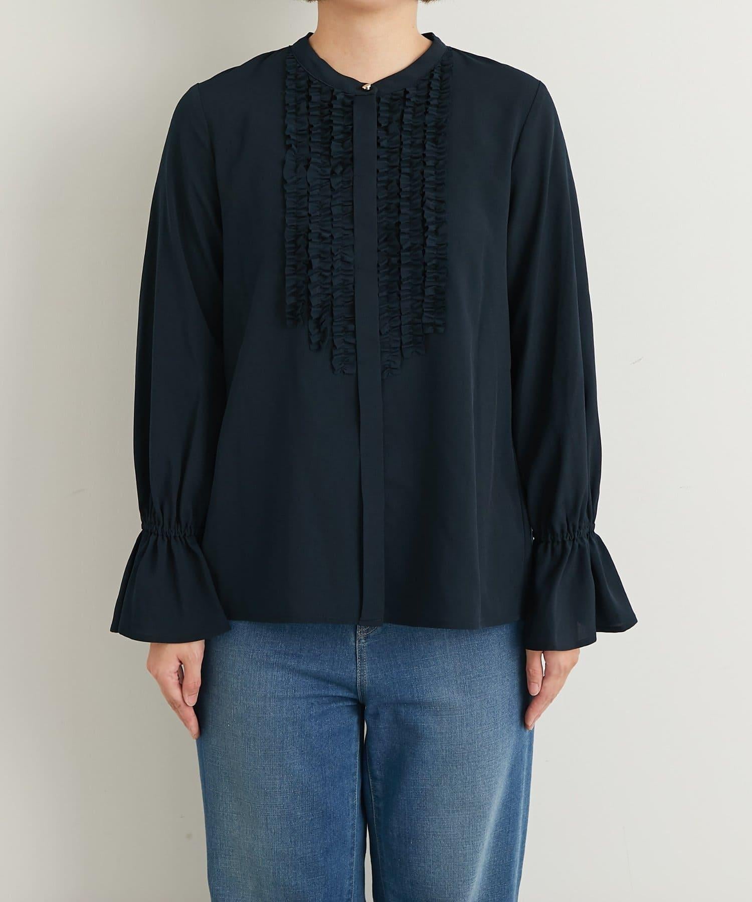 優雅氣質前襟荷葉邊雪紡襯衫
