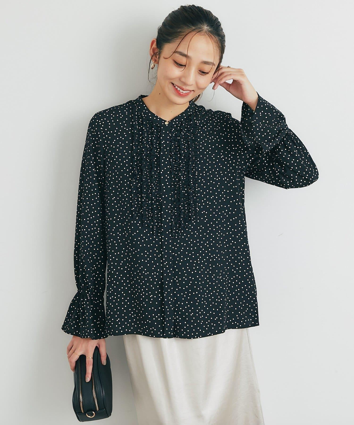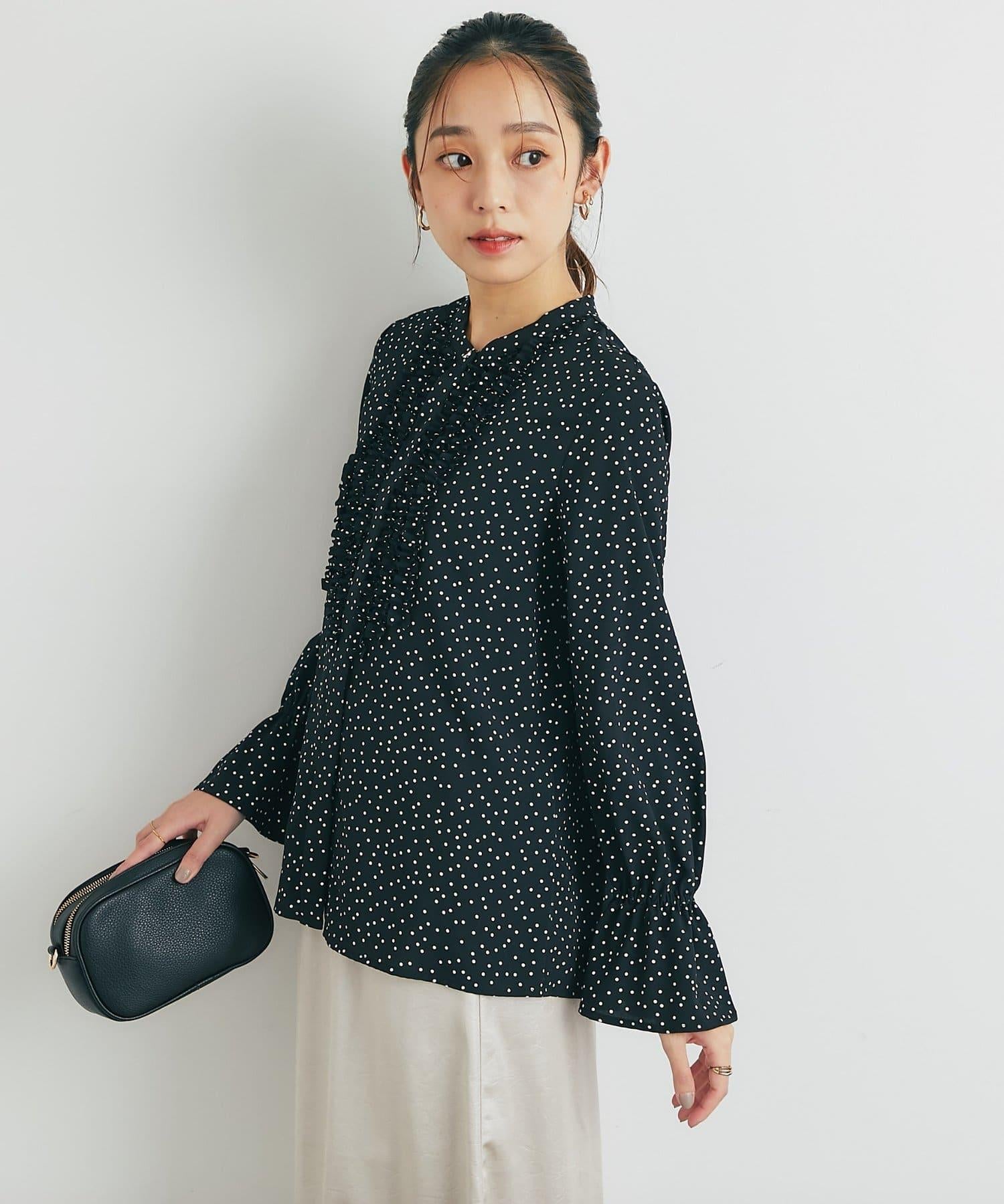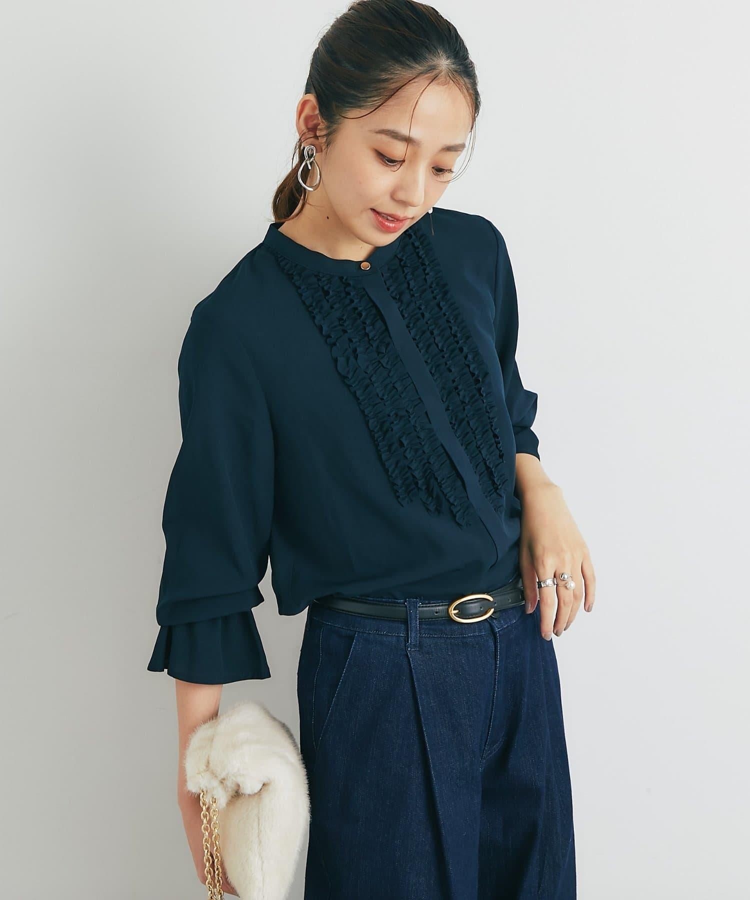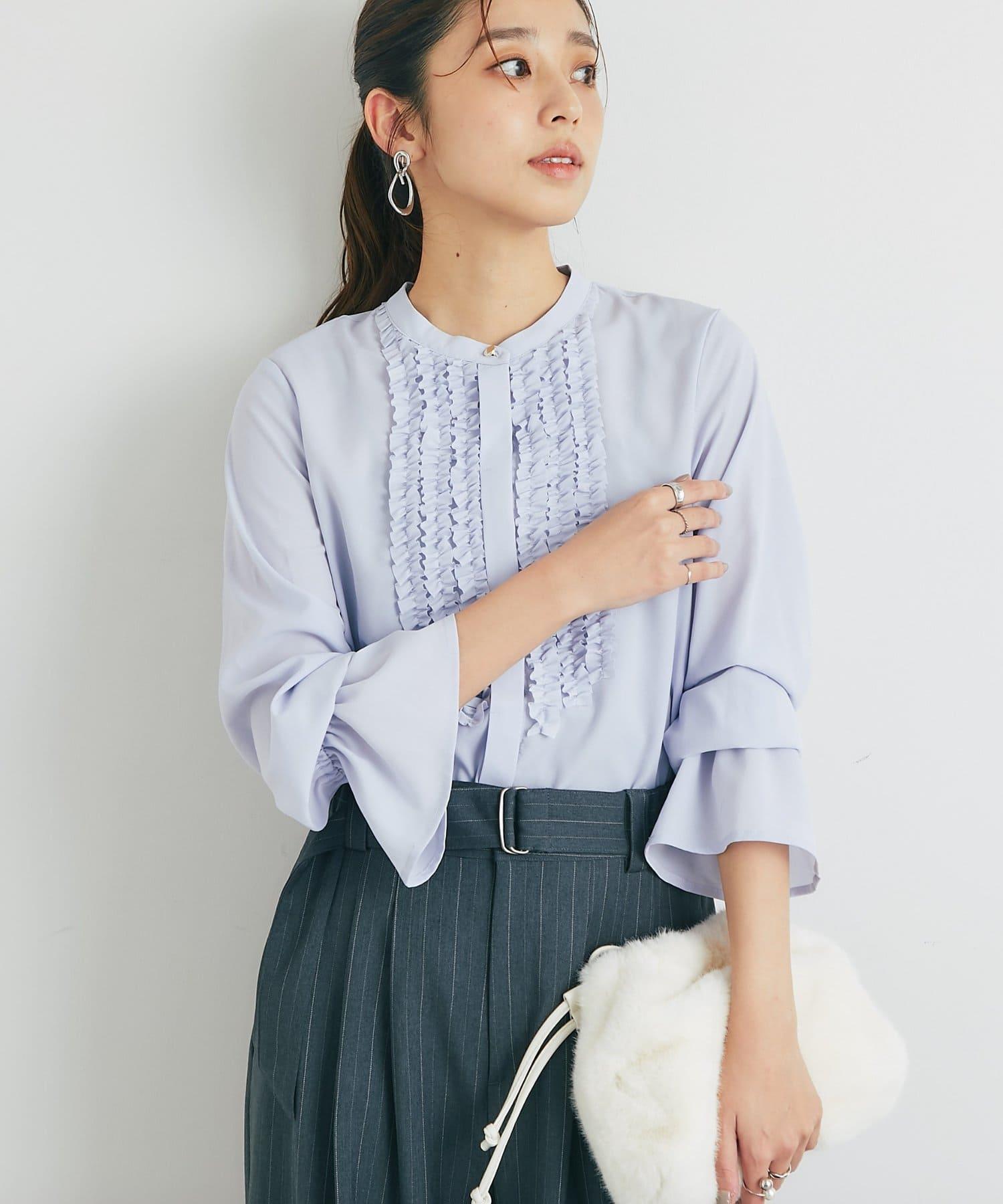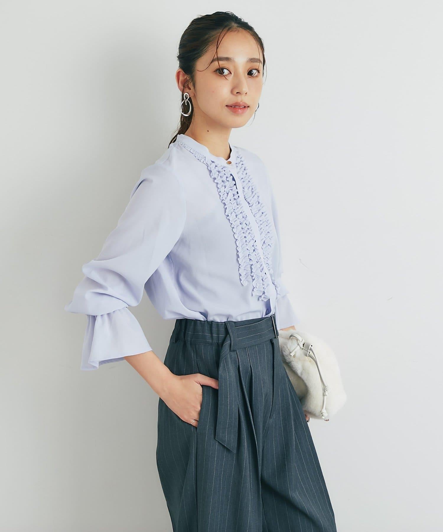 優雅氣質前襟荷葉邊雪紡襯衫