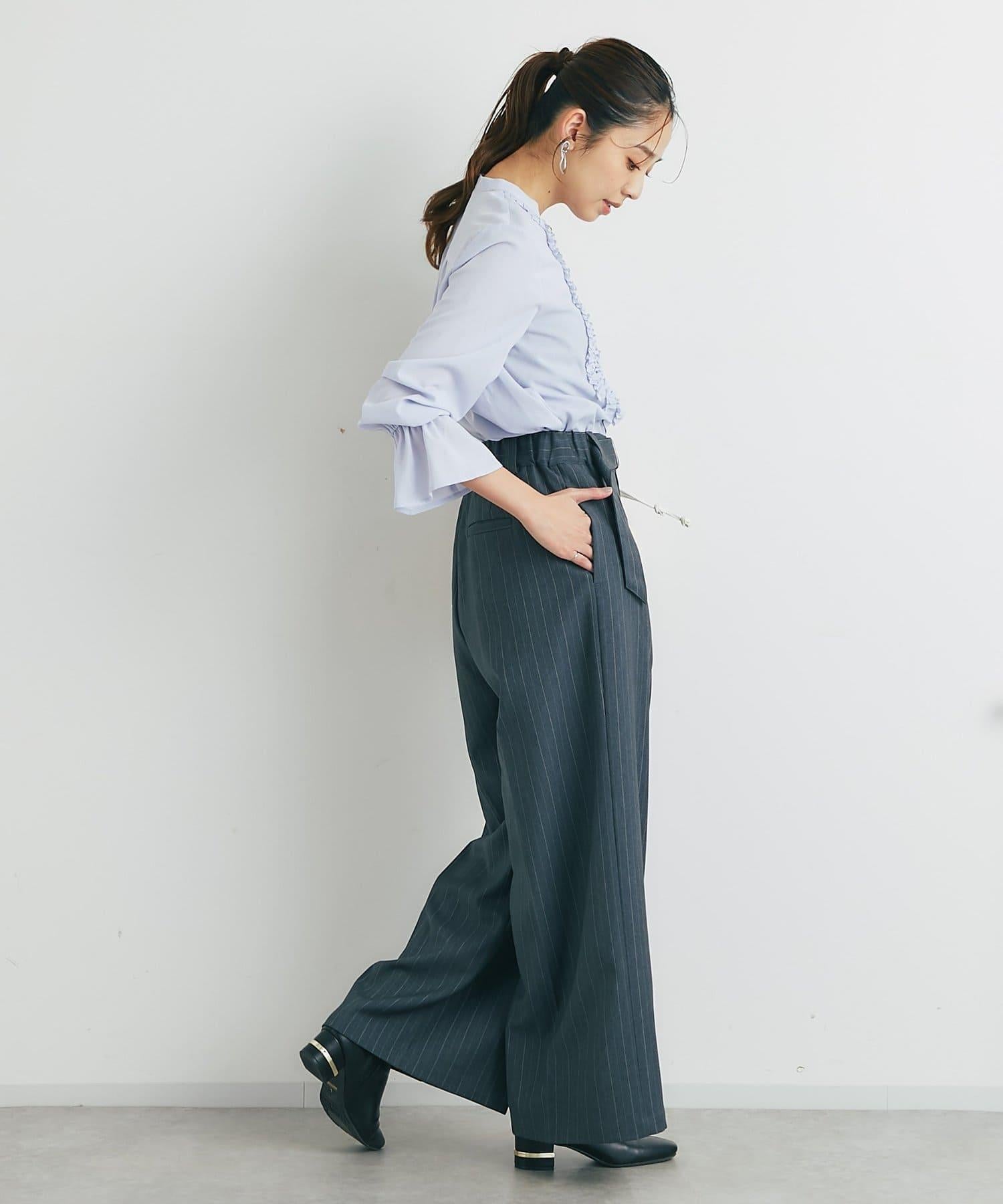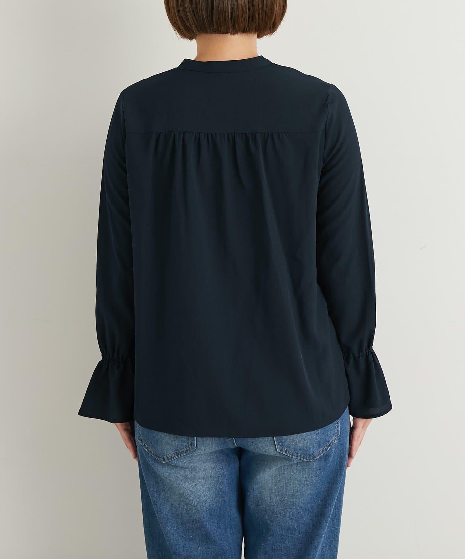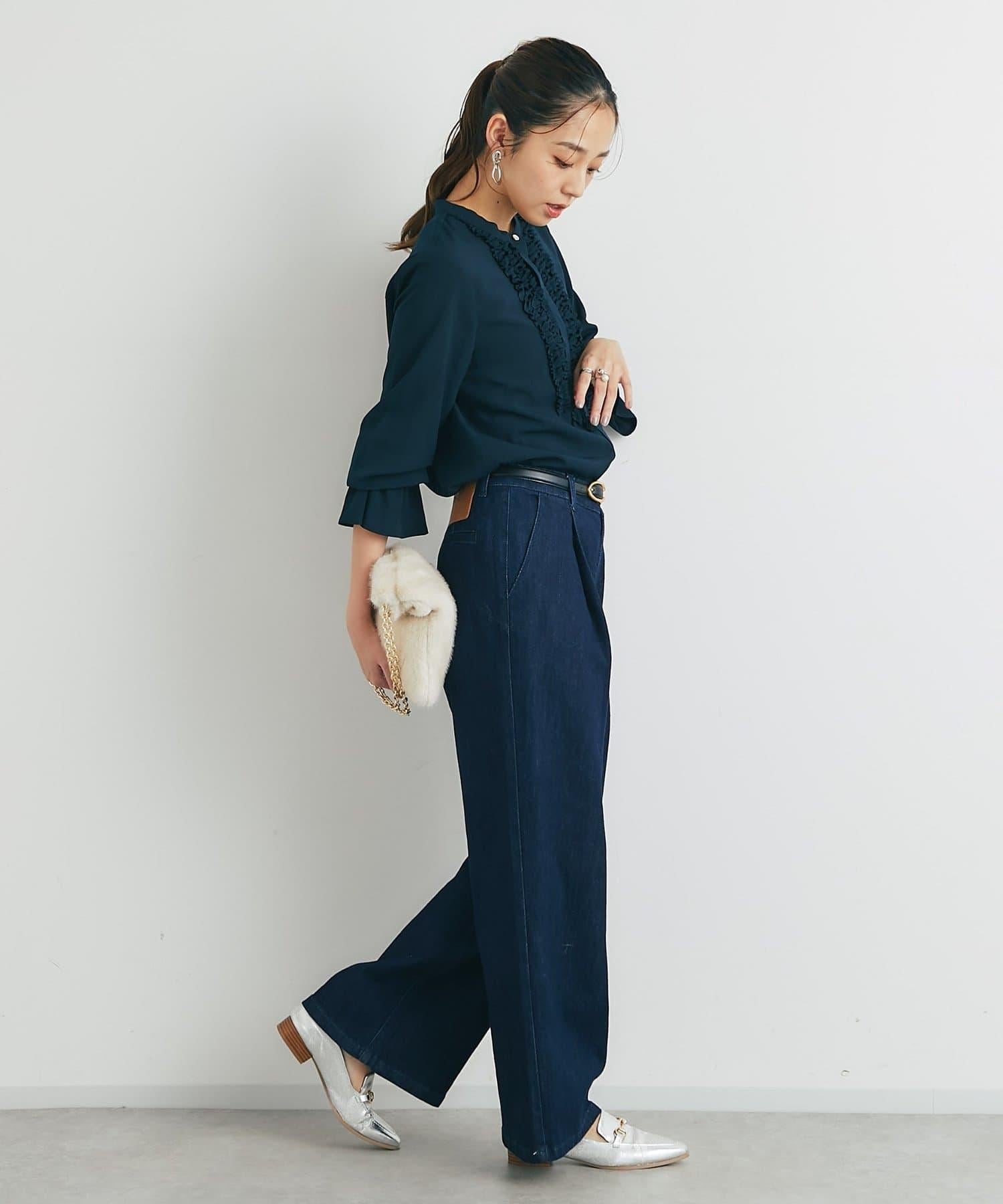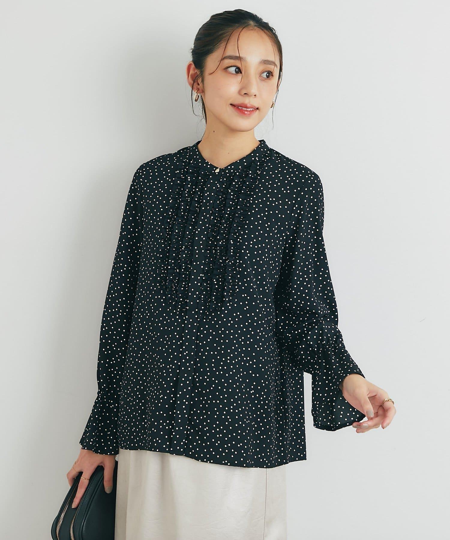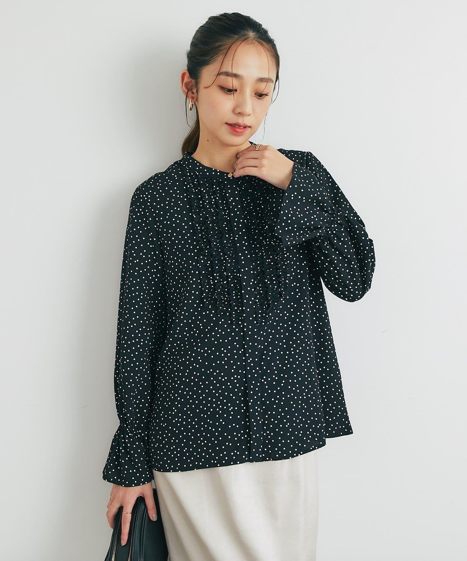 優雅氣質前襟荷葉邊雪紡襯衫