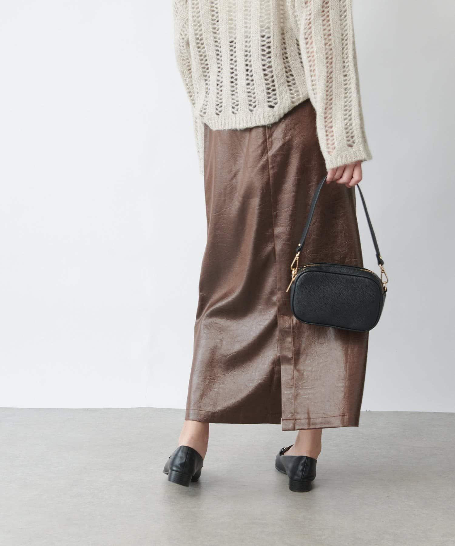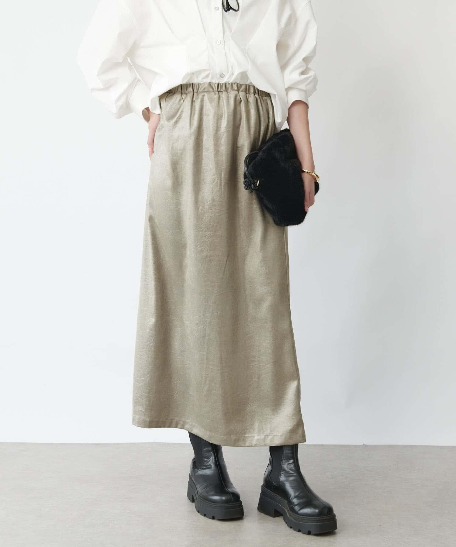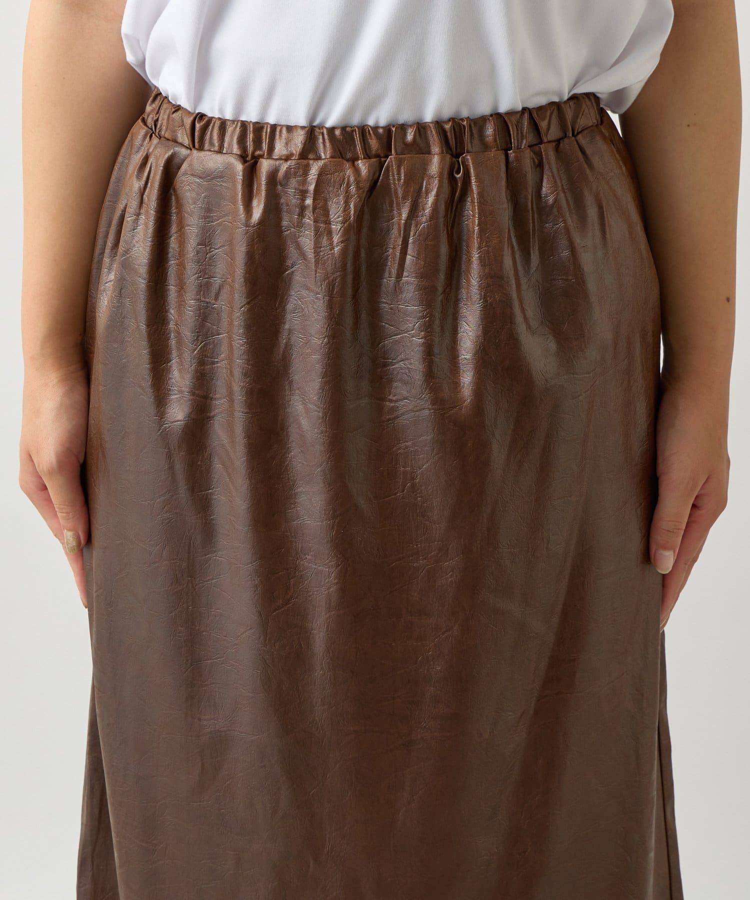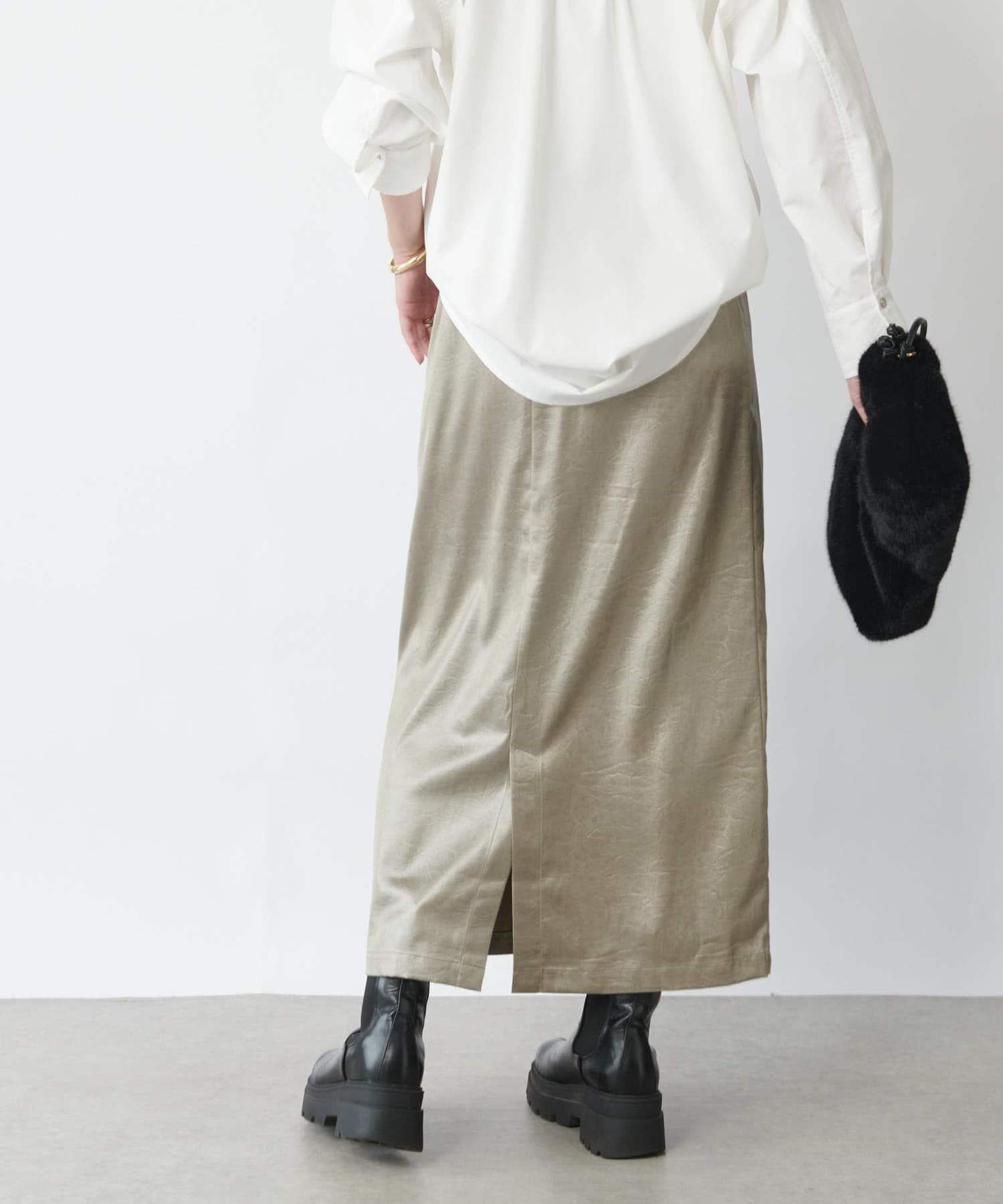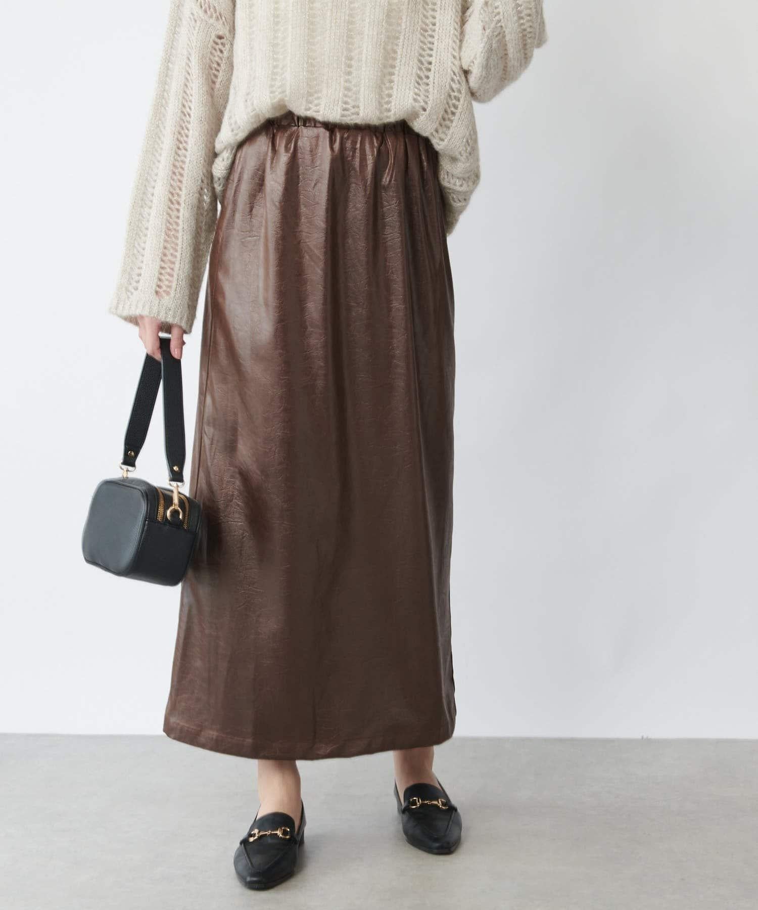 這款窄裙表面光亮如皮革。