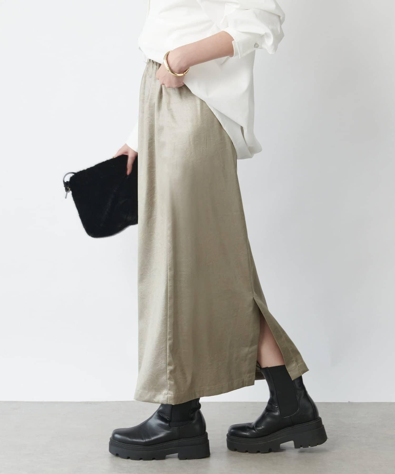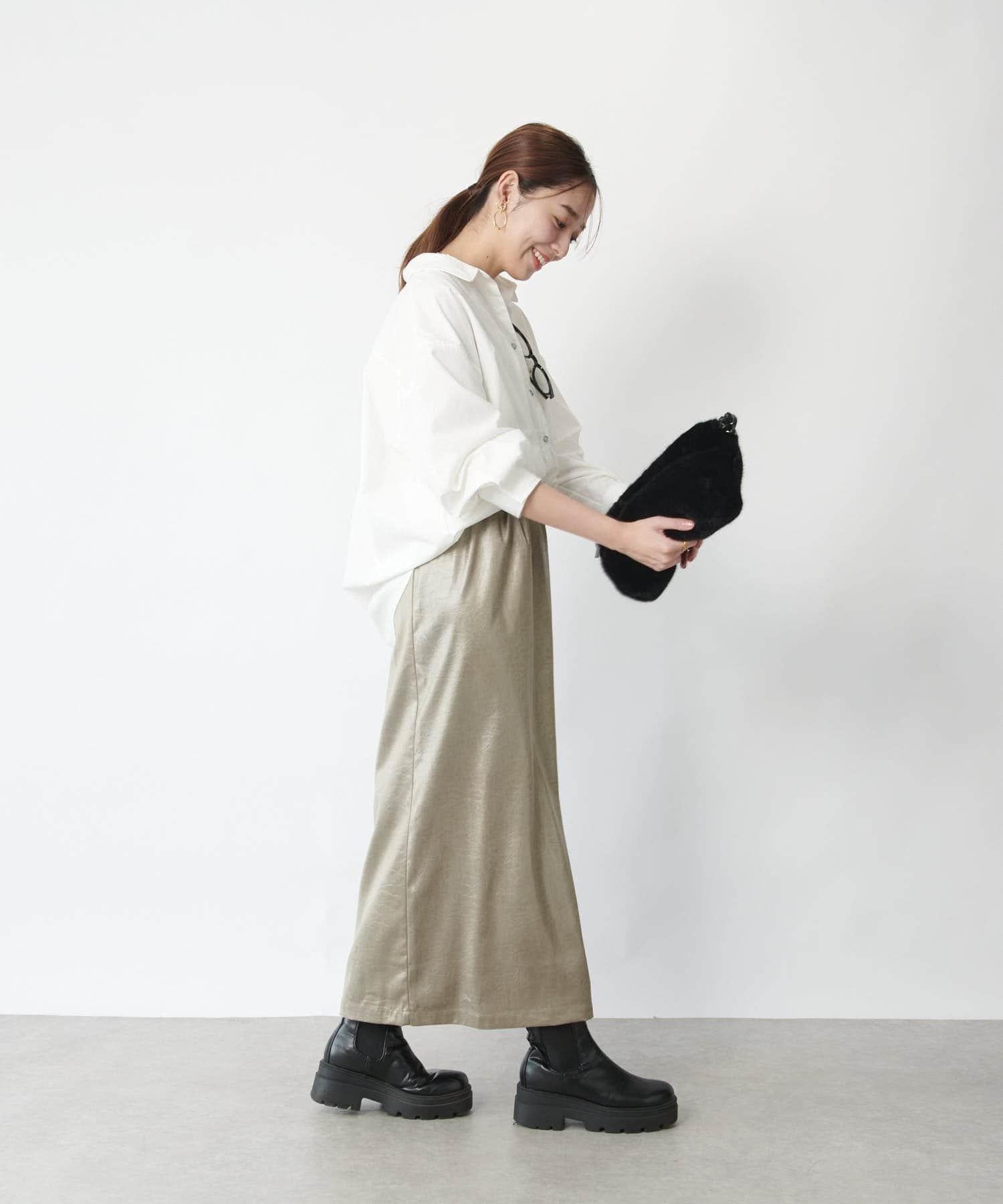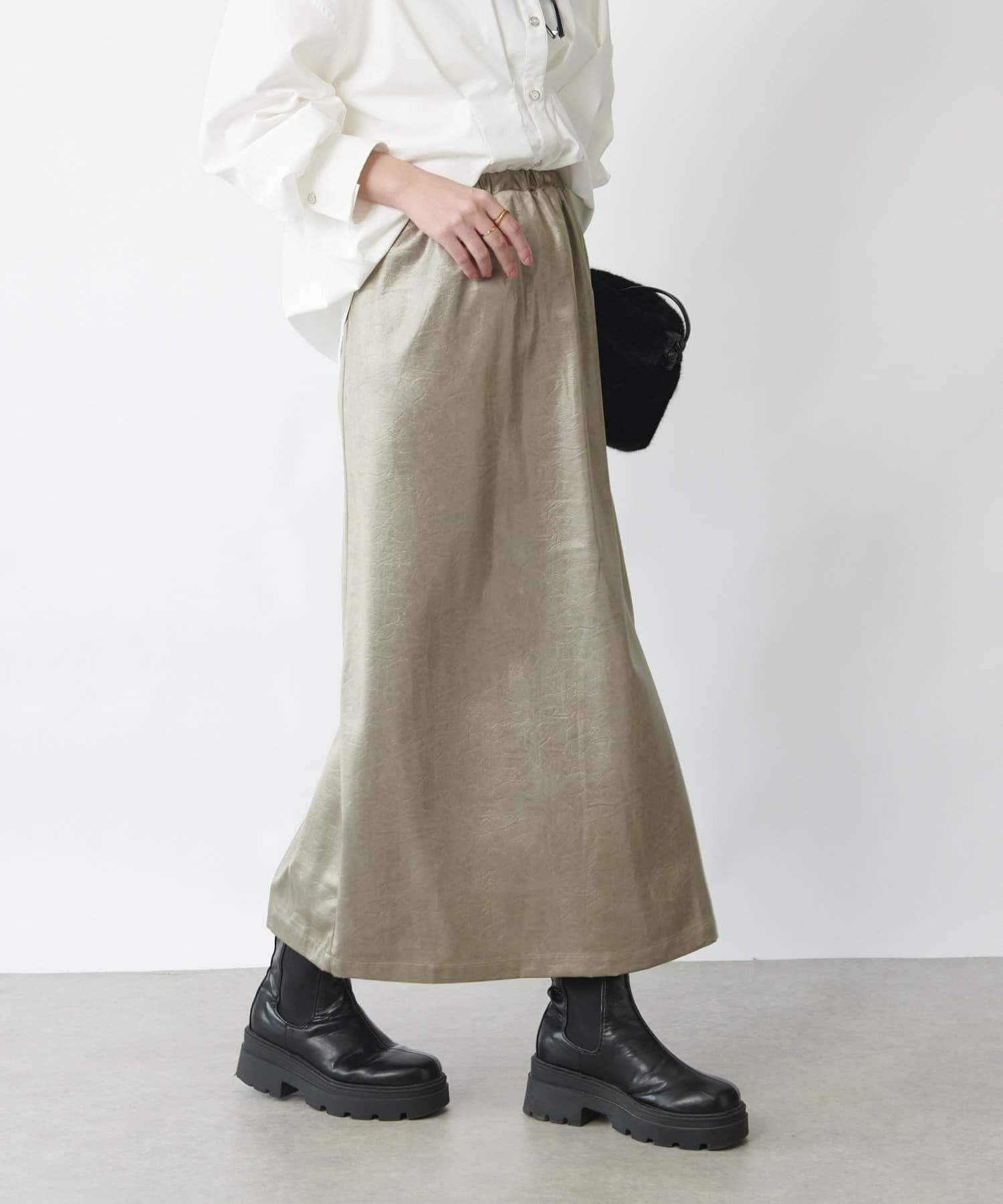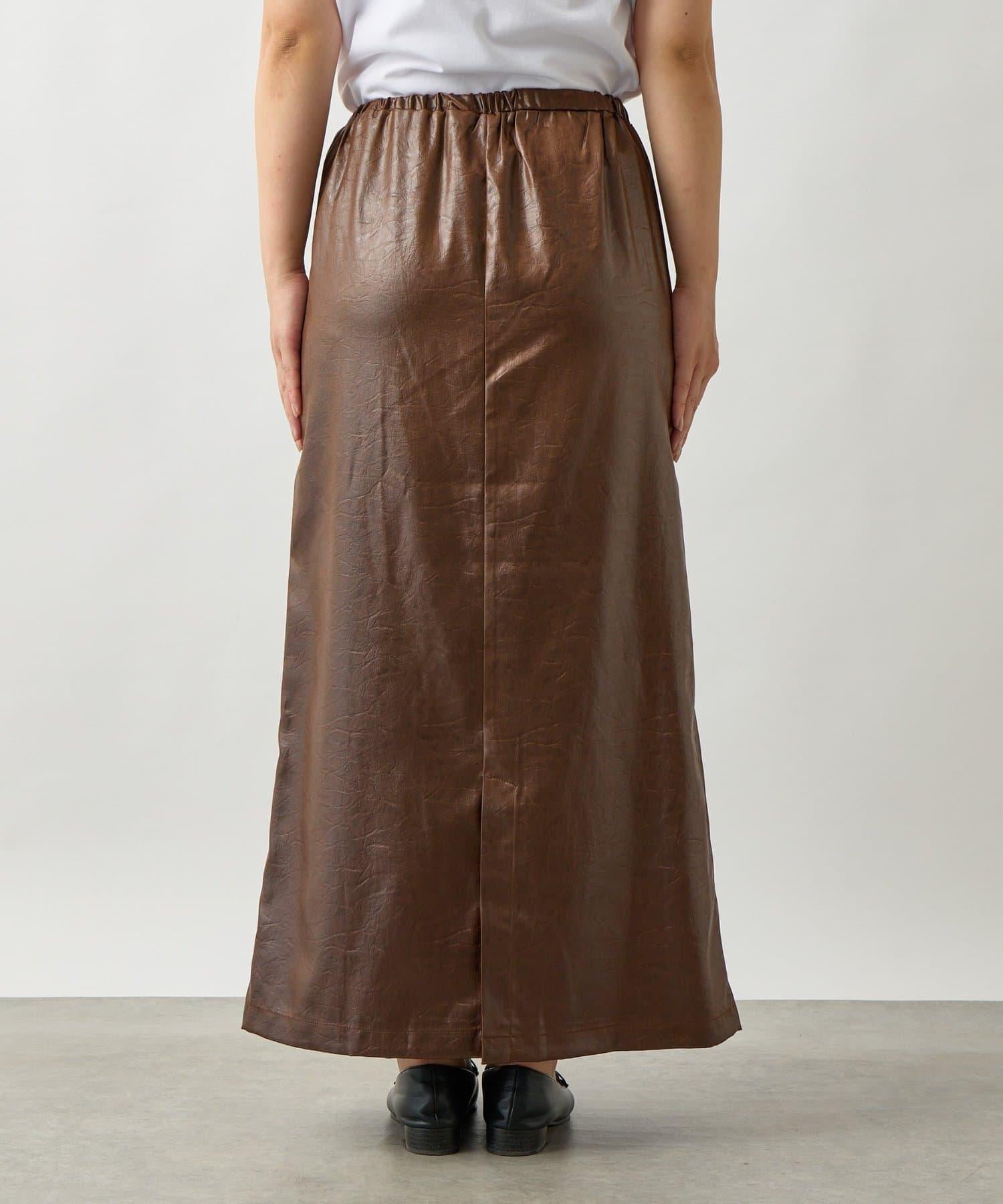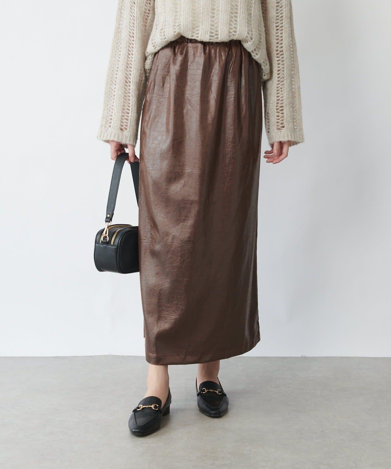 這款窄裙表面光亮如皮革。