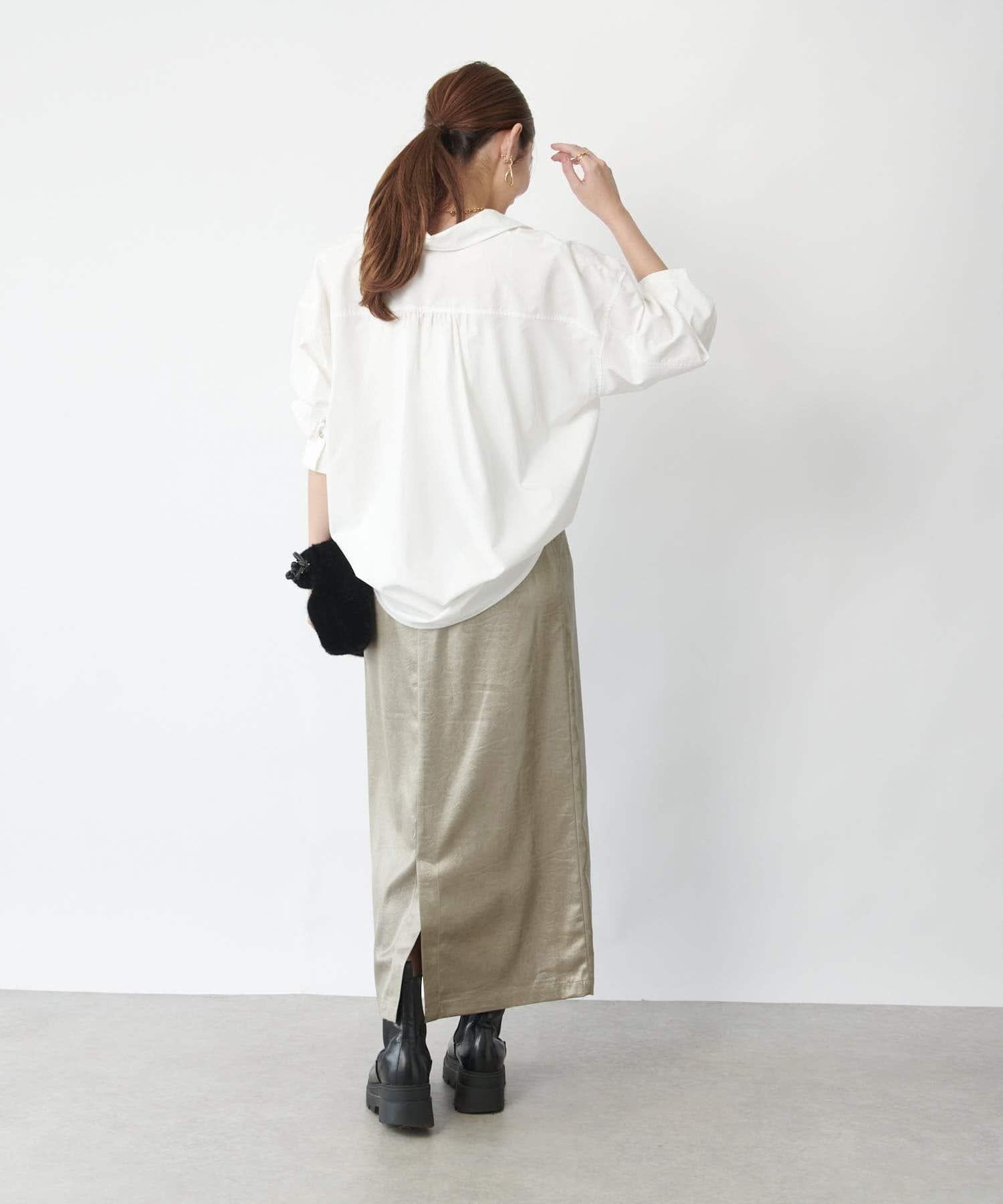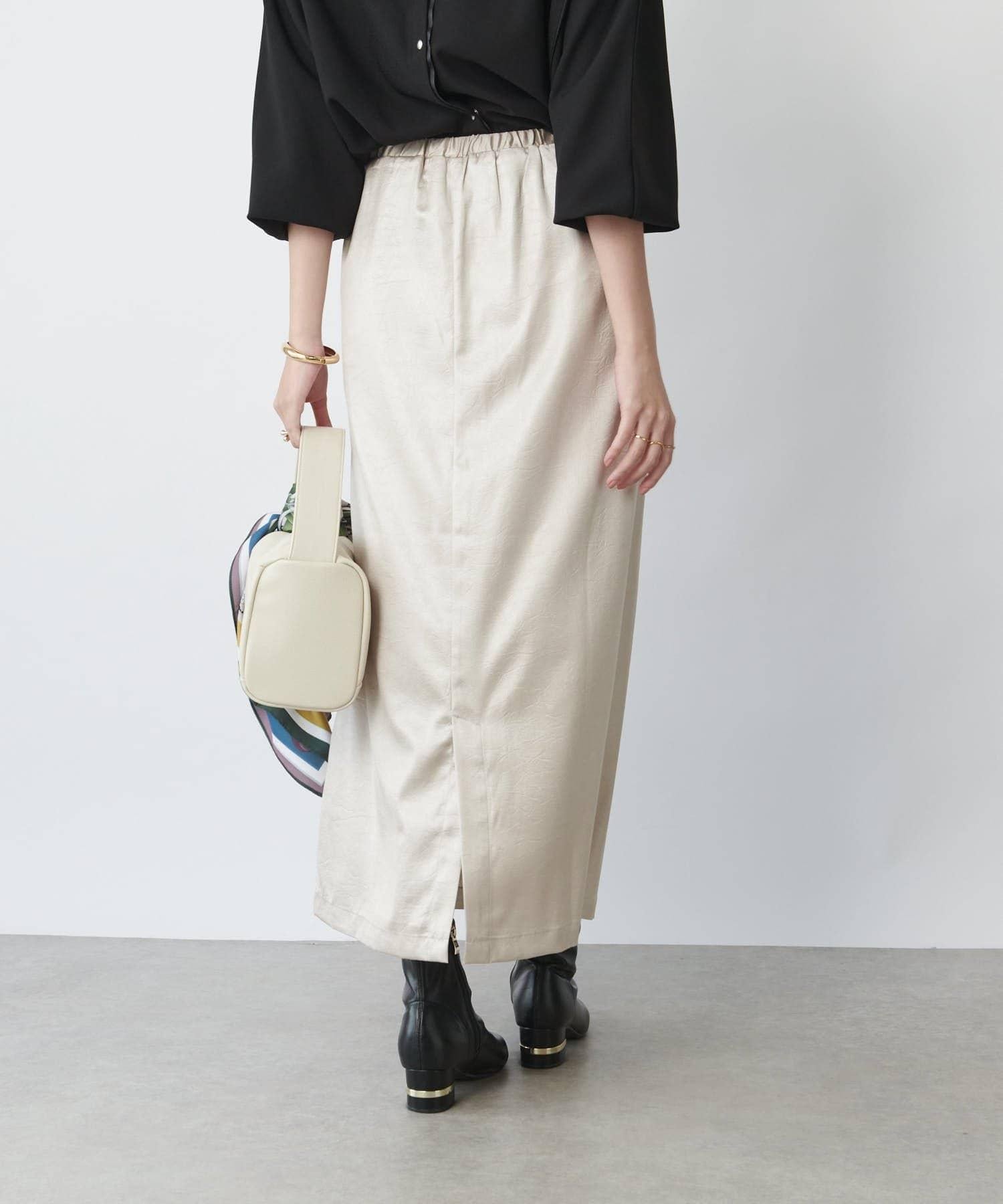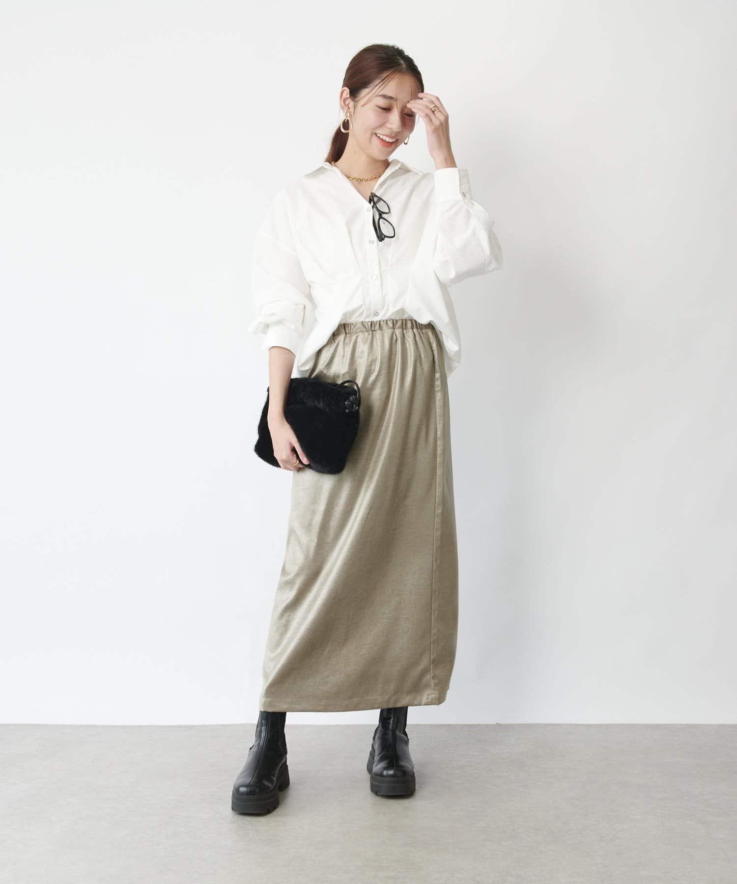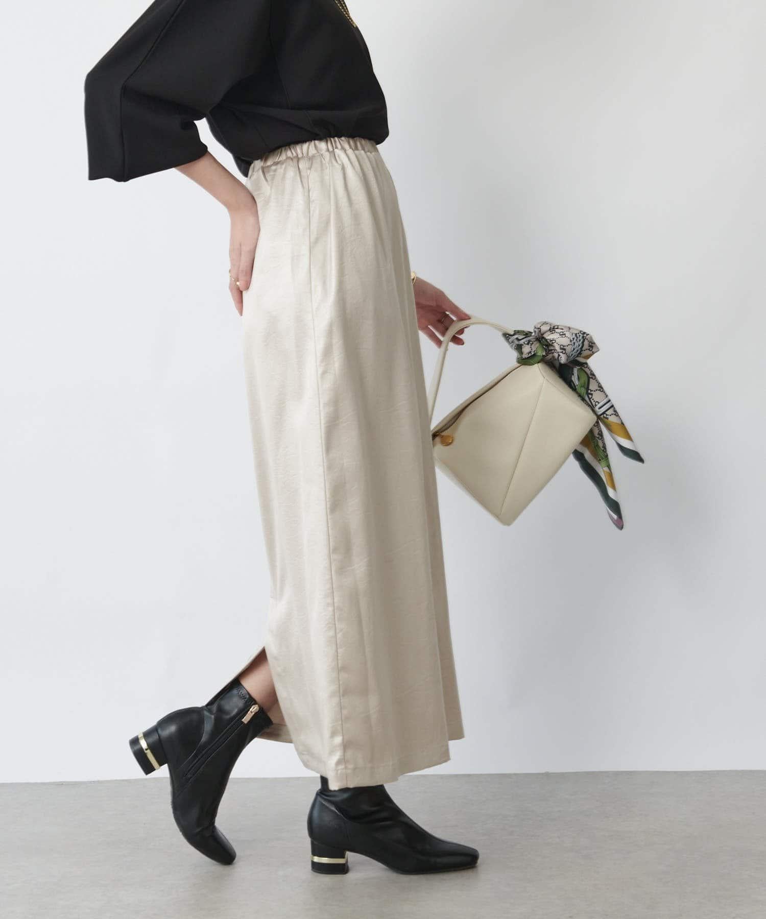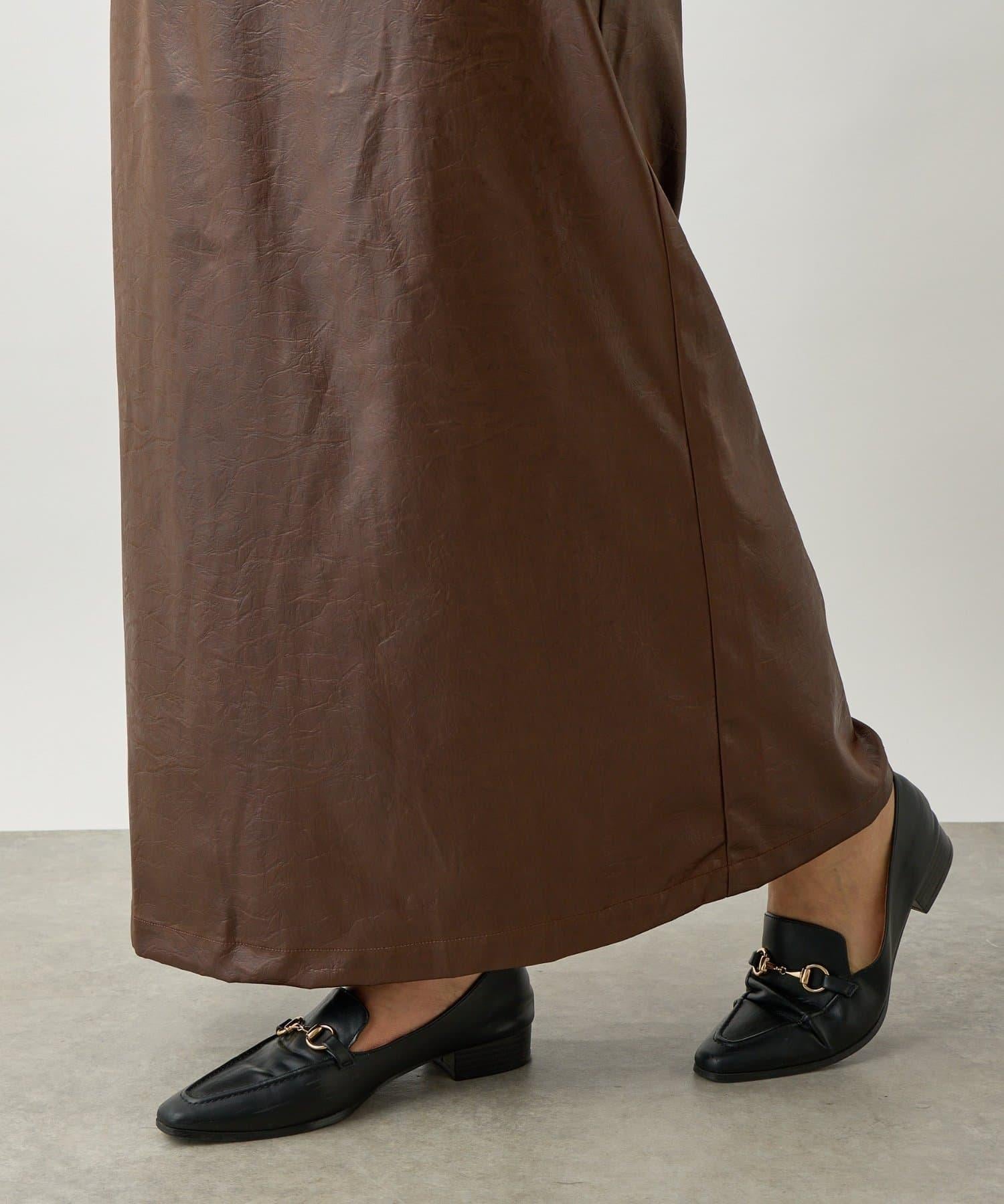 這款窄裙表面光亮如皮革。