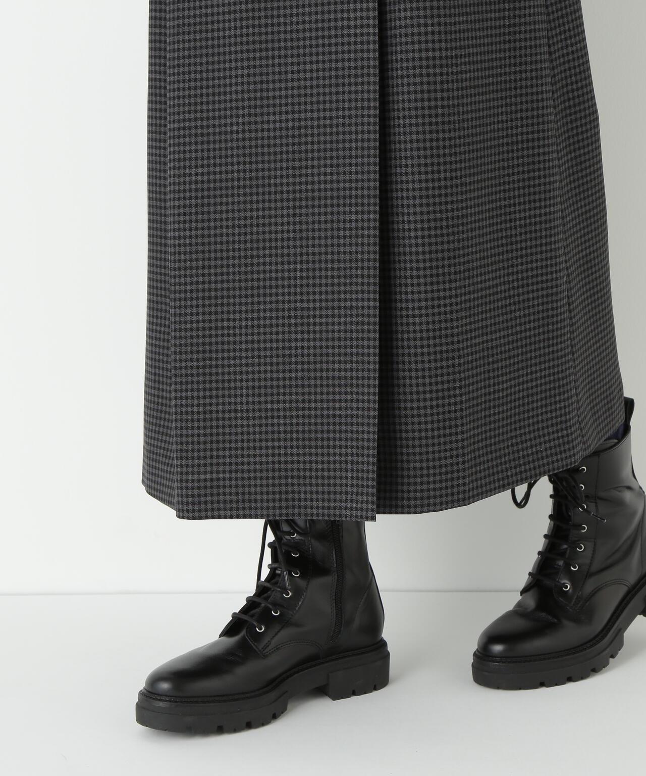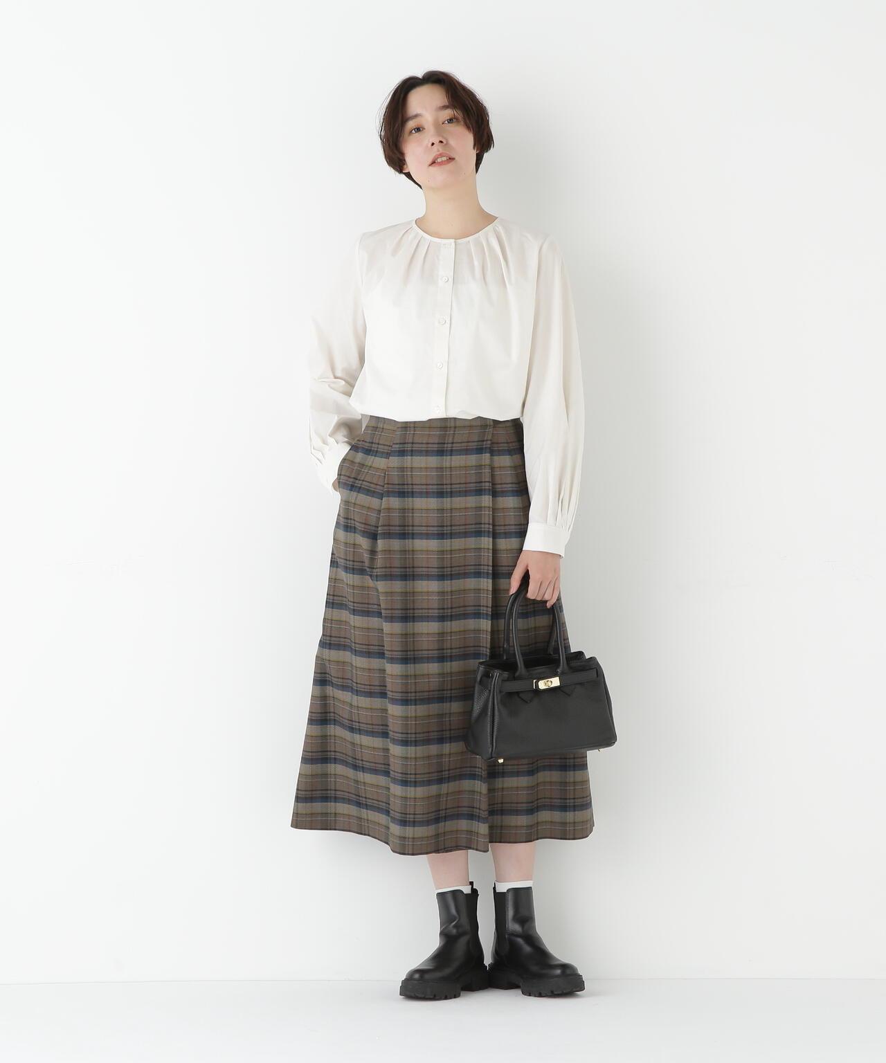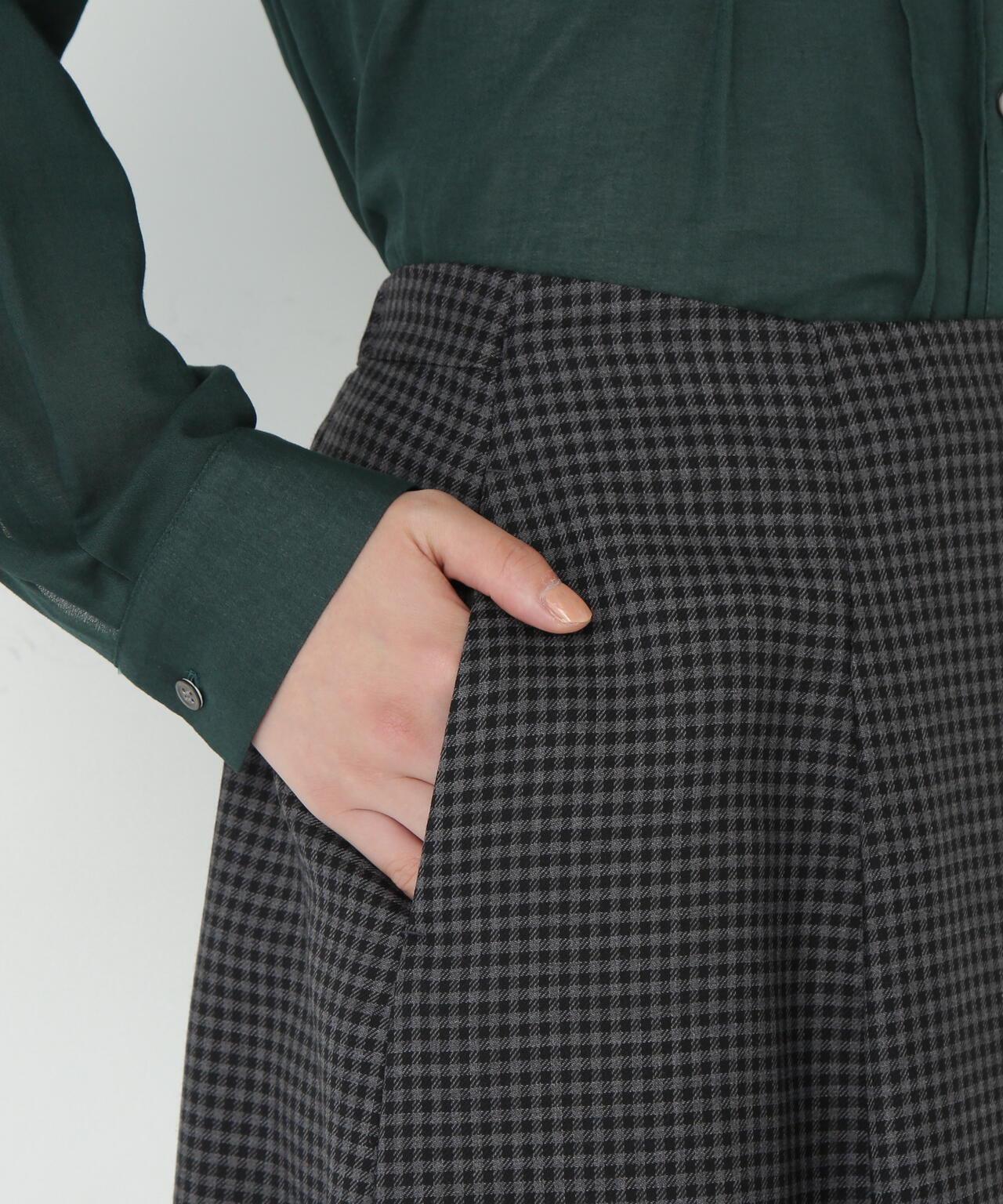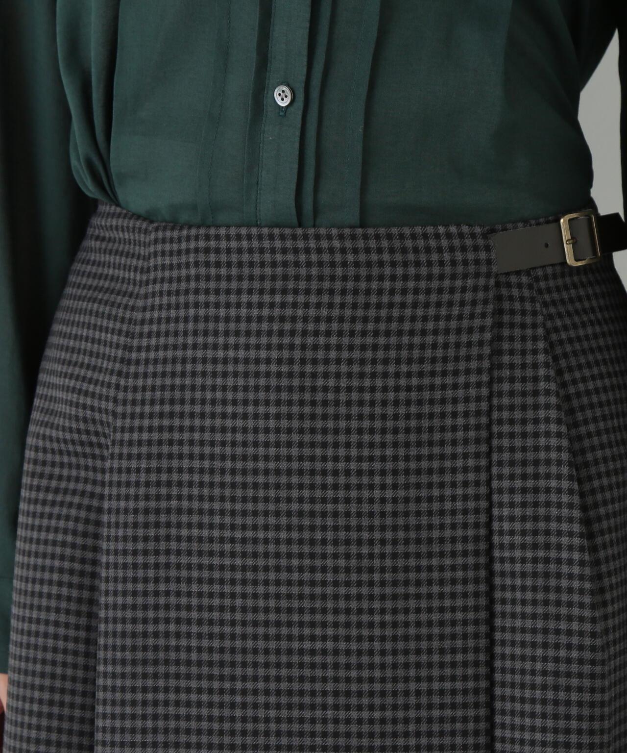 格紋絎縫短裙,烘托季節氛圍 [設計特色] 絎縫短裙,隨意褶襉。裙側的人造革迷你腰帶是一大亮點。裙子採用羊毛聚酯纖維製成,質地輕盈,經過紗線染色,具有獨創性的格紋材質。格紋有兩種顏色可供選擇:摩卡棕配綠綠格紋和灰黑色格子格紋。這款裙子是傳統與現代造型的明星,無需選擇上衣。建議搭配斗篷式針織衫或波西米亞風格的披風。
