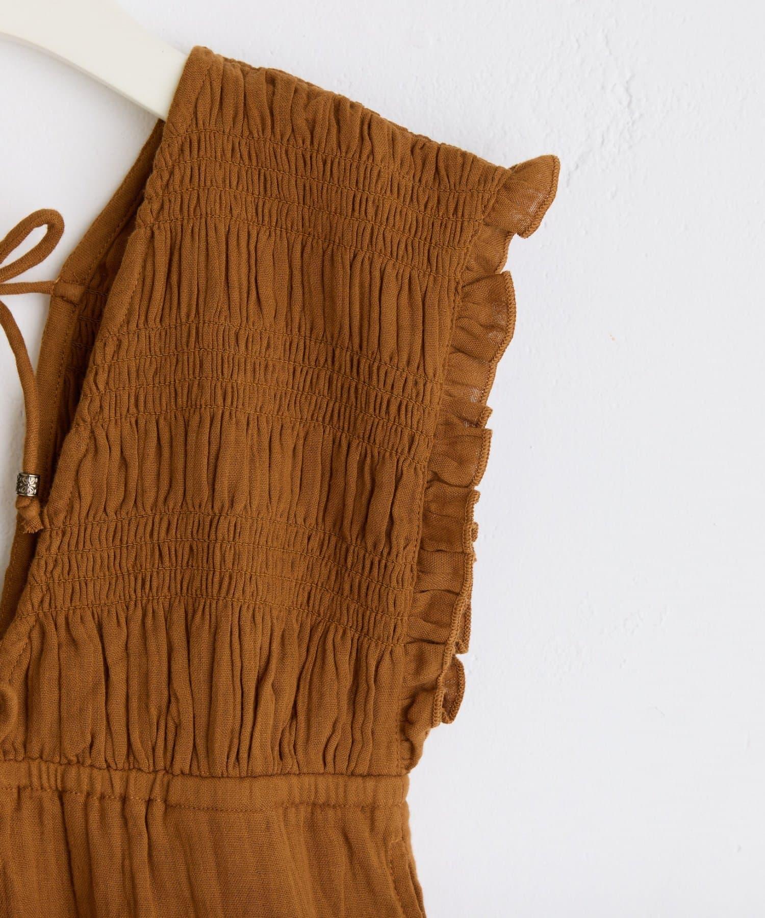 這款連體衣採用輕薄的紗質面料,即使在多汗的季節也能穿著舒適。