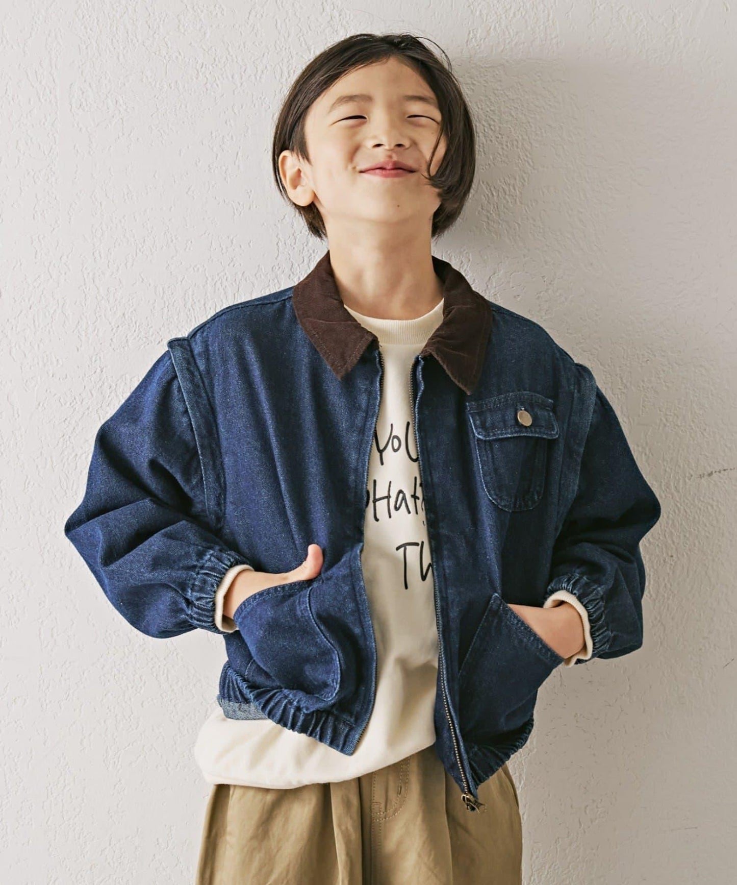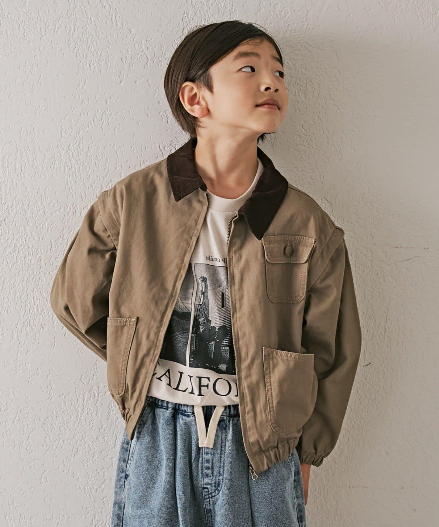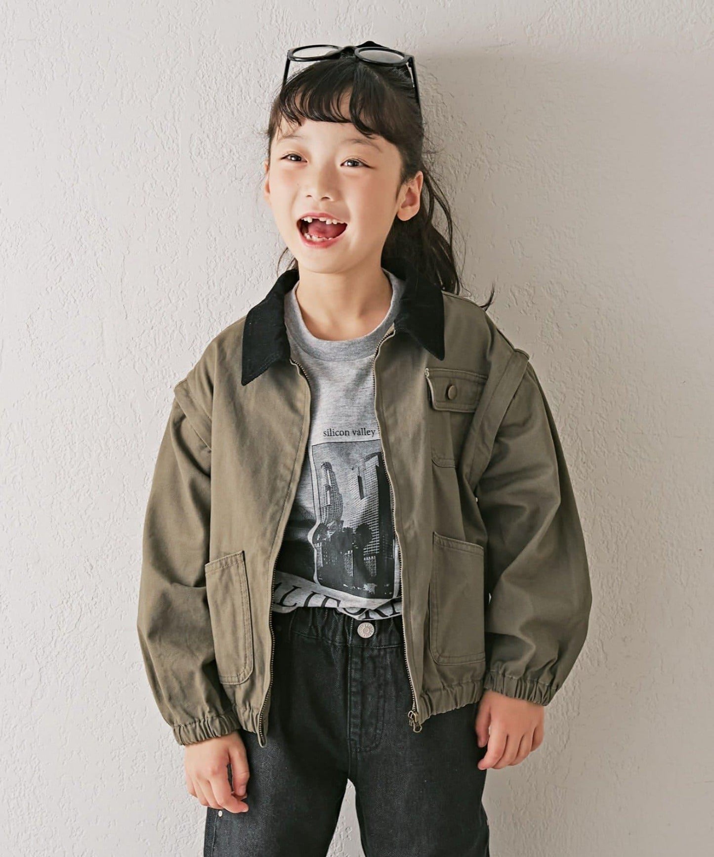 【兒童】【男女通用】可拆卸袖子工裝夾克外套