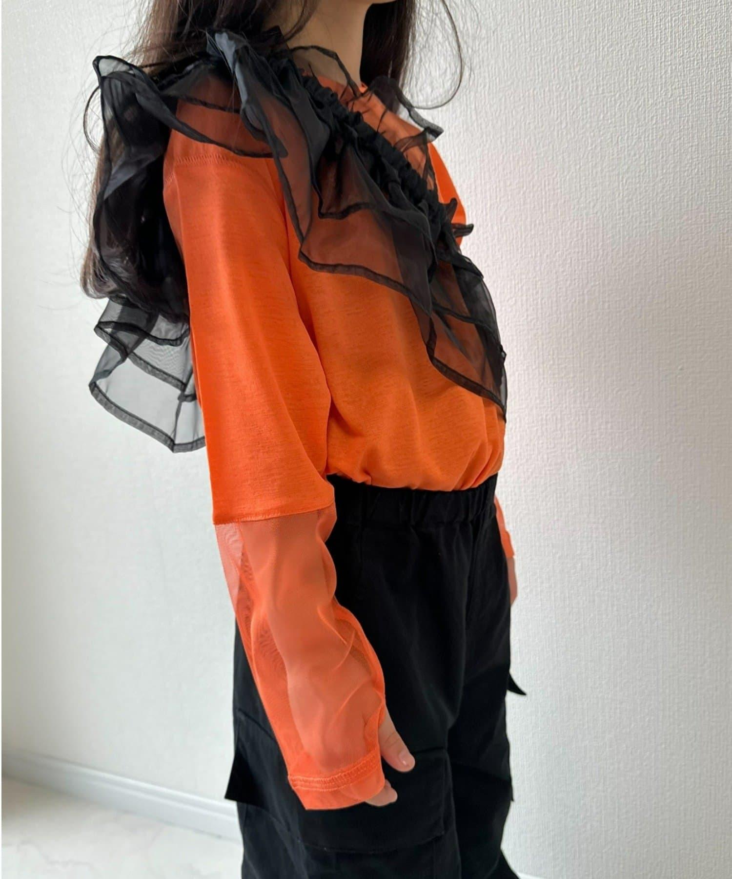 薄紗材質的切換設計營造出與眾不同的時尚氛圍!