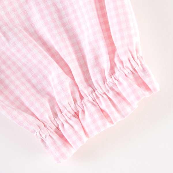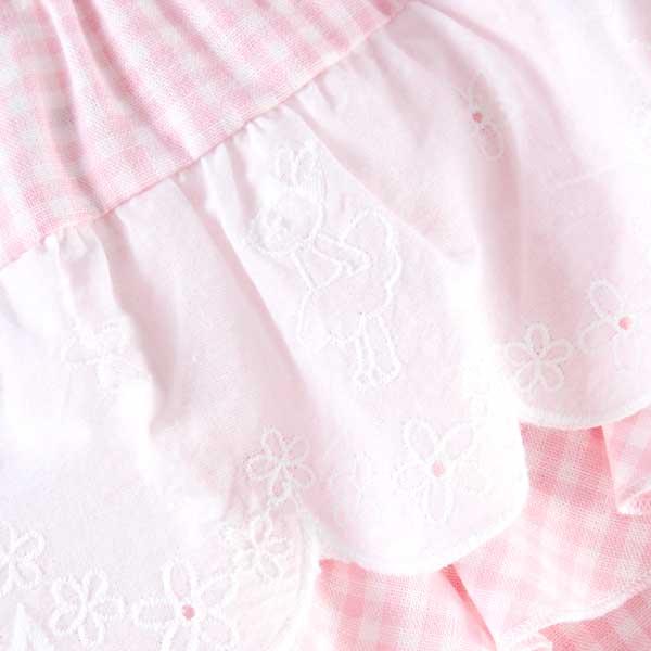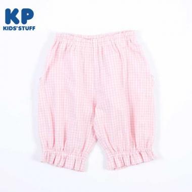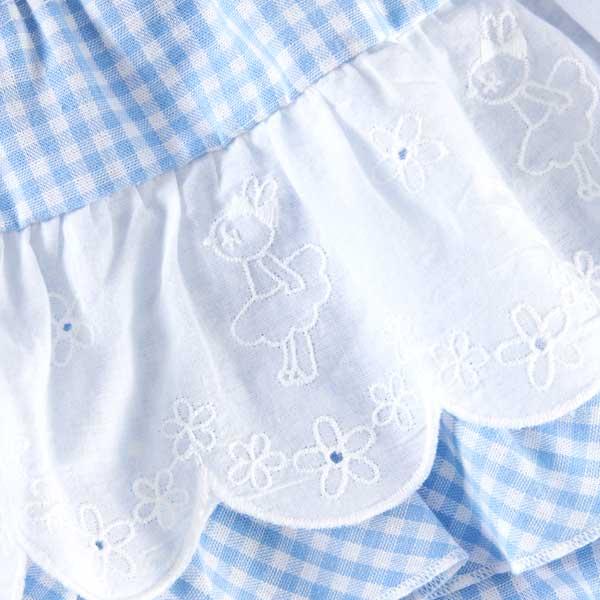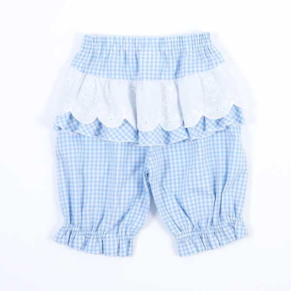 兔子圖案蕾絲後荷葉邊六分格子褲