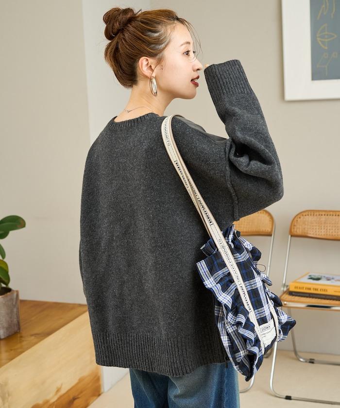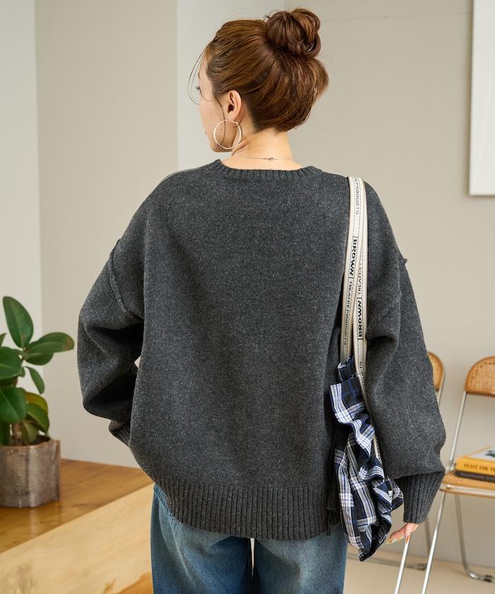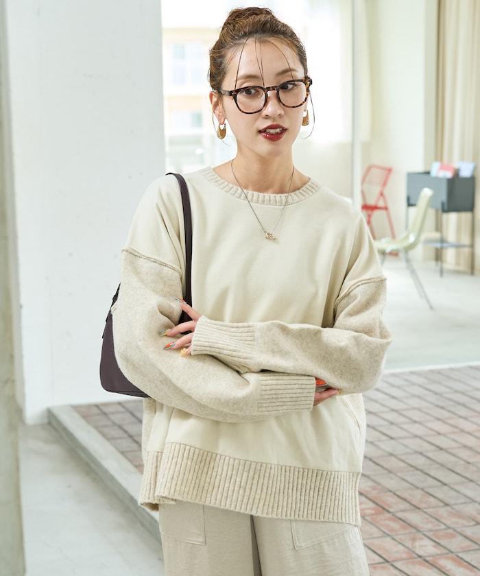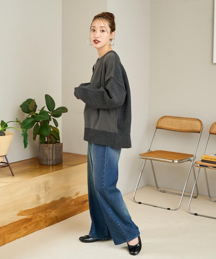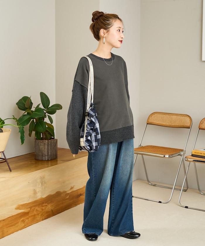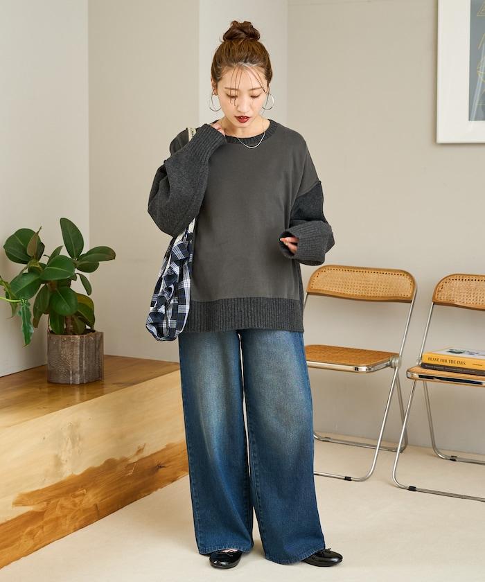 不同材質的組合--柔軟保暖的羊毛揹帶褲和針織衫。