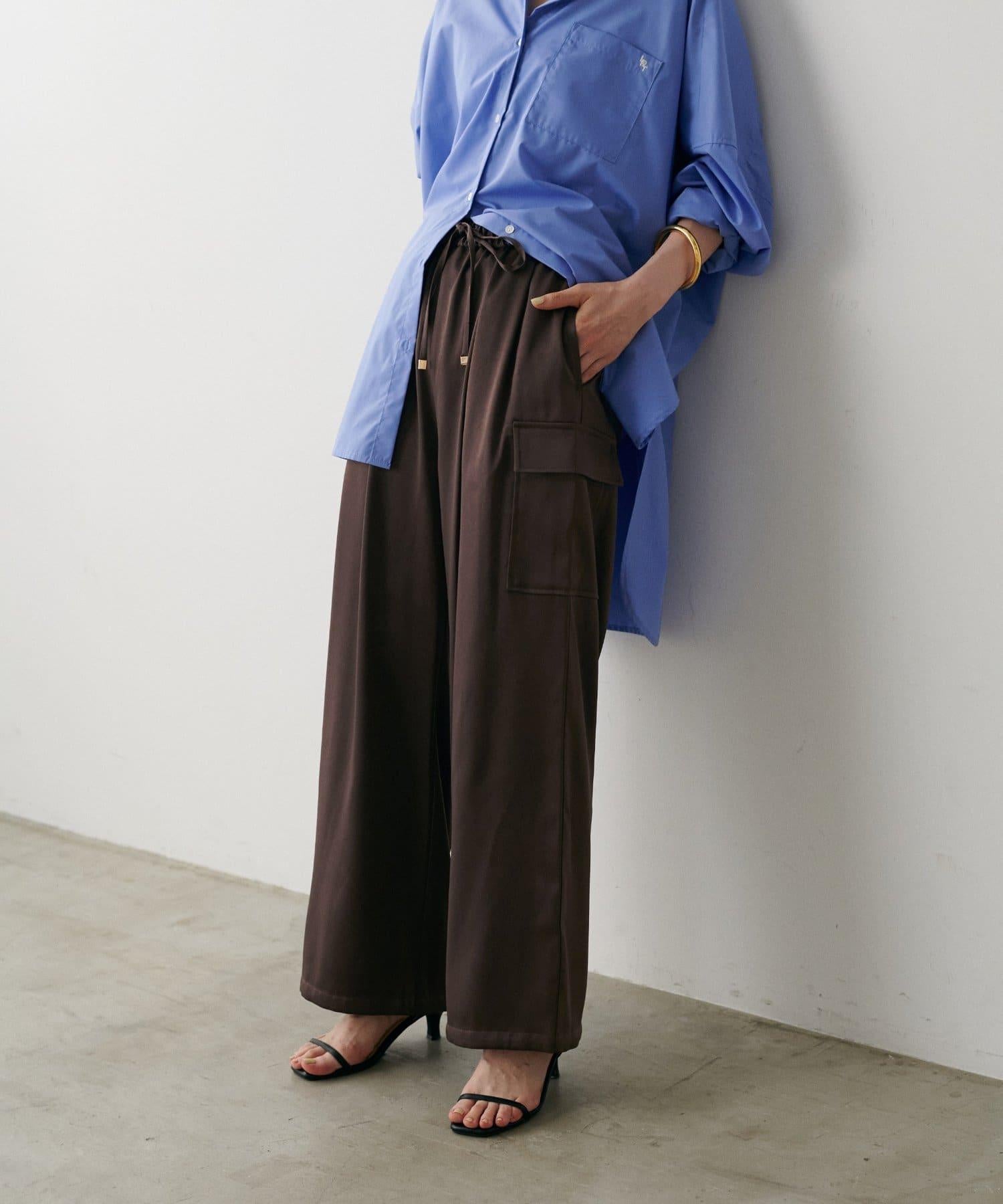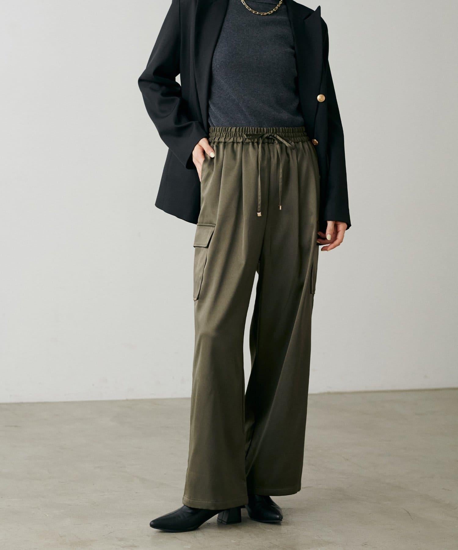 緞面襯裡、微拉絲緞面貨物抽繩長褲