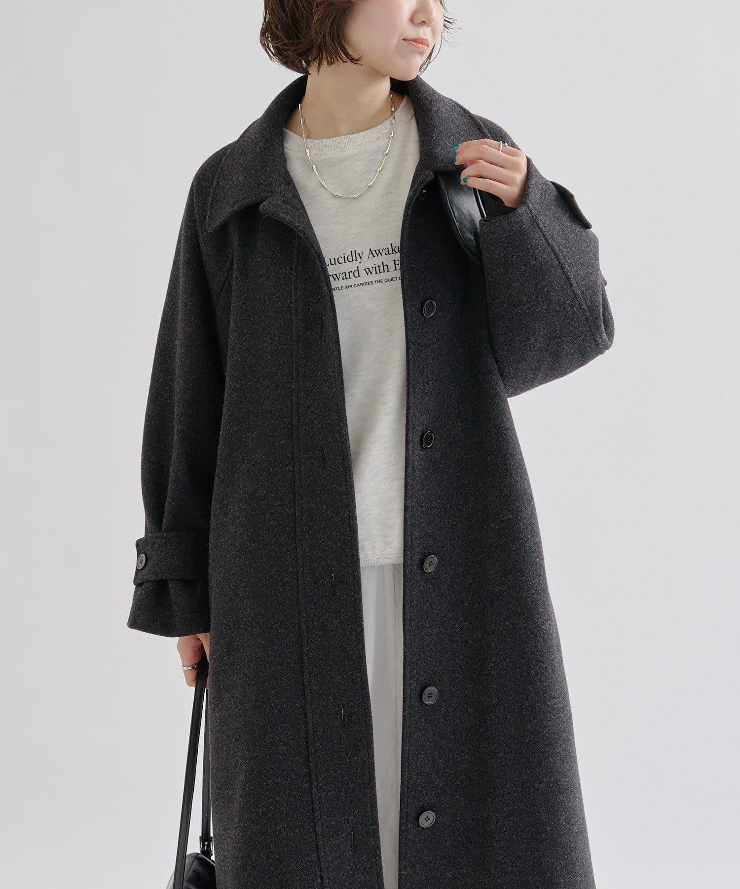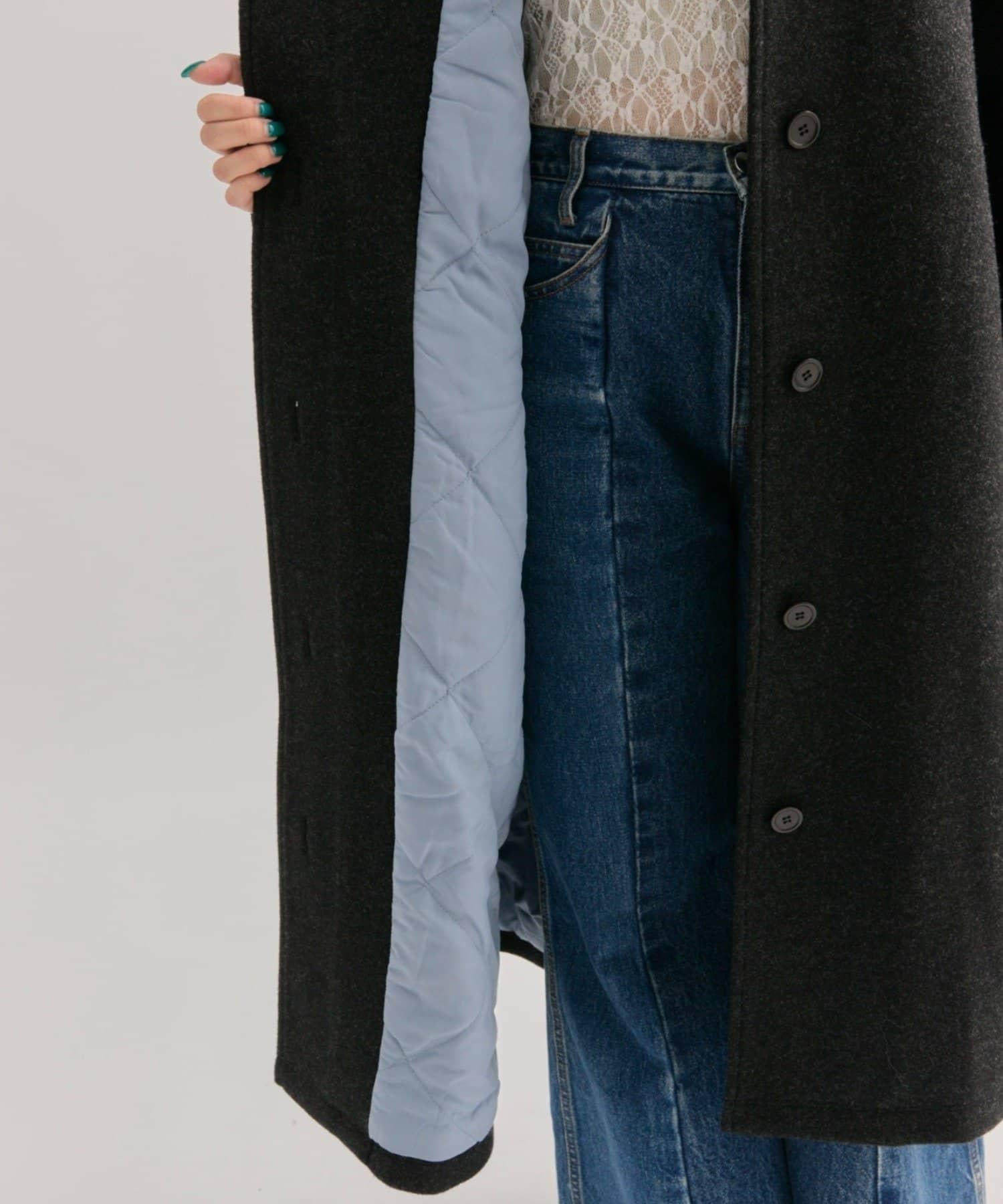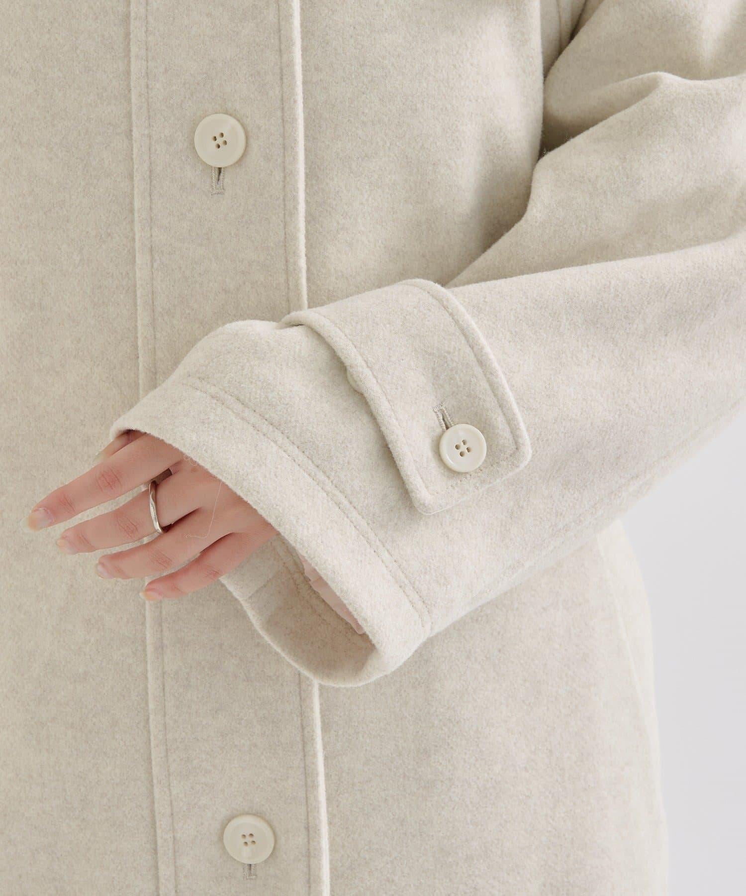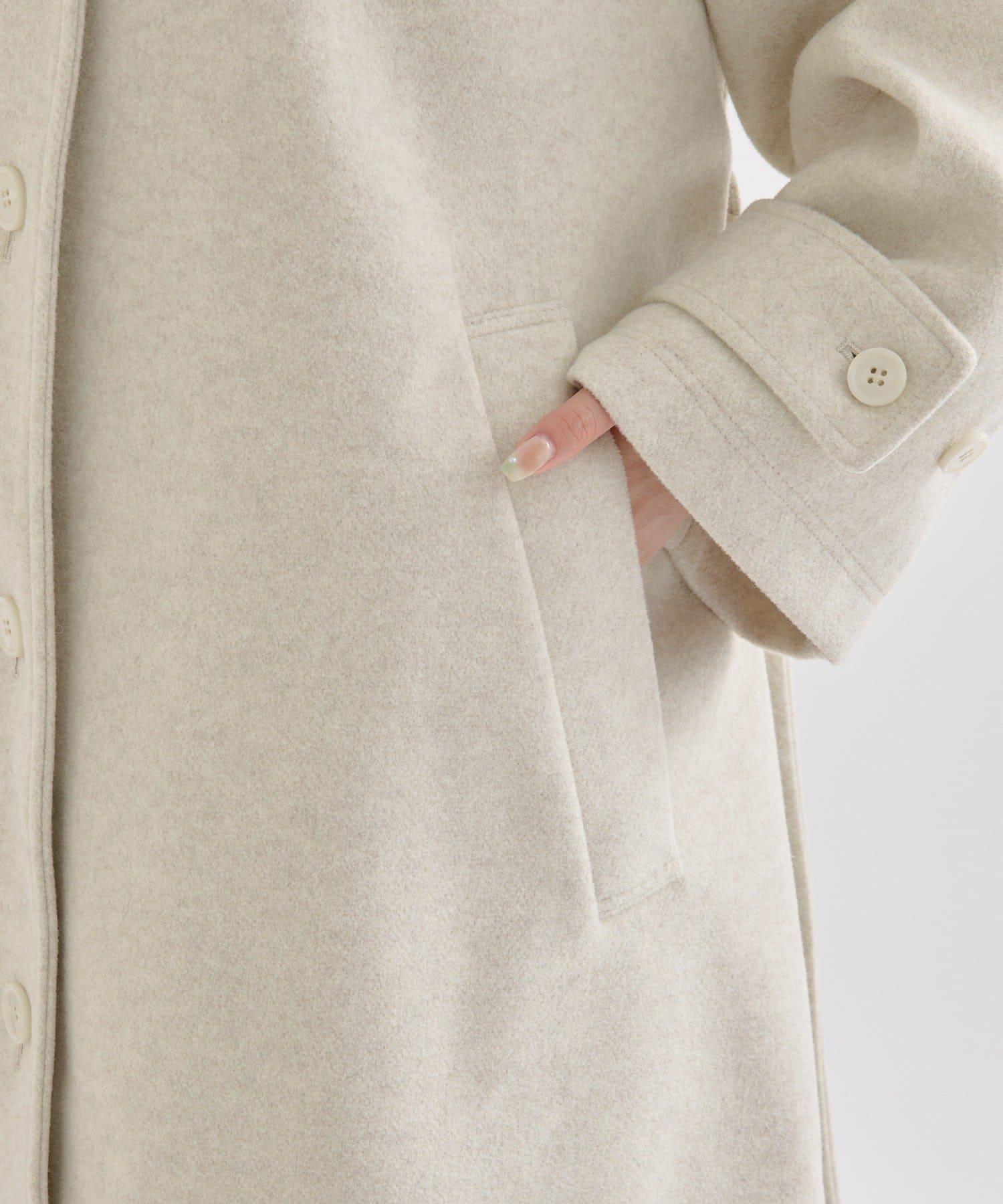 這款長款大衣的領子可作為立領使用,面料使其外觀高貴。領子上的小飾片是優雅的點睛之筆。