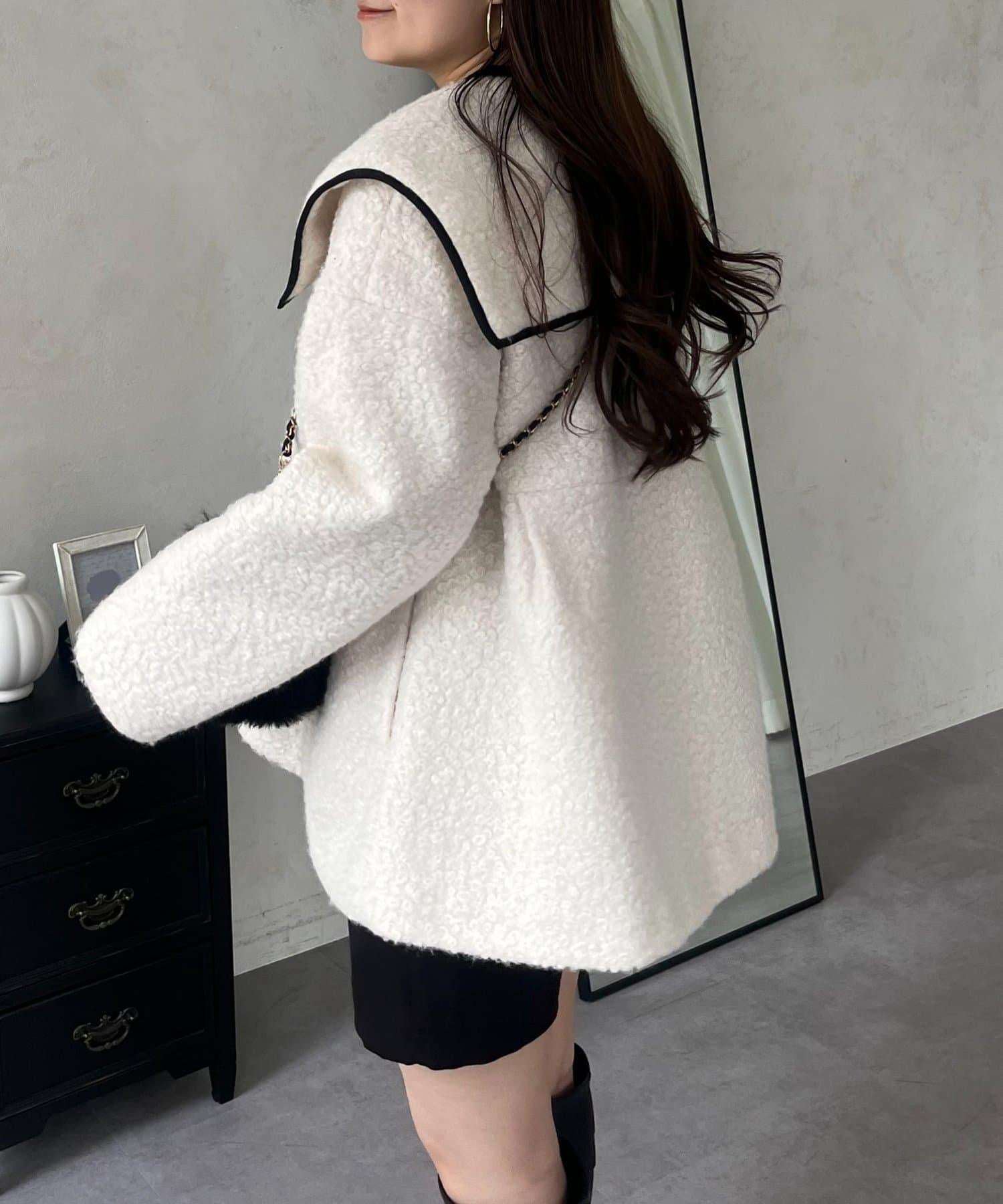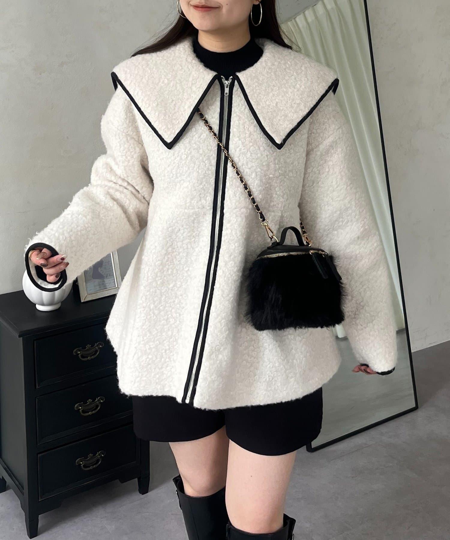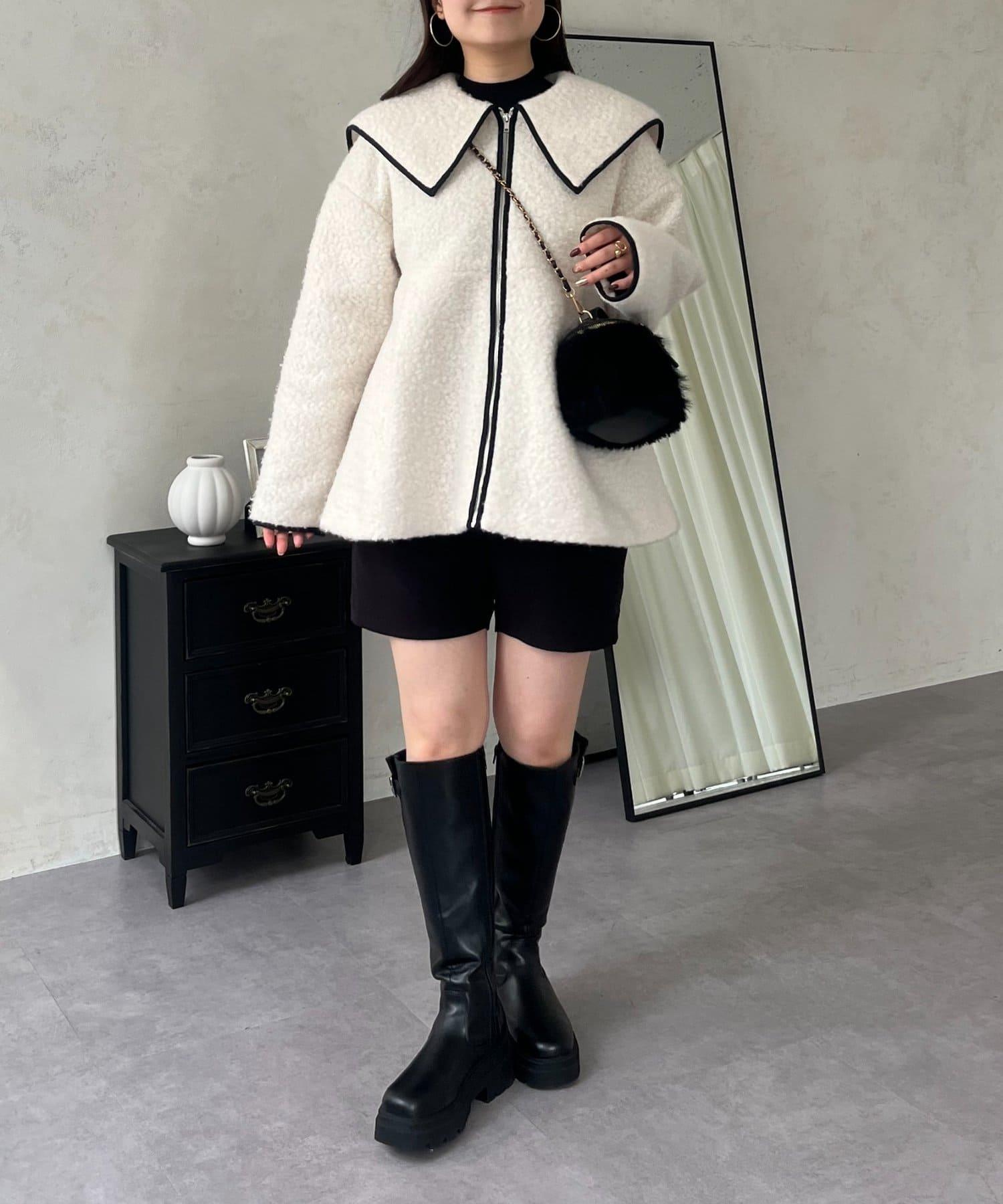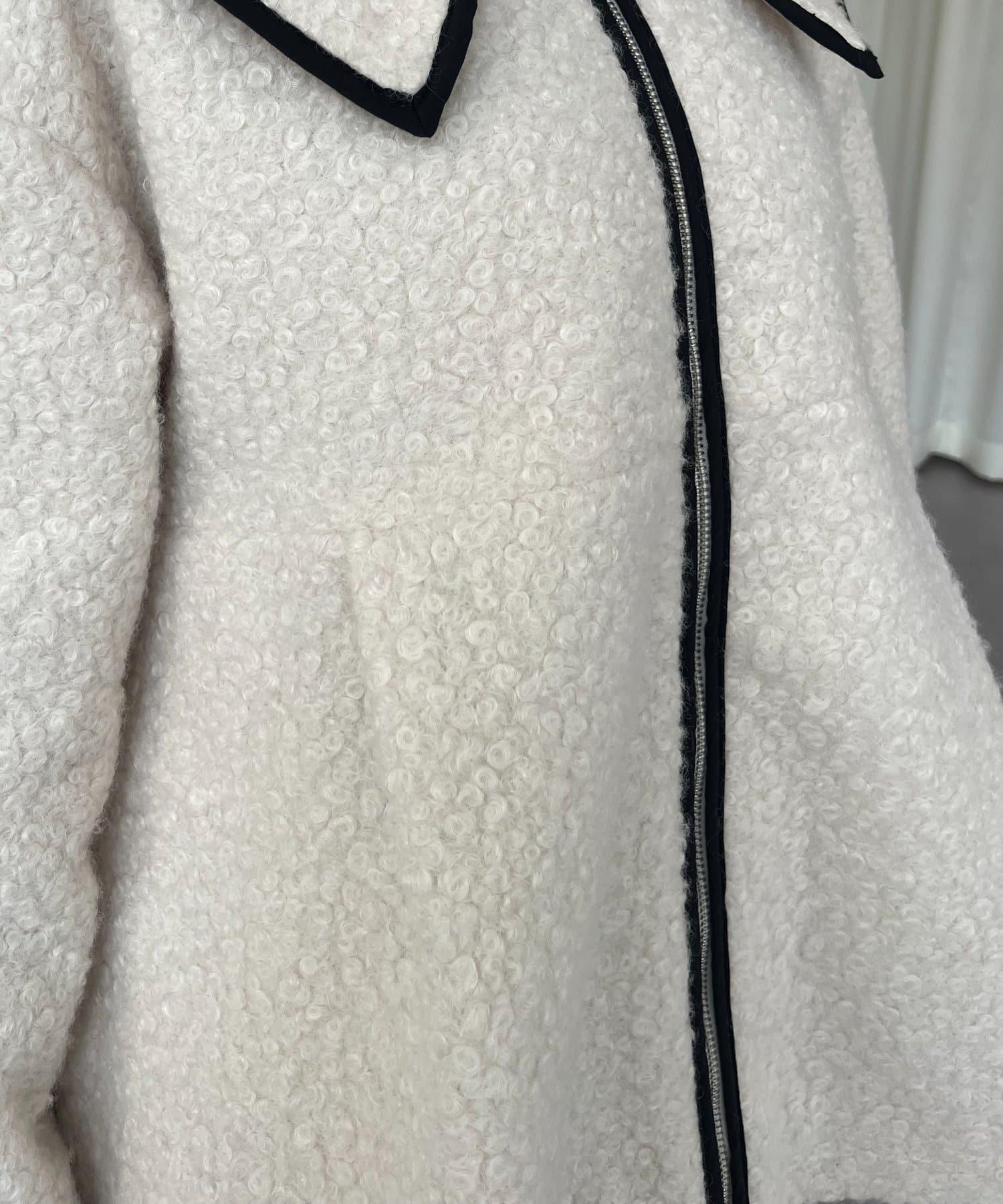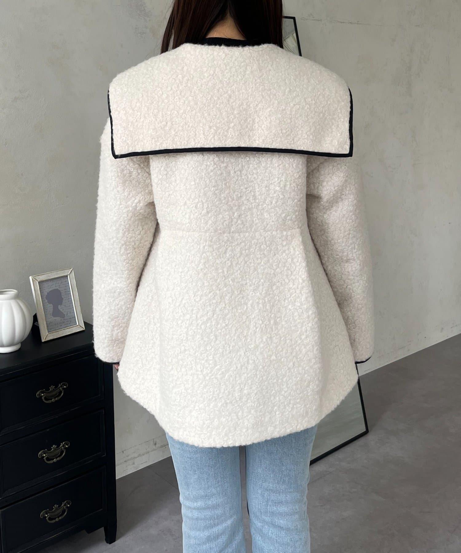 內襯絎縫大翻領滾邊荷葉擺羊羔絨短外套