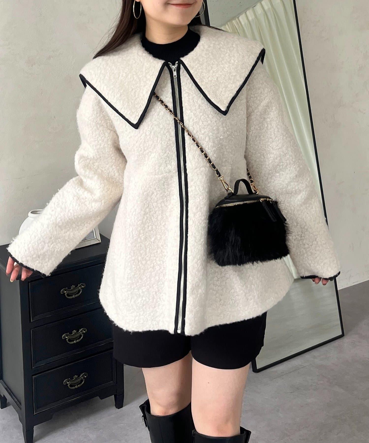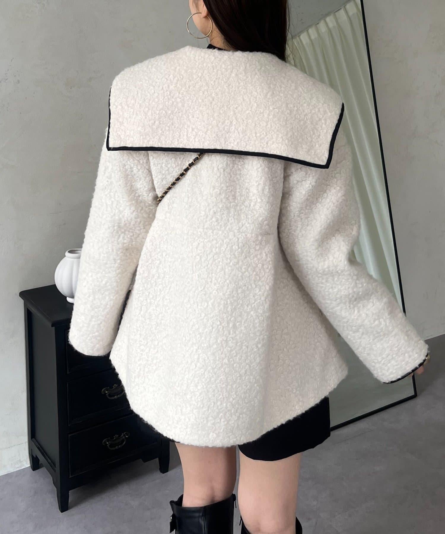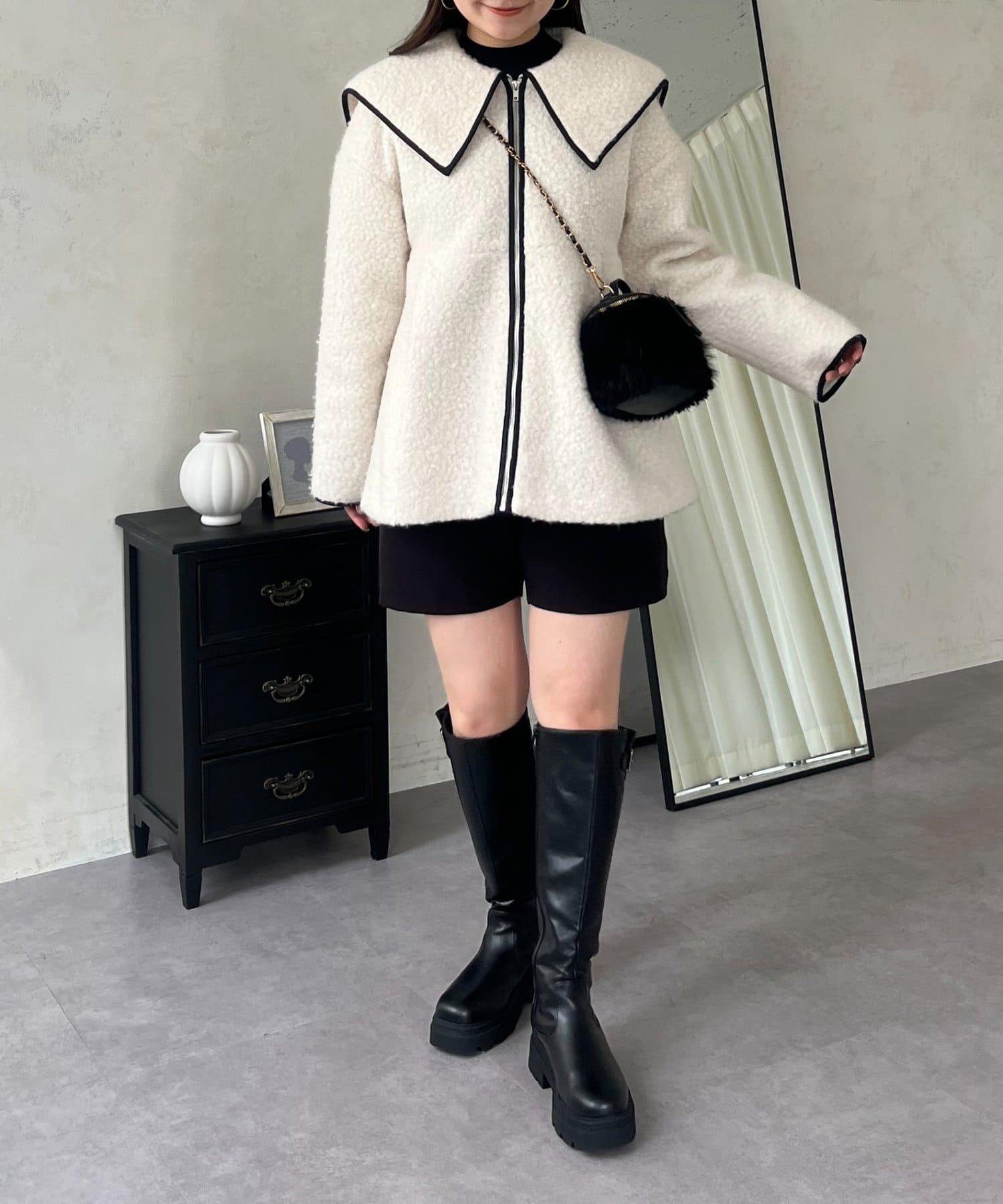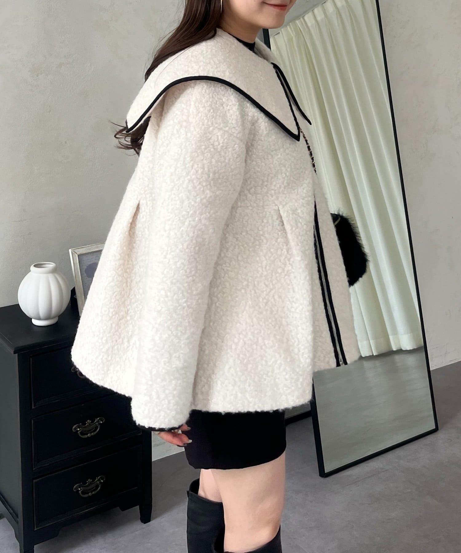 內襯絎縫大翻領滾邊荷葉擺羊羔絨短外套
