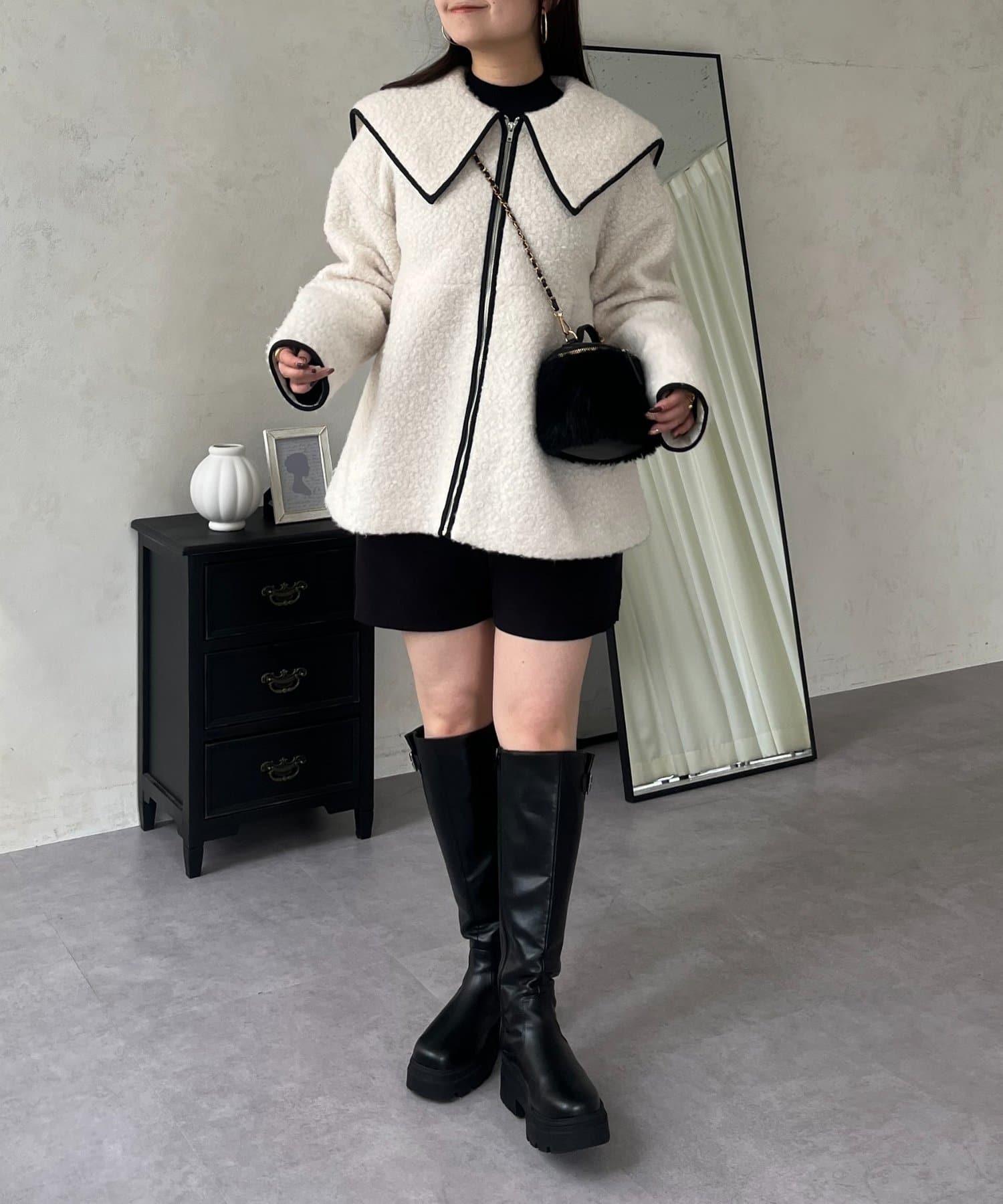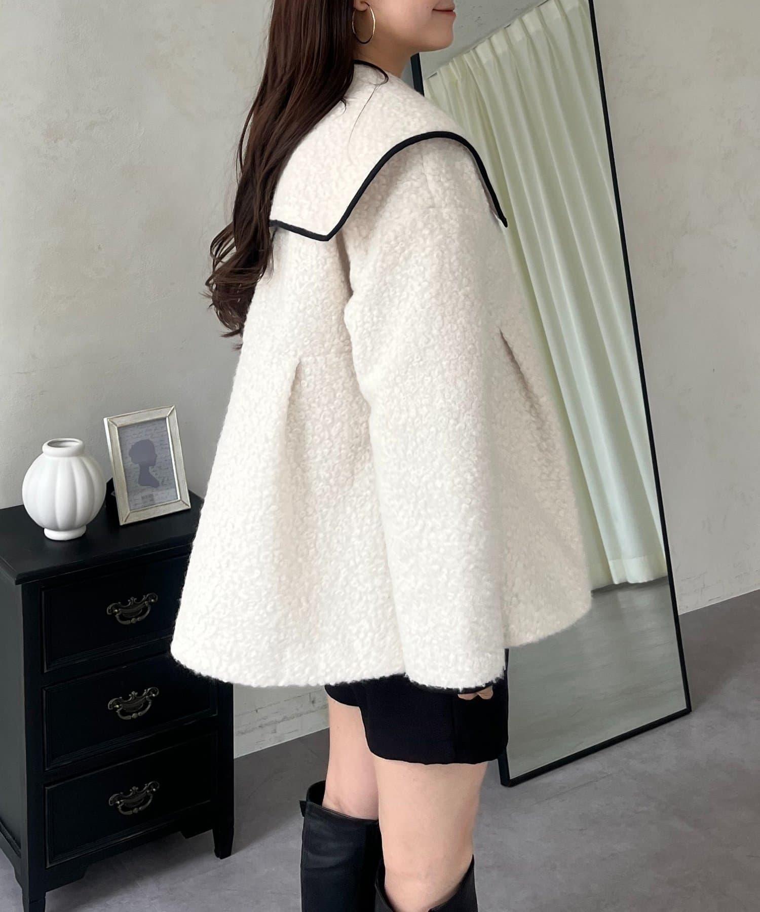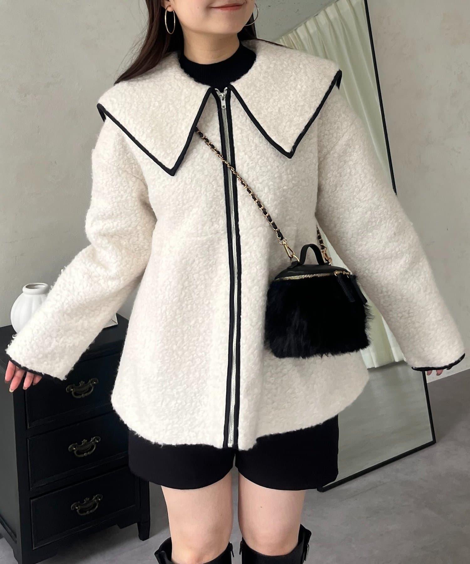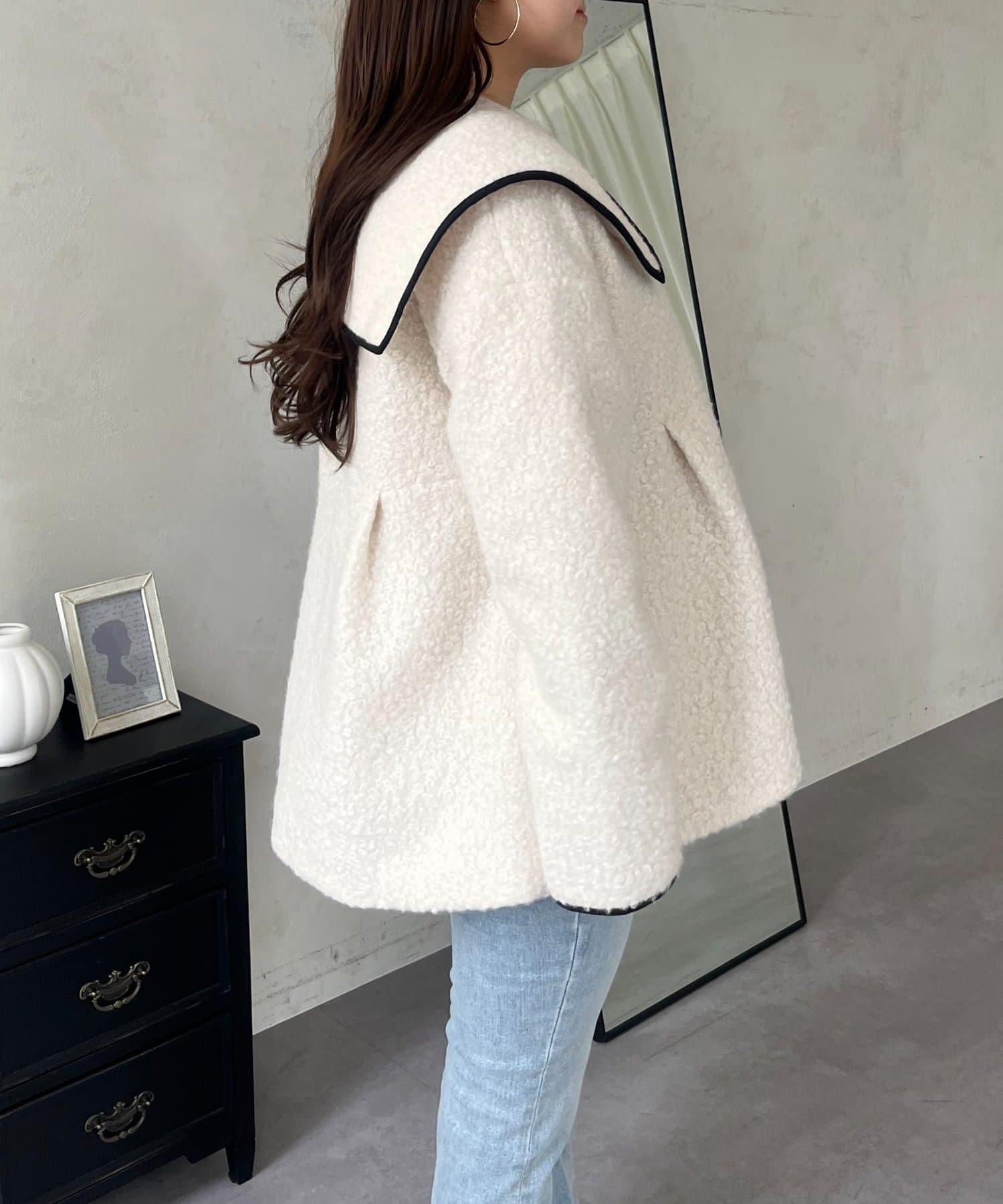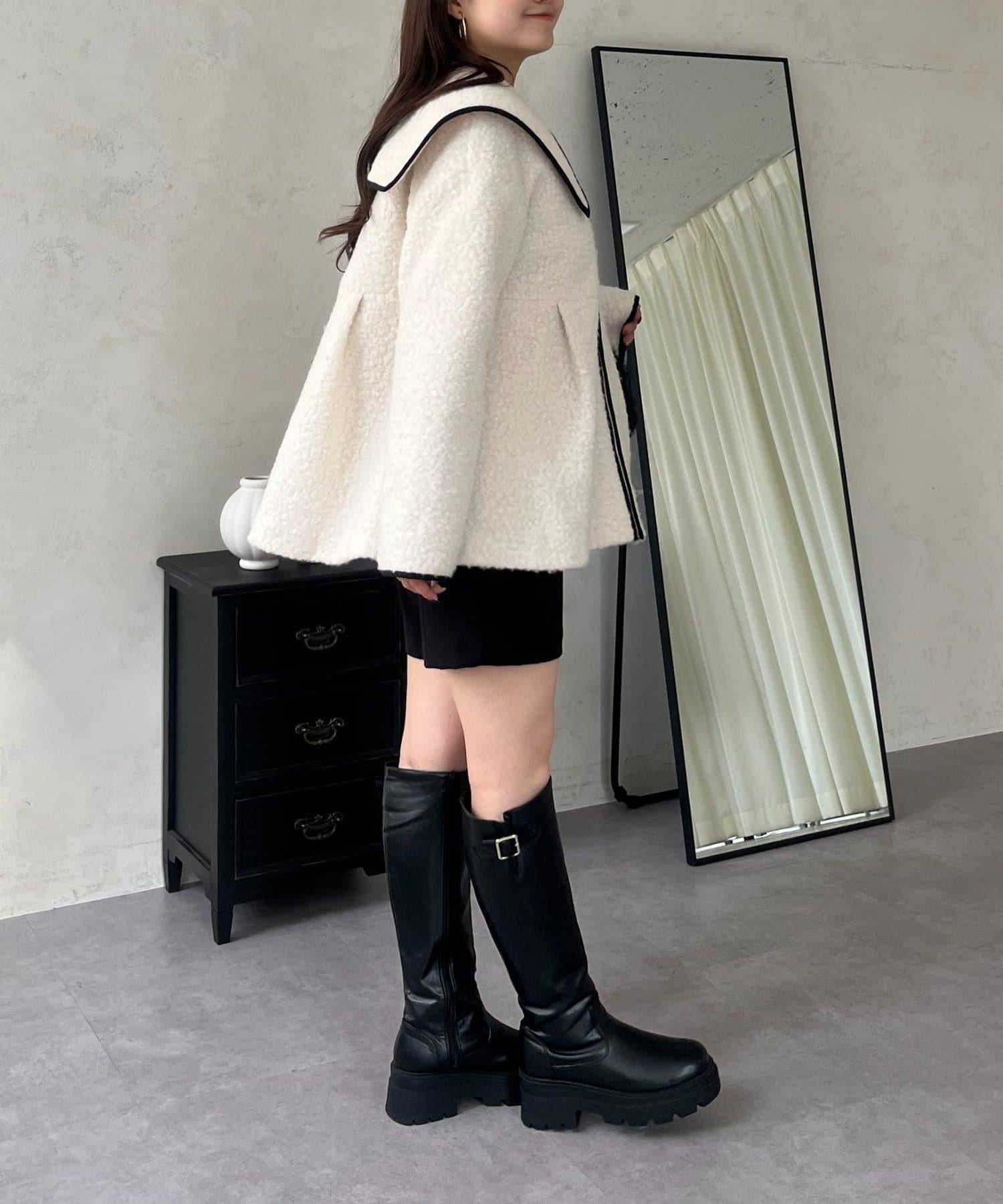 內襯絎縫大翻領滾邊荷葉擺羊羔絨短外套
