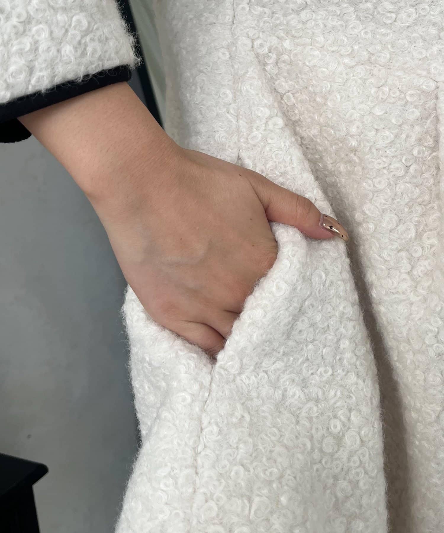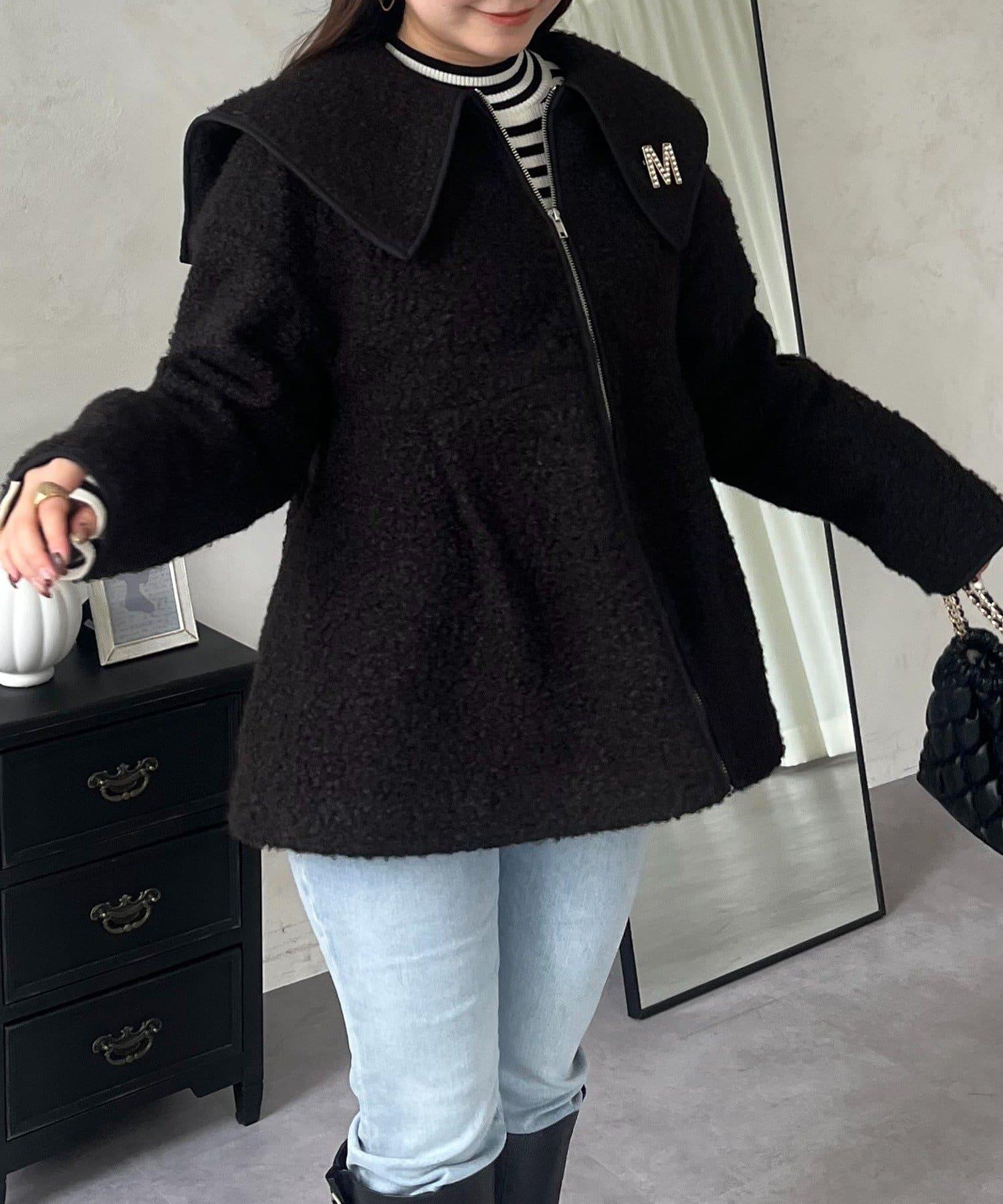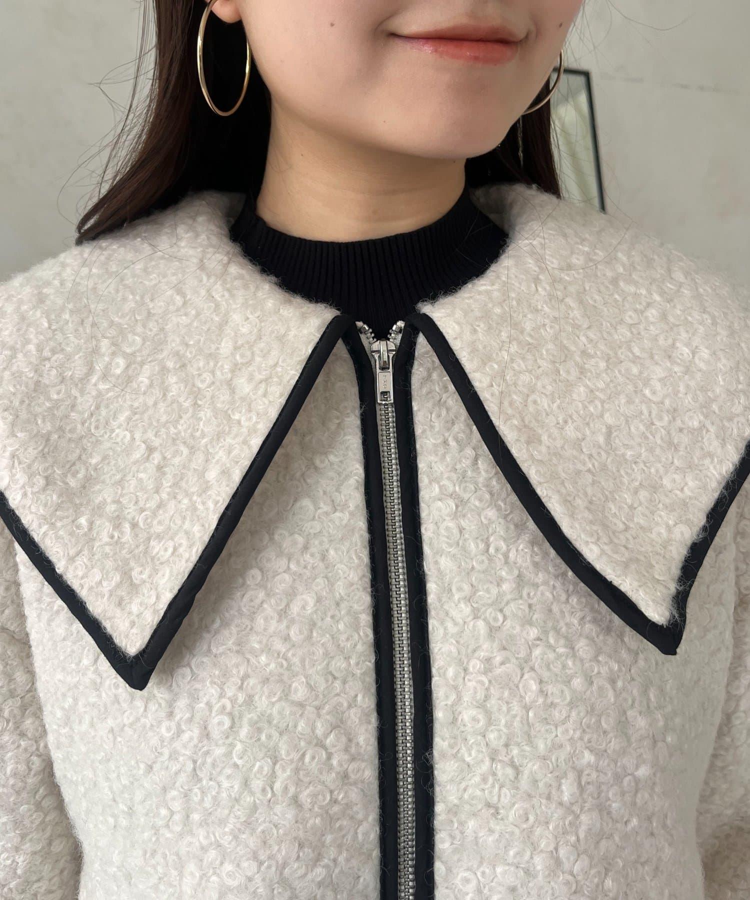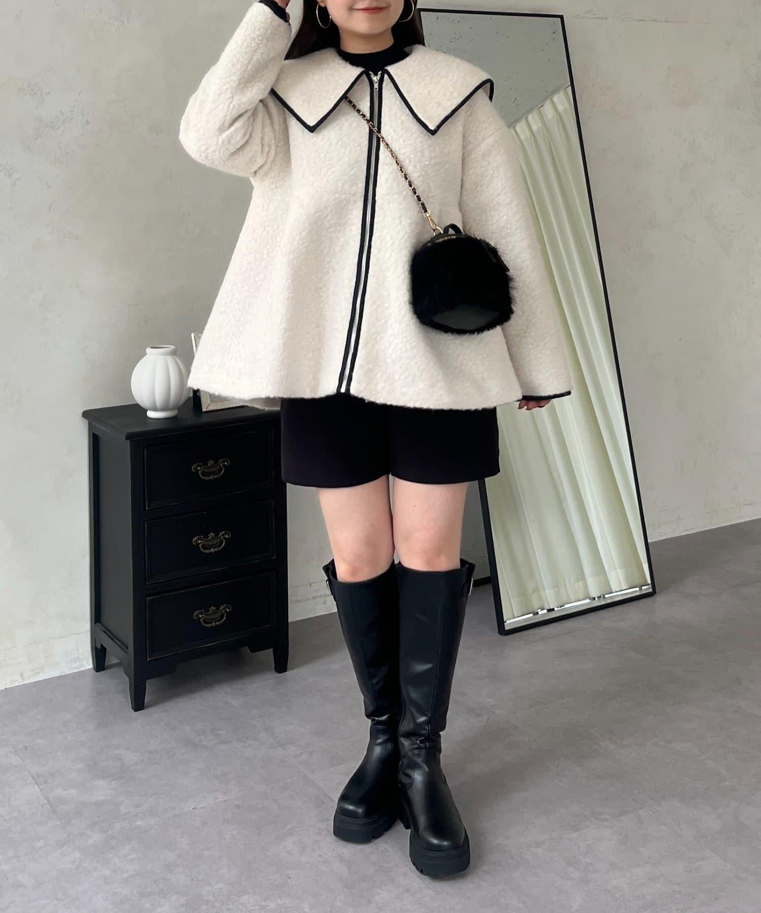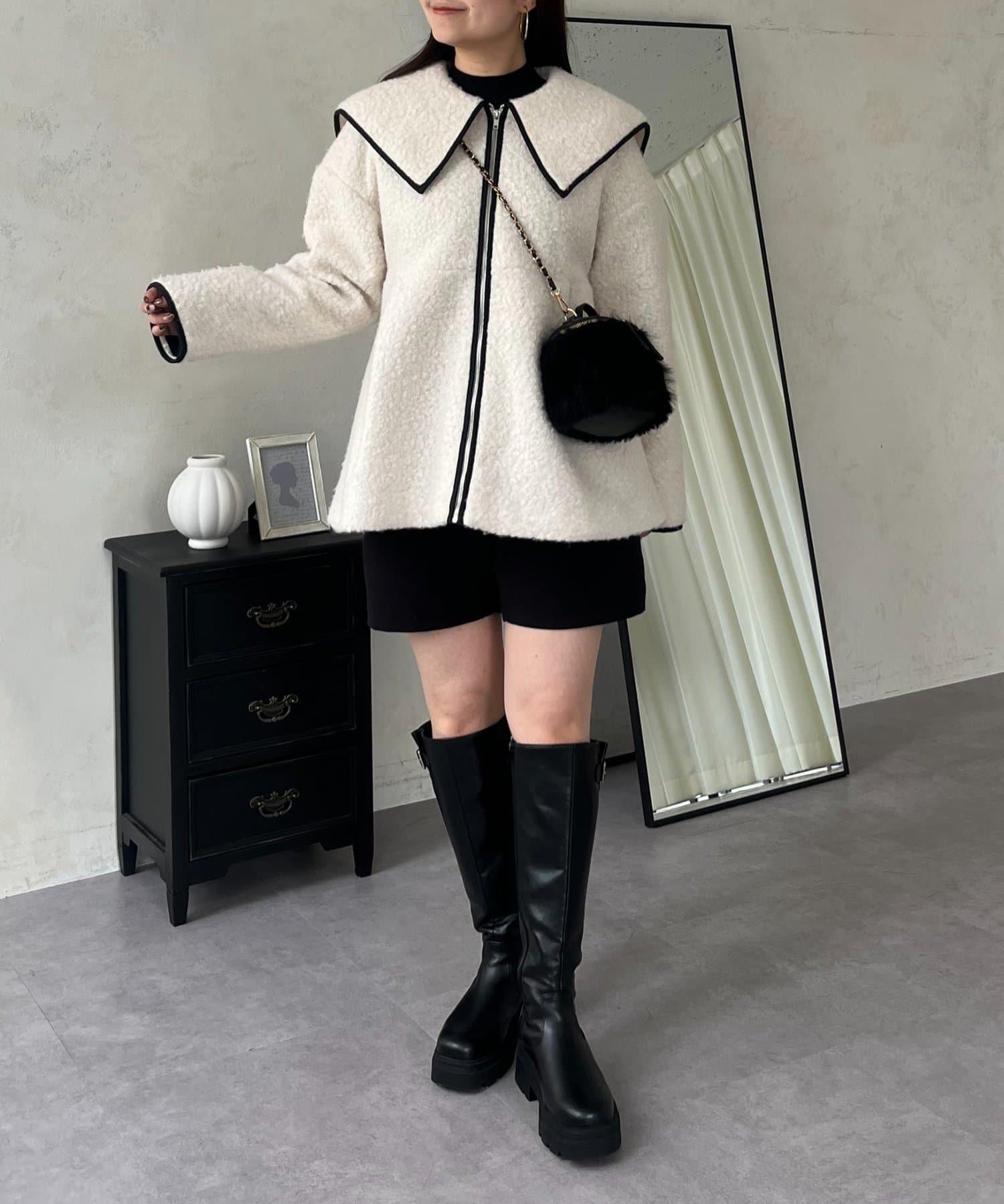 內襯絎縫大翻領滾邊荷葉擺羊羔絨短外套