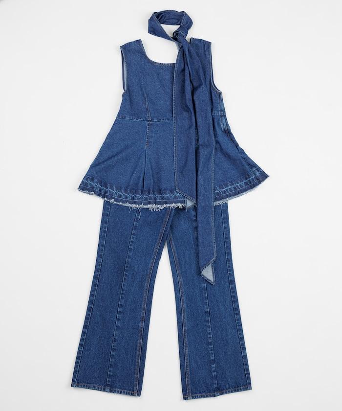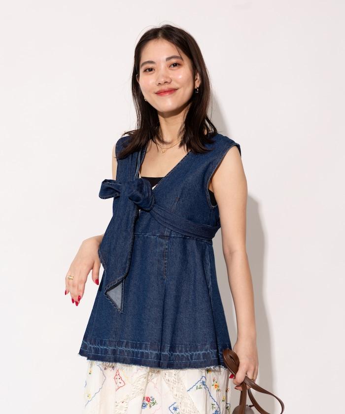 【全骨架優勝!系列】多功能蝴蝶結牛仔上衣<套裝搭配>