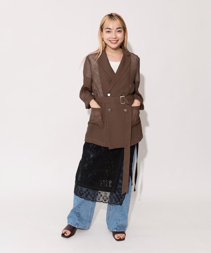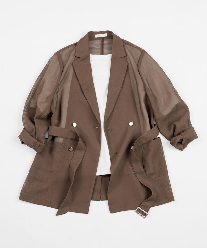 【全骨架優勝!系列】帶腰帶 透明網眼夾克