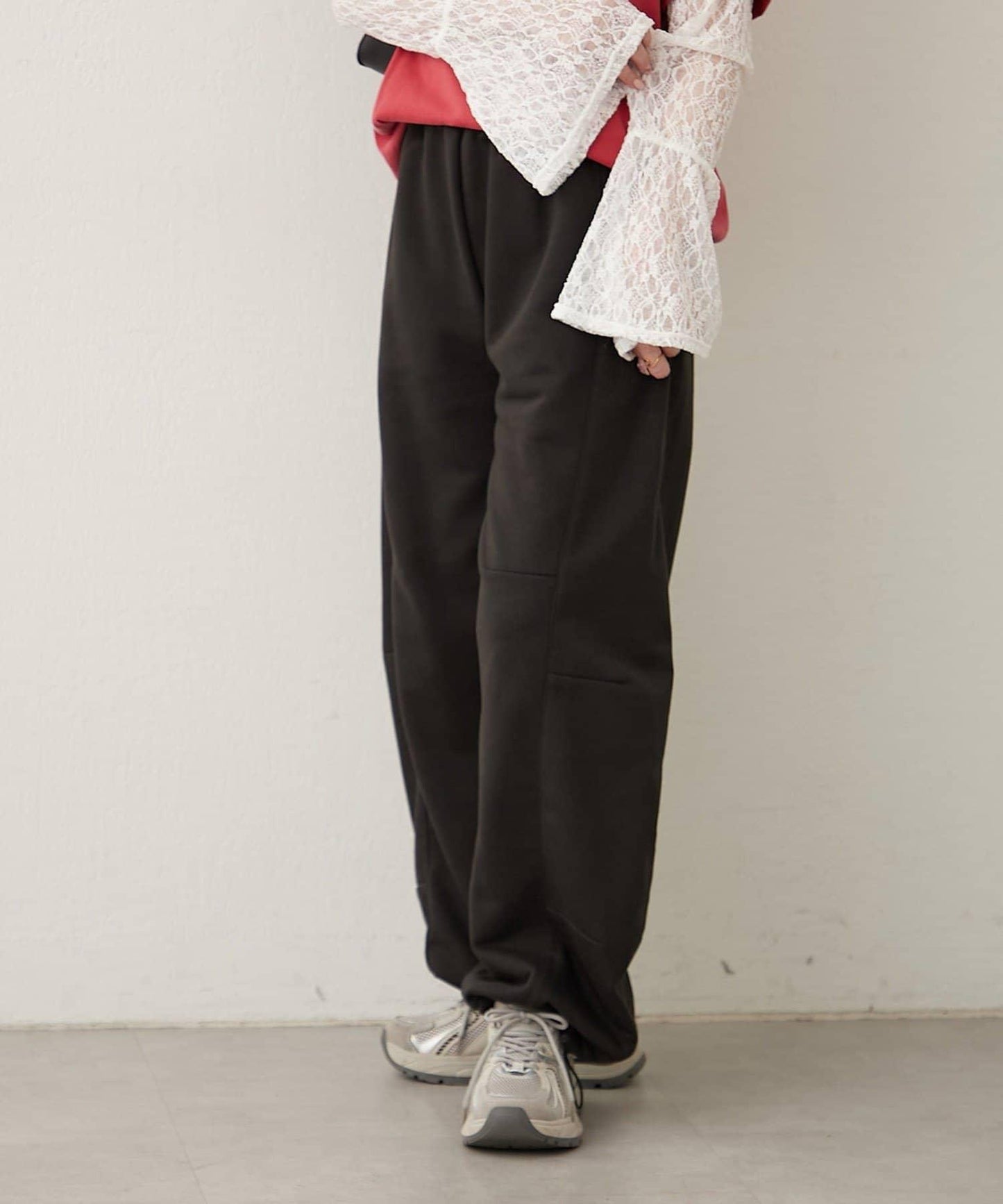 運動褲採用弧形剪裁,勾勒出優美的輪廓。