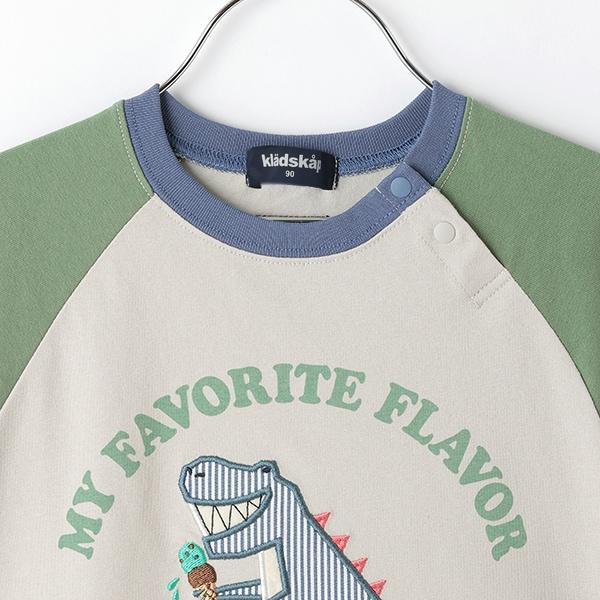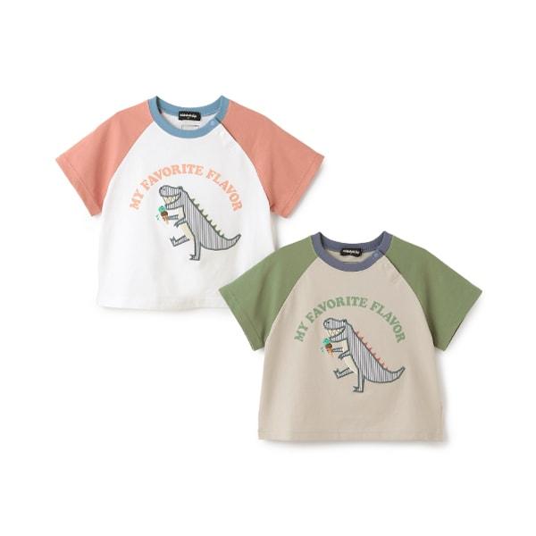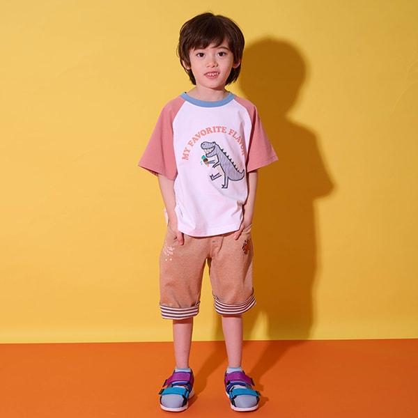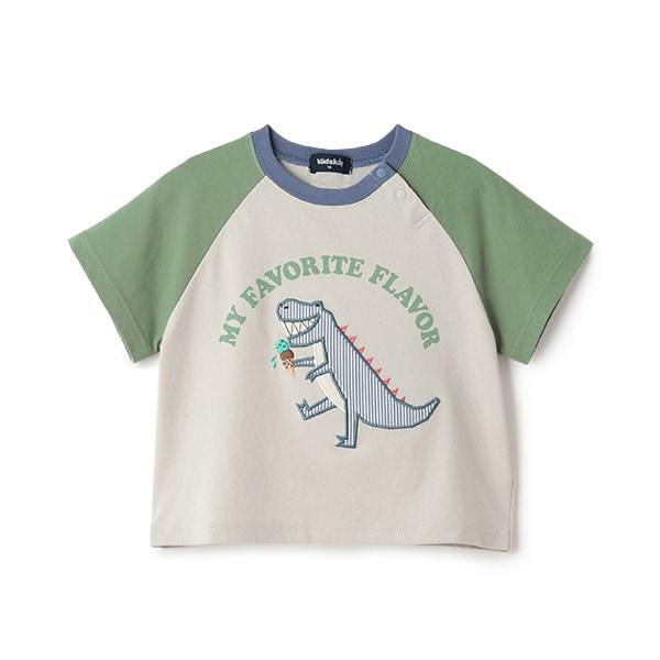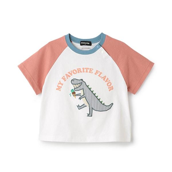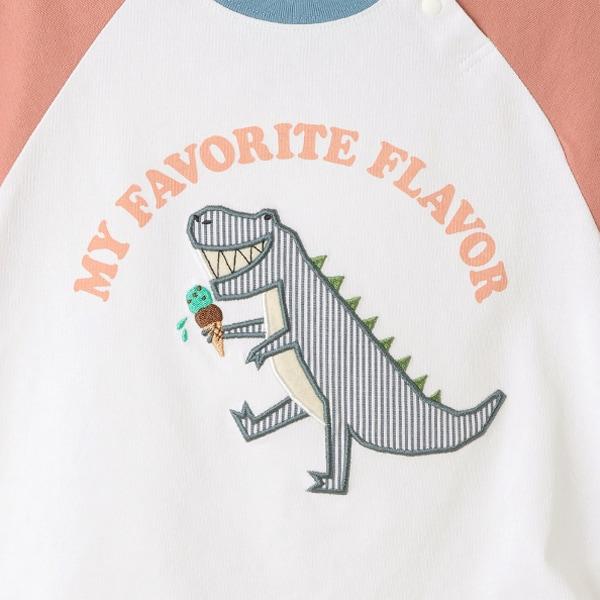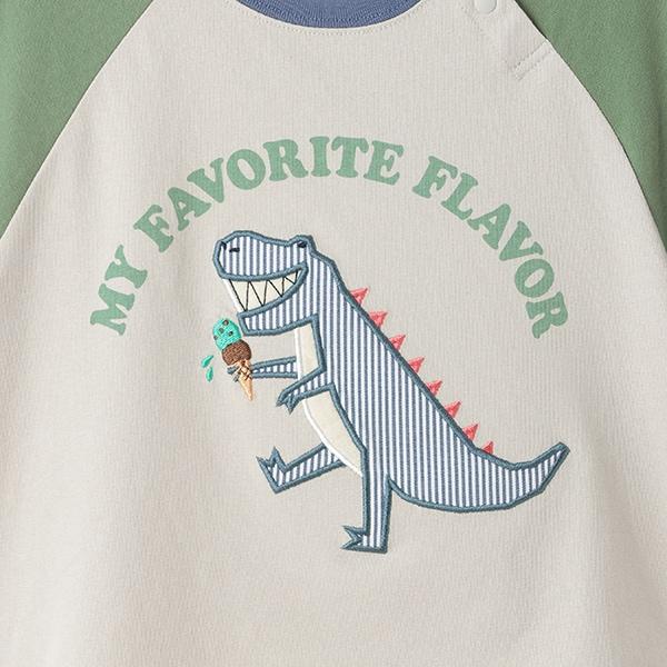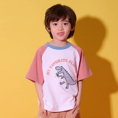 短袖襯衫上印有恐龍吃冰淇淋的可愛圖案。