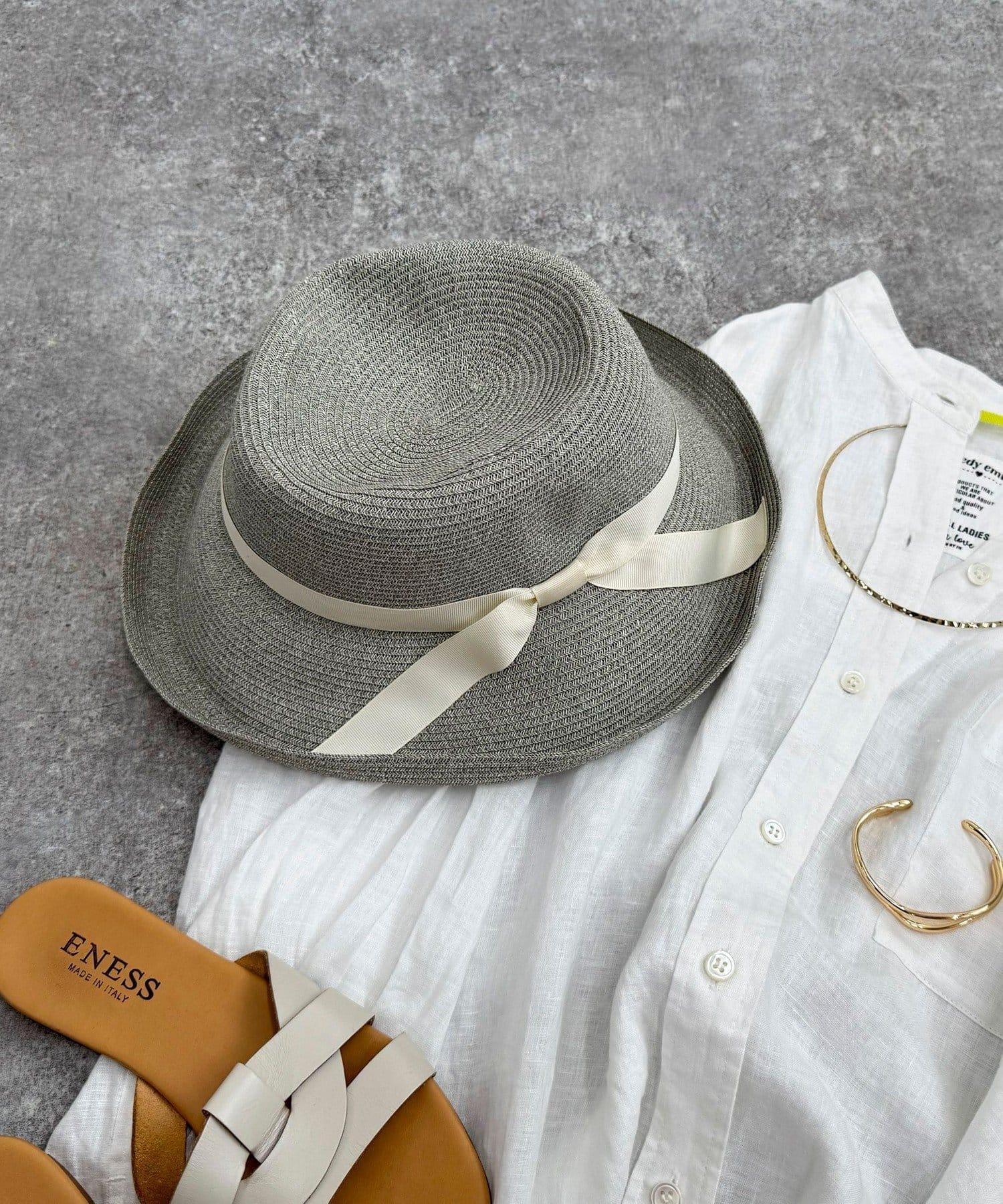 這是一款帶有女性化緞帶的帽子,成為協調的點綴。